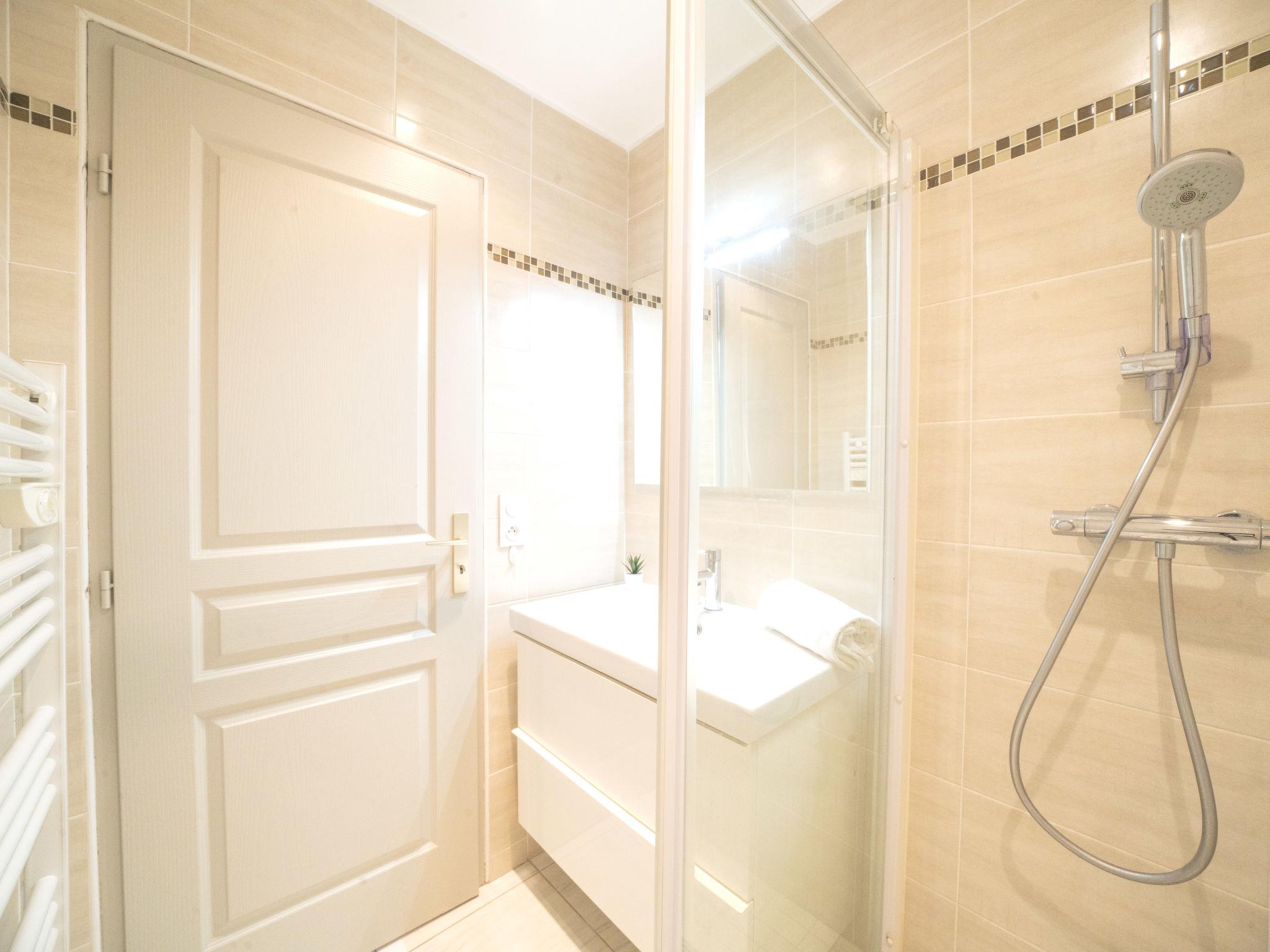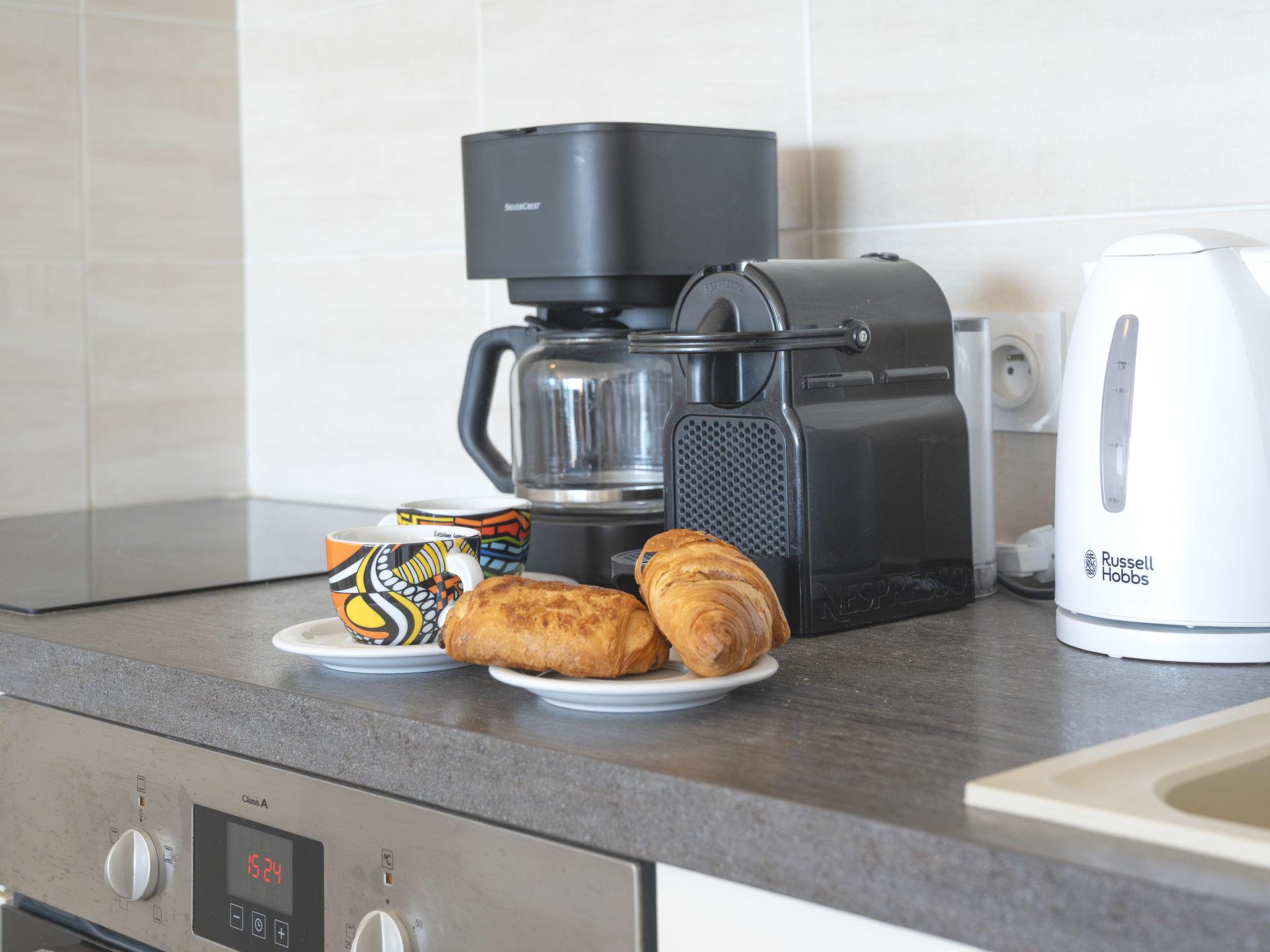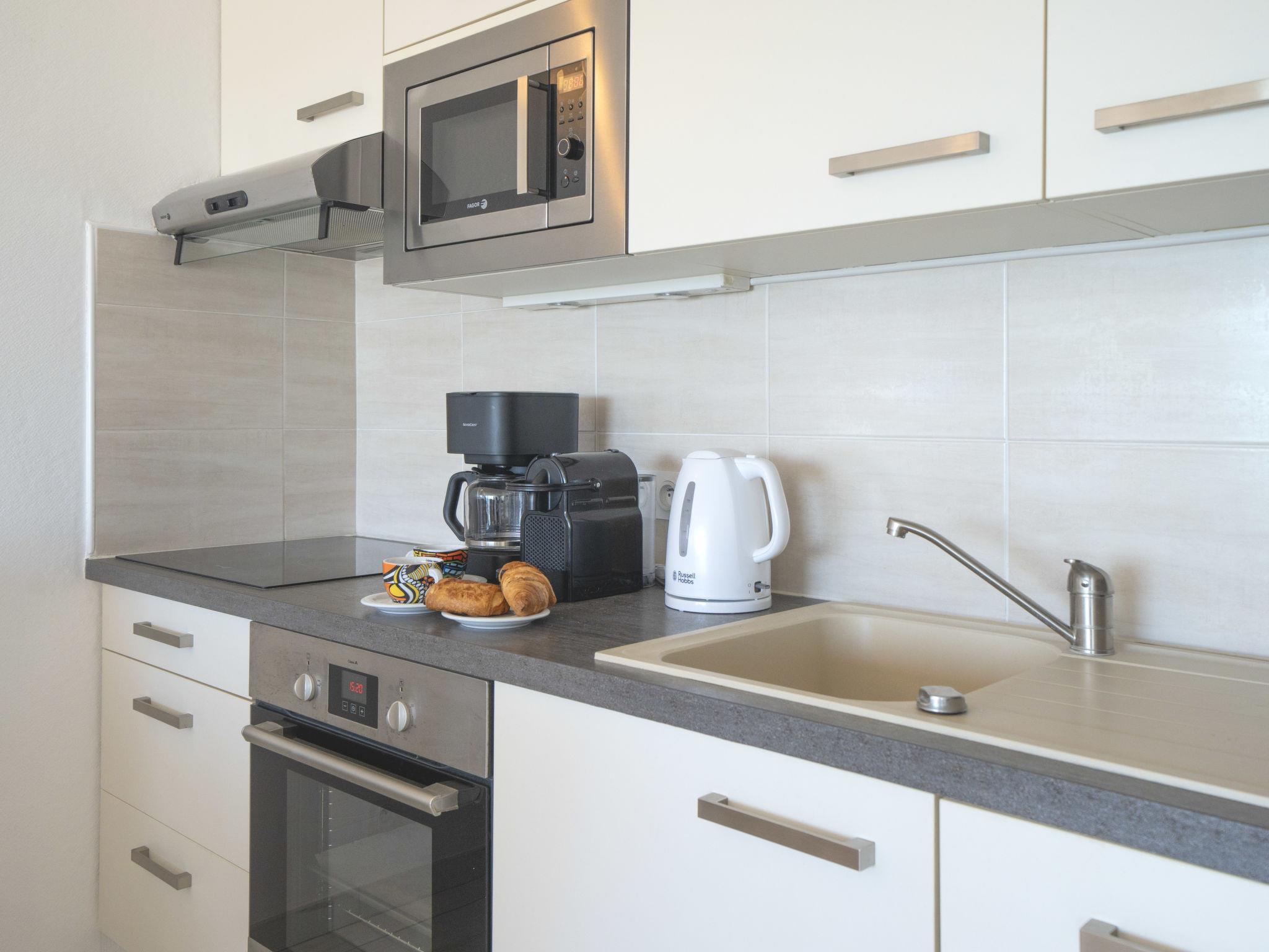 2-room apartment 44 m2 on 8th floor, south facing position. Very comfortable furnishings: living/dining room with 1 double sofabed (160 cm, length 200 cm), TV (flat screen), electric heating and air conditioning. 1 room with veranda with 1 french bed (160 cm, length 190 cm), air conditioning. Open kitchen (oven, dishwasher, 3 induction hot plates, toaster, kettle, microwave, freezer, electric coffee machine). Shower, sep. WC. Electric heating. Small terrace 4 m2, south facing position. Terrace furniture. Very beautiful view of the sea and the countryside. Facilities: washing machine, iron, hair dryer. Internet (WiFi, free). Parking (1 car). Please note: non-smokers only. Smoke alarm. Offer by a private individual according to Art. 155, IV of CGI. 30 04 503 039 356