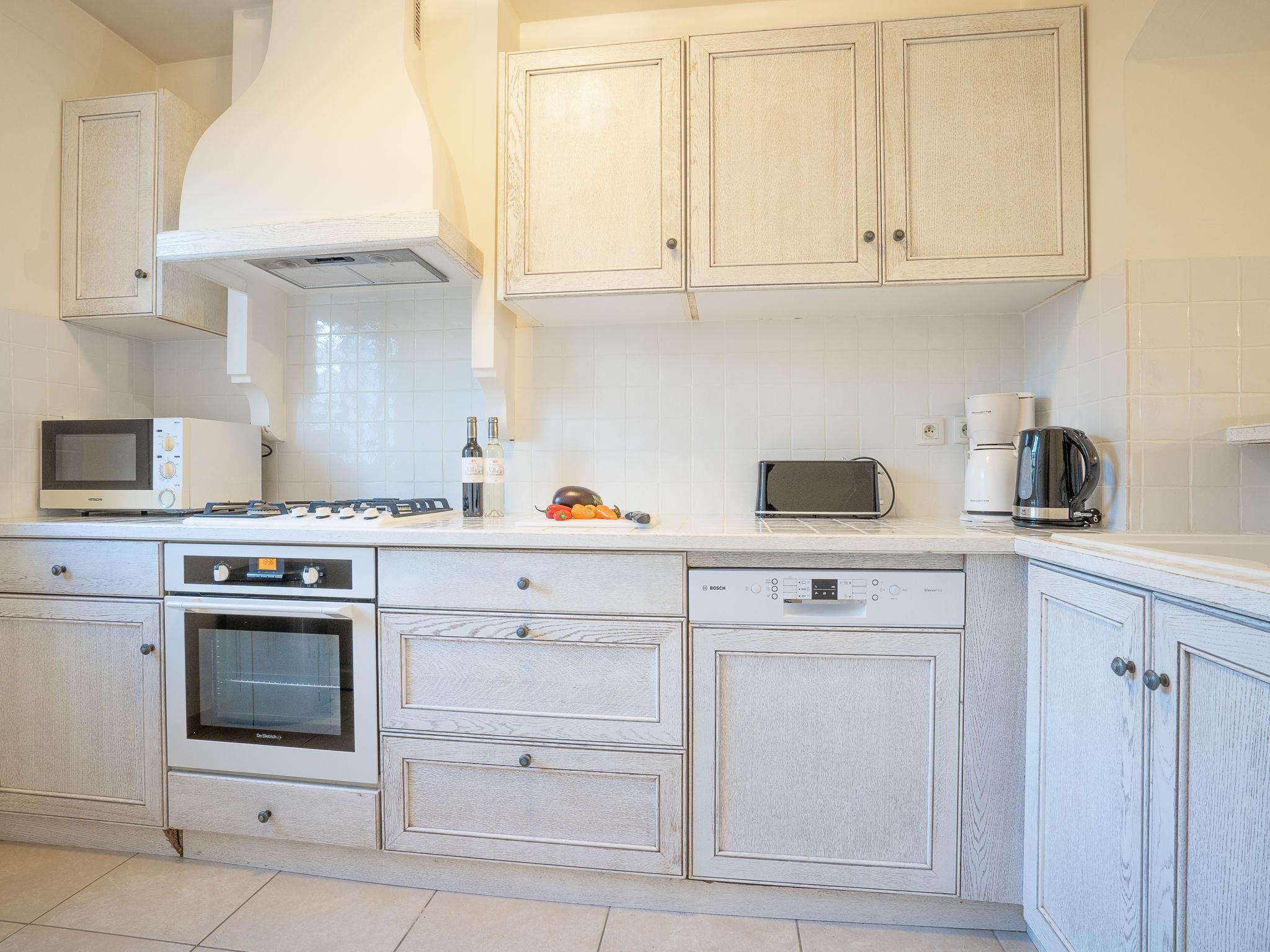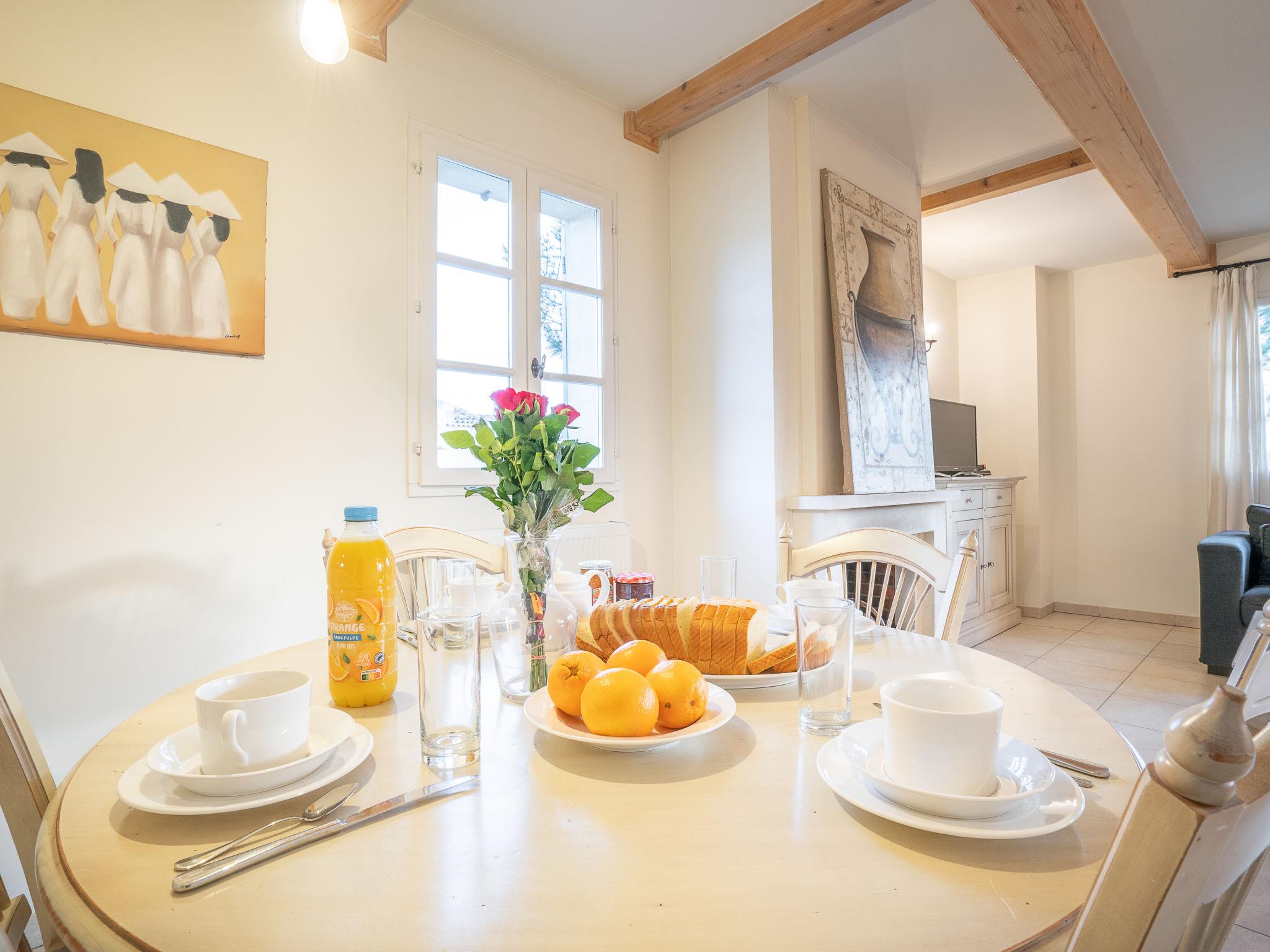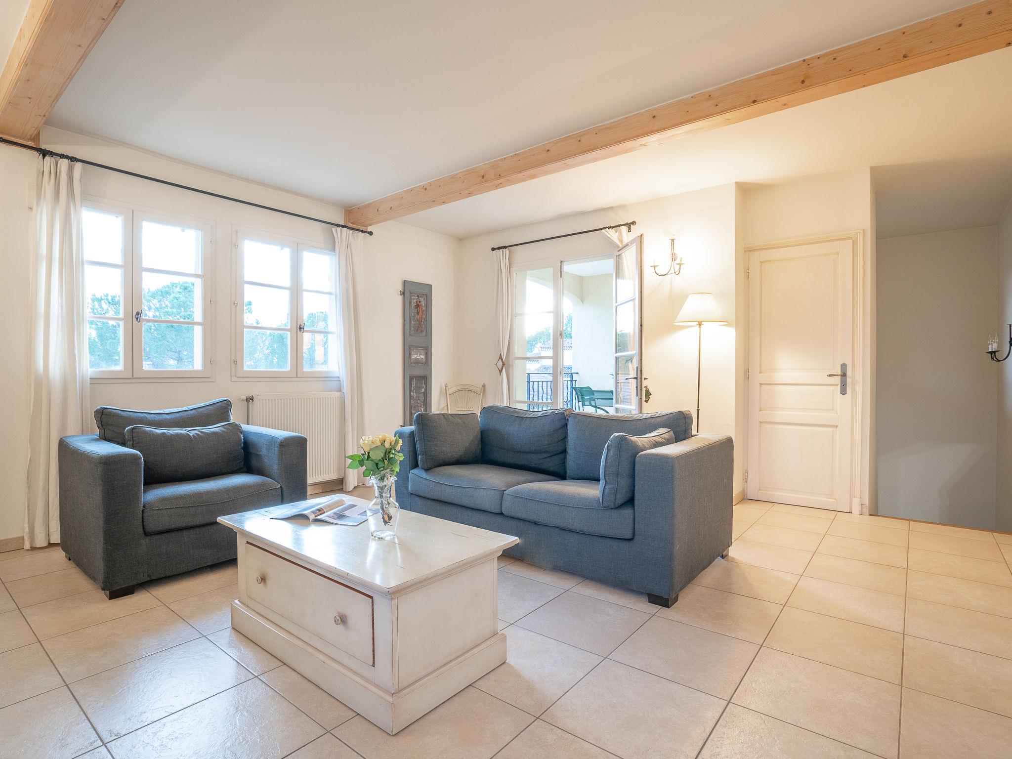 "Le Domaine de St. Endréol Golf & Spa", 3-room apartment 80 m2. Tasteful furnishings: living/dining room with open-hearth fireplace, dining table and satellite TV. 1 room with 1 french bed (160 cm, length 200 cm), bath/shower/WC and air conditioning. 1 room with 2 beds (80 cm, length 190 cm), shower/WC and air conditioning. Open kitchen (4 hot plates, oven, dishwasher, microwave, freezer, electric coffee machine). Sep. WC. Gas heating. Balcony or terrace. Terrace furniture. Facilities: washing machine, dryer, safe, children's high chair, baby cot. Internet (WiFi, free). Parking. Offer by a commercial proprietor according to Art. 155, IV, CGI