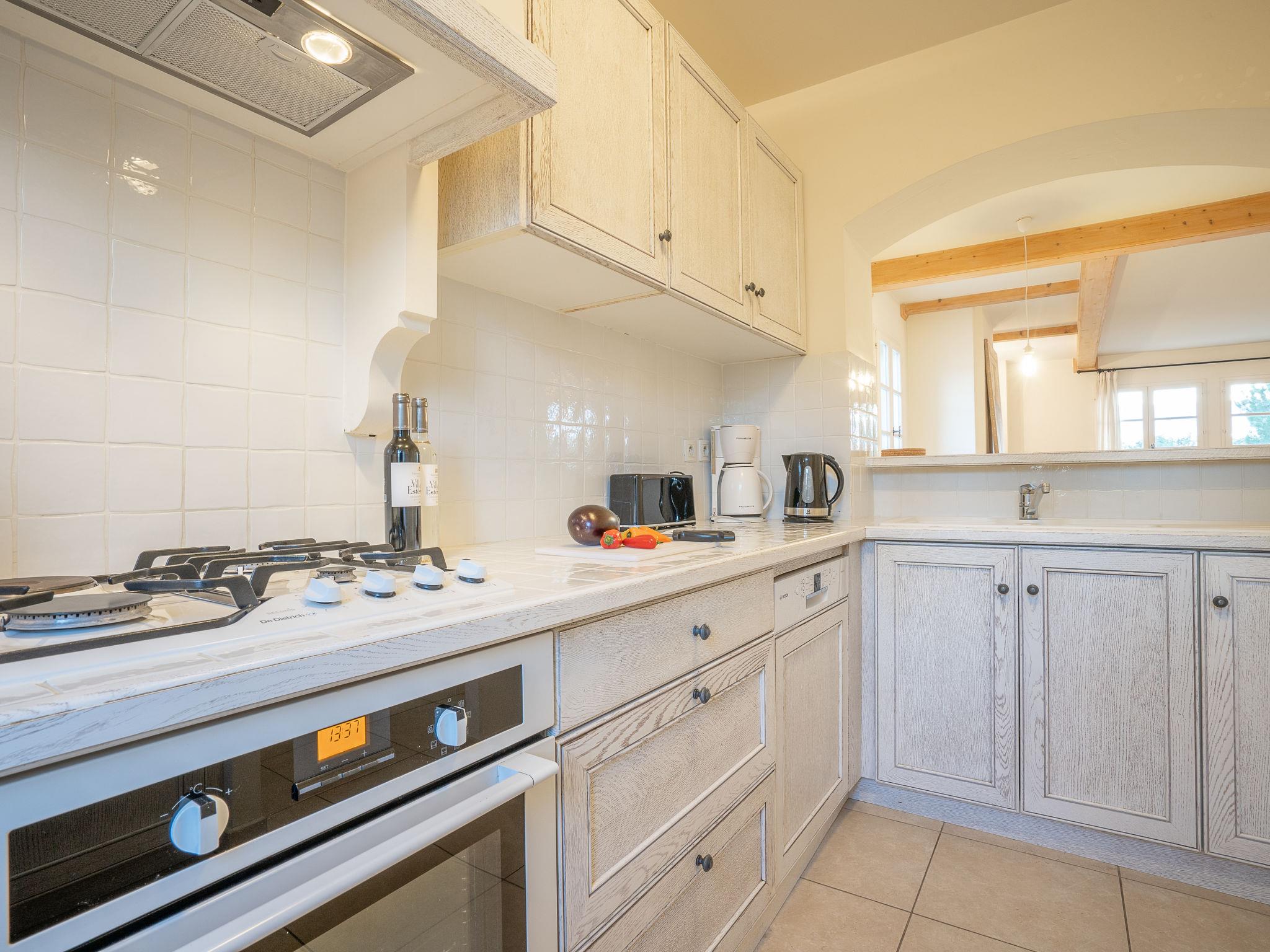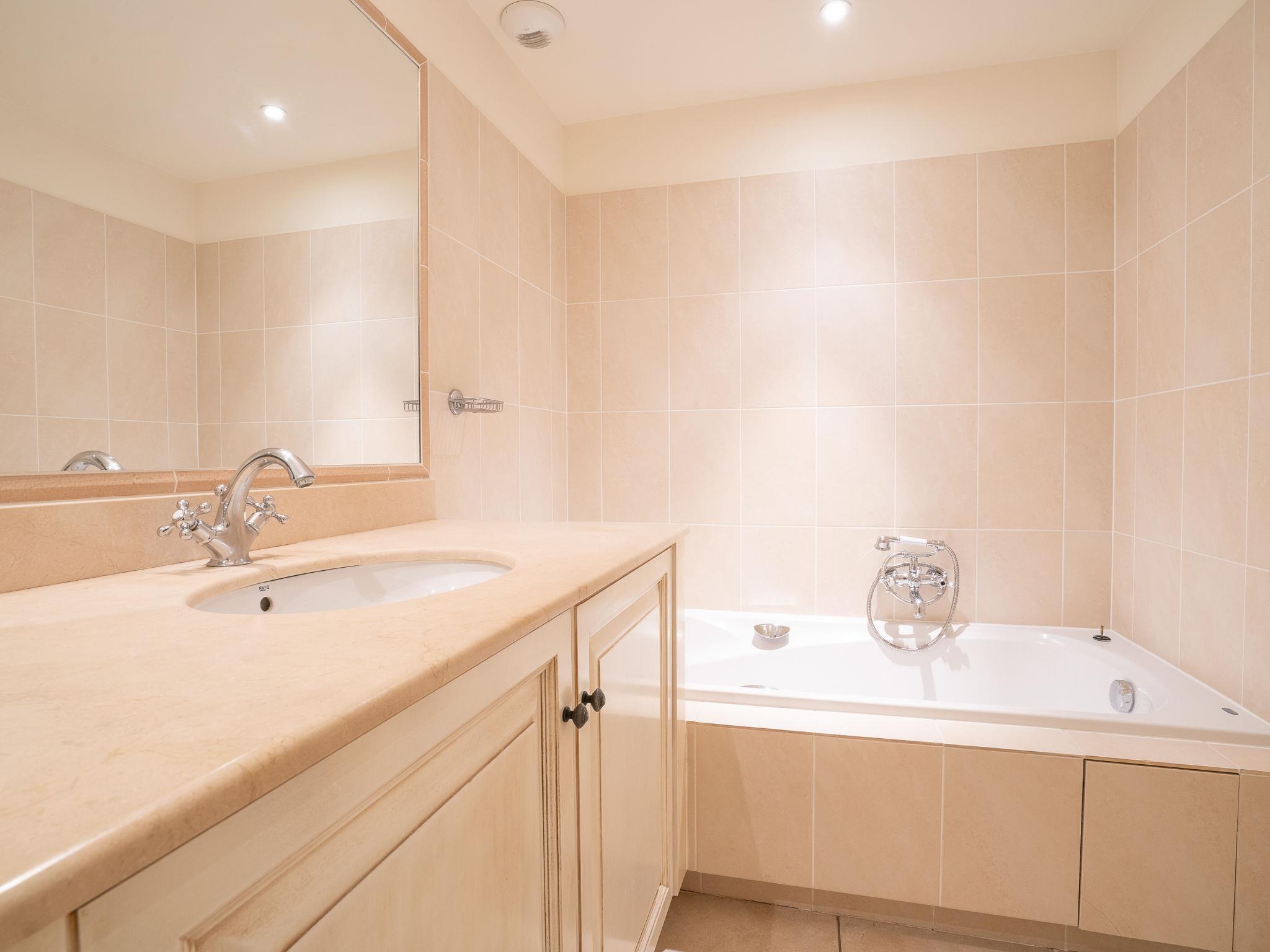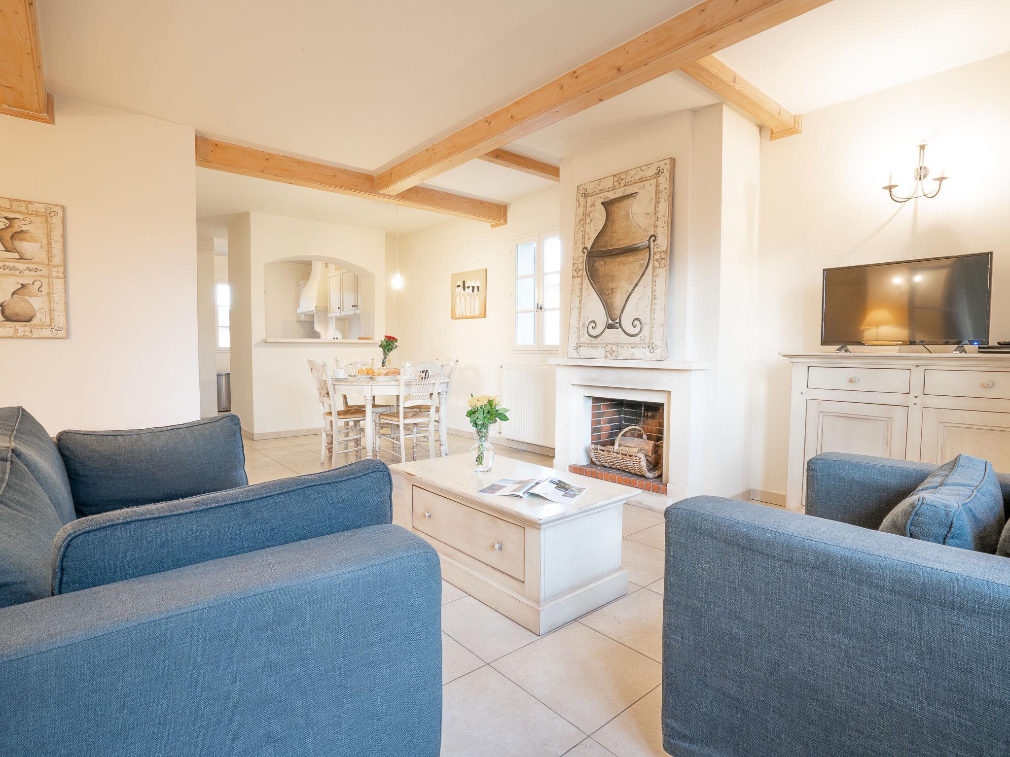 "Le Domaine de St. Endréol Golf & Spa", 3-room apartment 80 m2. Tasteful furnishings: living/dining room with open-hearth fireplace, dining table and satellite TV. 1 room with 1 french bed (160 cm, length 200 cm), bath/shower/WC and air conditioning. 1 room with 2 beds (80 cm, length 190 cm), shower/WC and air conditioning. Open kitchen (4 hot plates, oven, dishwasher, microwave, freezer, electric coffee machine). Sep. WC. Gas heating. Balcony or terrace. Terrace furniture. Facilities: washing machine, dryer, safe, children's high chair, baby cot. Internet (WiFi, free). Parking. Offer by a commercial proprietor according to Art. 155, IV, CGI