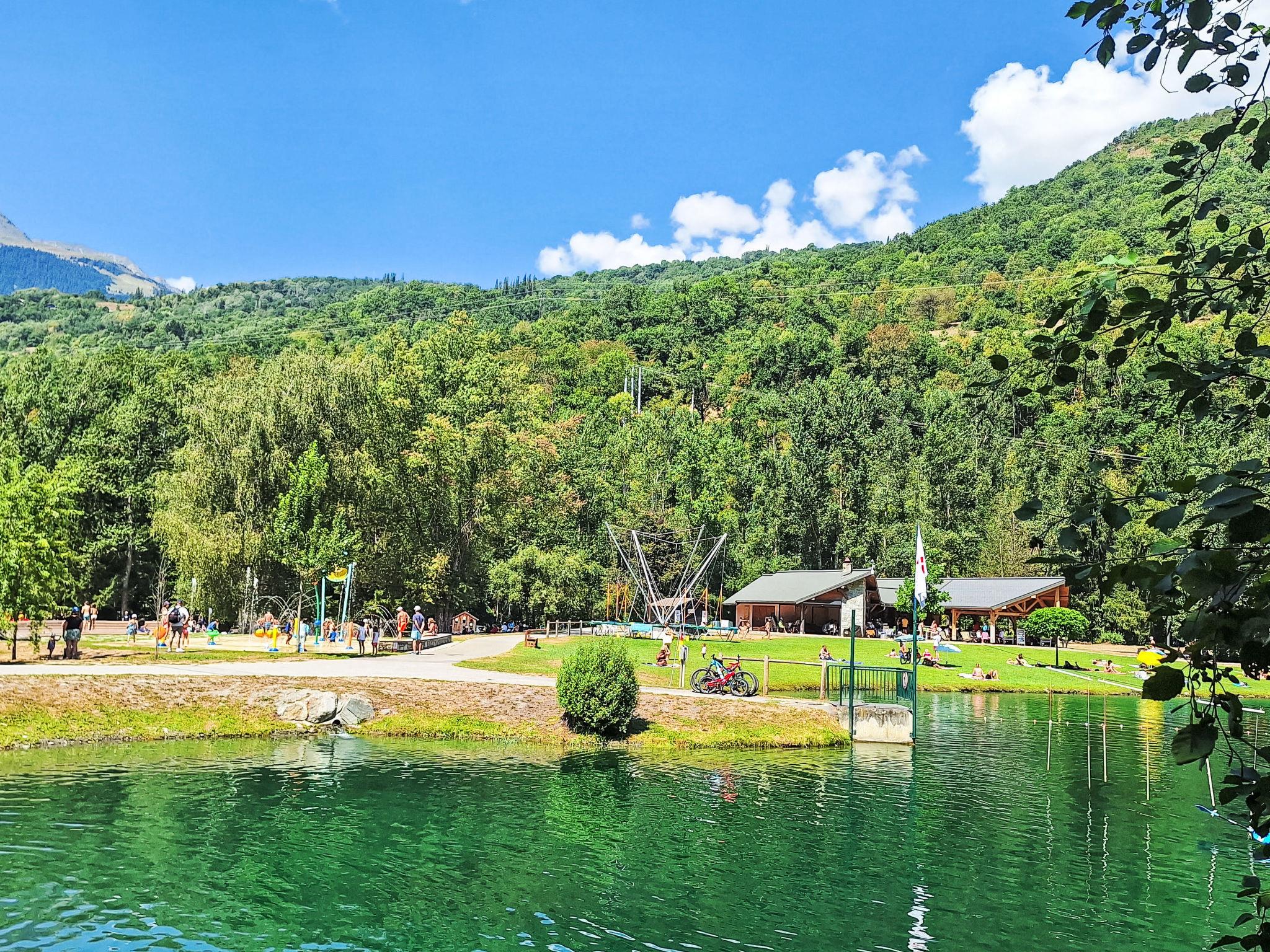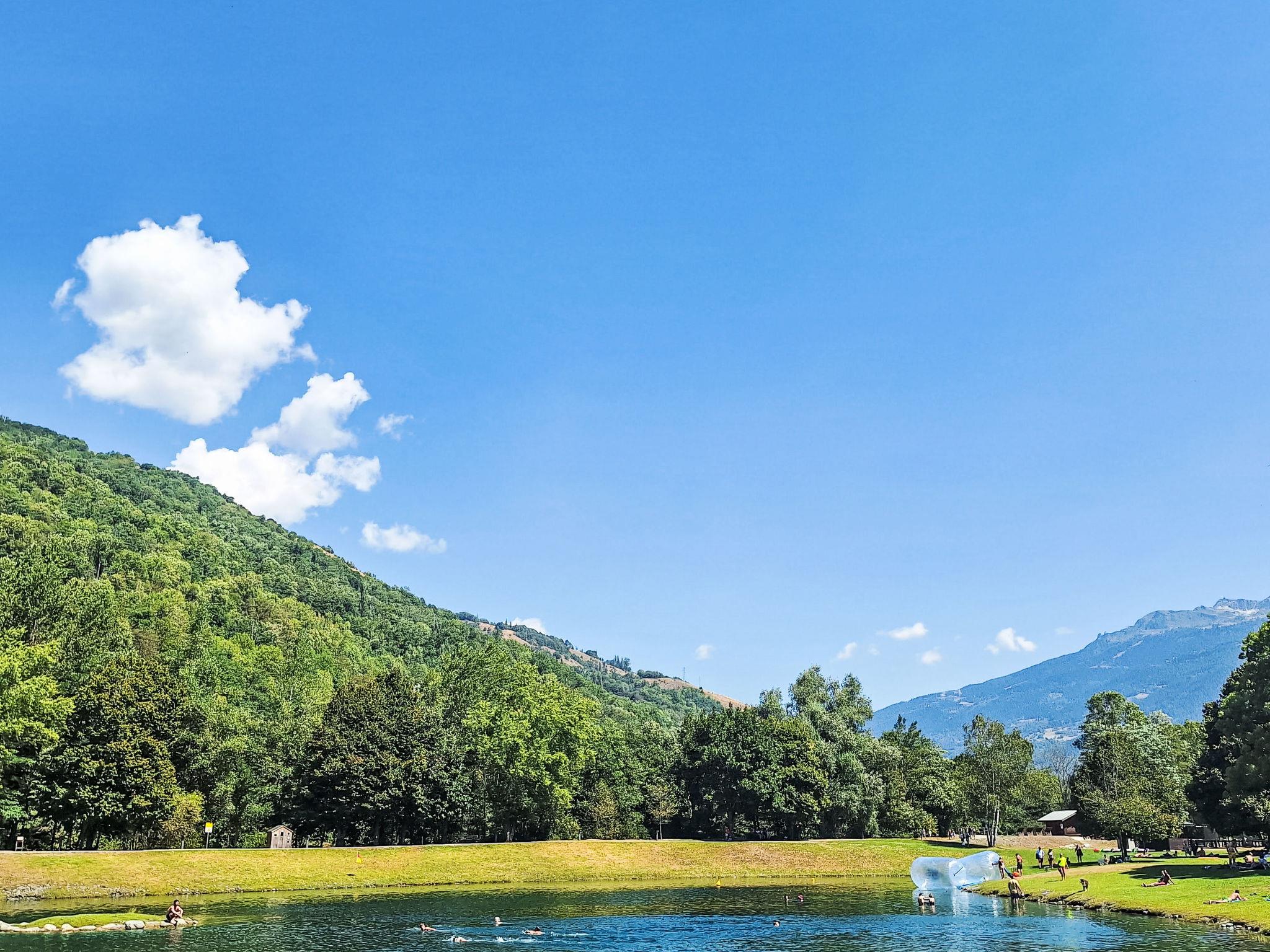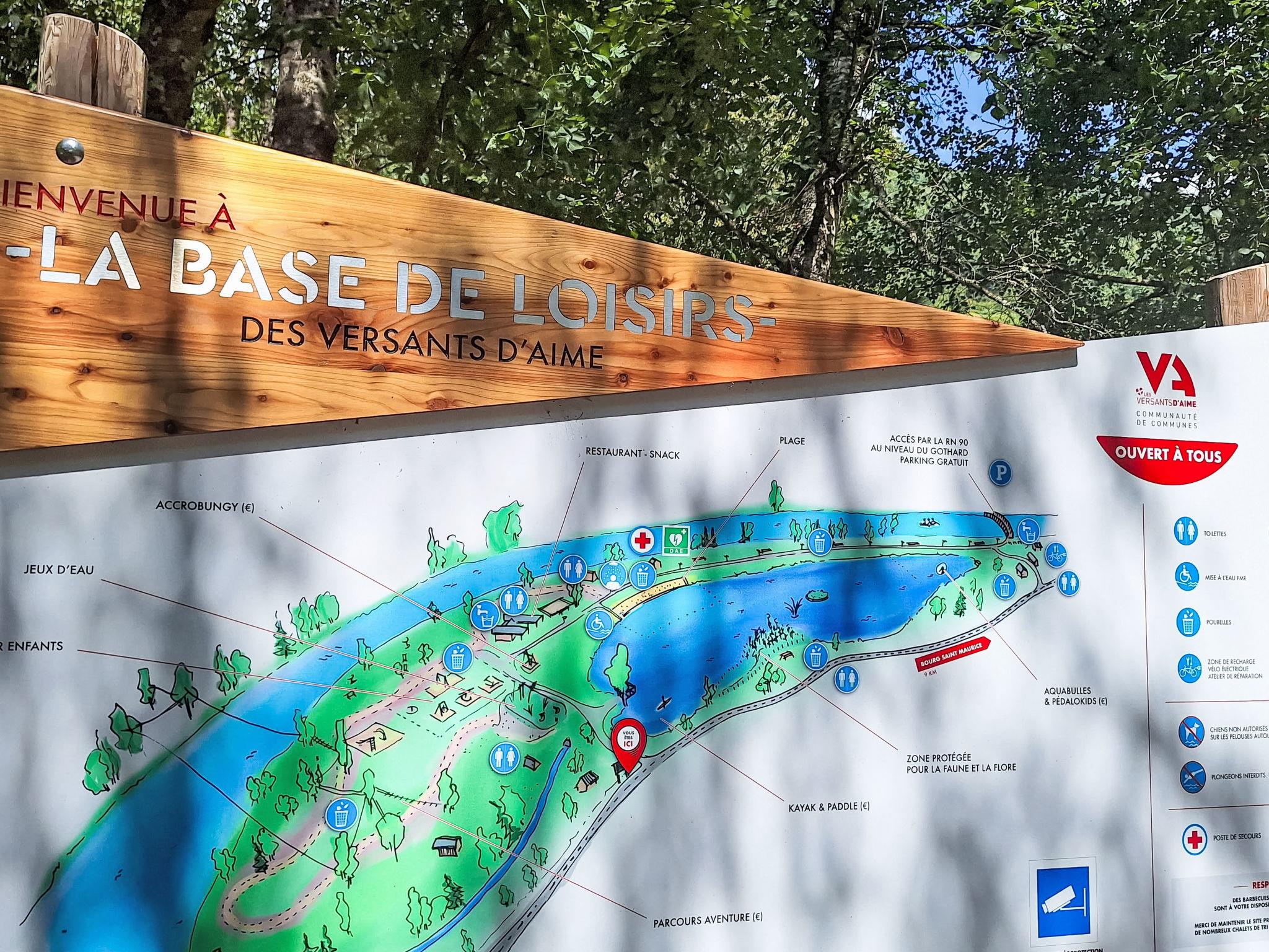Bellentre: Chalet "les Pommiers", 3 storeys. In the district of Le Gothard, Bellentre, in a quiet position, 250 m from the lake, 8 km from the skiing area, 250 m from the river, south-west facing position. Parking (for 2 cars) at the house. Supermarket 4 km, restaurant 1 km, bakery 1 km, bus stop "NAVETTE ONLY IN A SUMMER TIME" 350 m, railway station "AIME" 4 km. Nearby attractions: Funiculaire Bourg Saint Maurice/Les Arcs 9.1 km. Well-known ski regions can easily be reached: Paradiski (LES ARCS - LA PLAGNE) 8 km, Tignes & Val d'Isère 40 km, La Rosière 28 km. Well-known lakes can easily be reached: Plan d'eau de Macot 250 m.