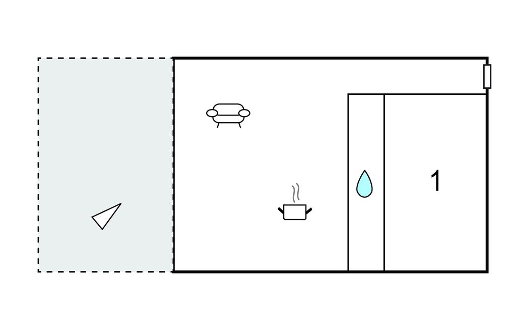 Stue 14m2 - 2 Soveplasser. (Sovesofa, madrass eller lign.).
