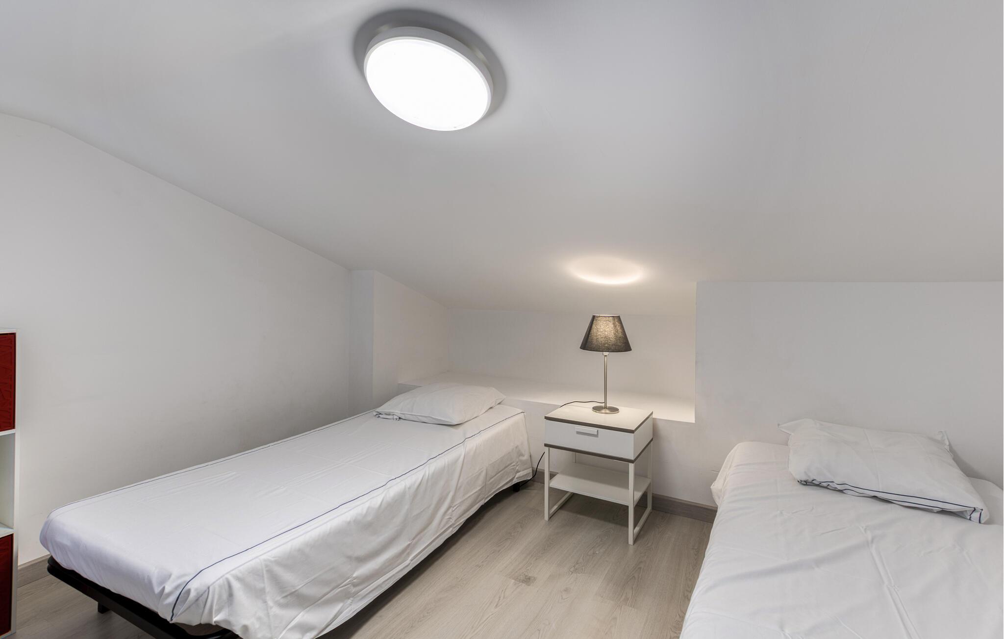 Denne lyse og praktisk innredede ferieleiligheten har en ideell beliggenhet for et spontant valg mellom stranden og byen. Lag deilige retter på det åpne kjøkkenet med ferske ingredienser fra markedet, og la den behagelige brisen strømme gjennom de lyse rommene under måltidene. Planlegg aktivitetene dine i en avslappet atmosfære, og slapp av etter en begivenhetsrik dag sammen med dine nærmeste.