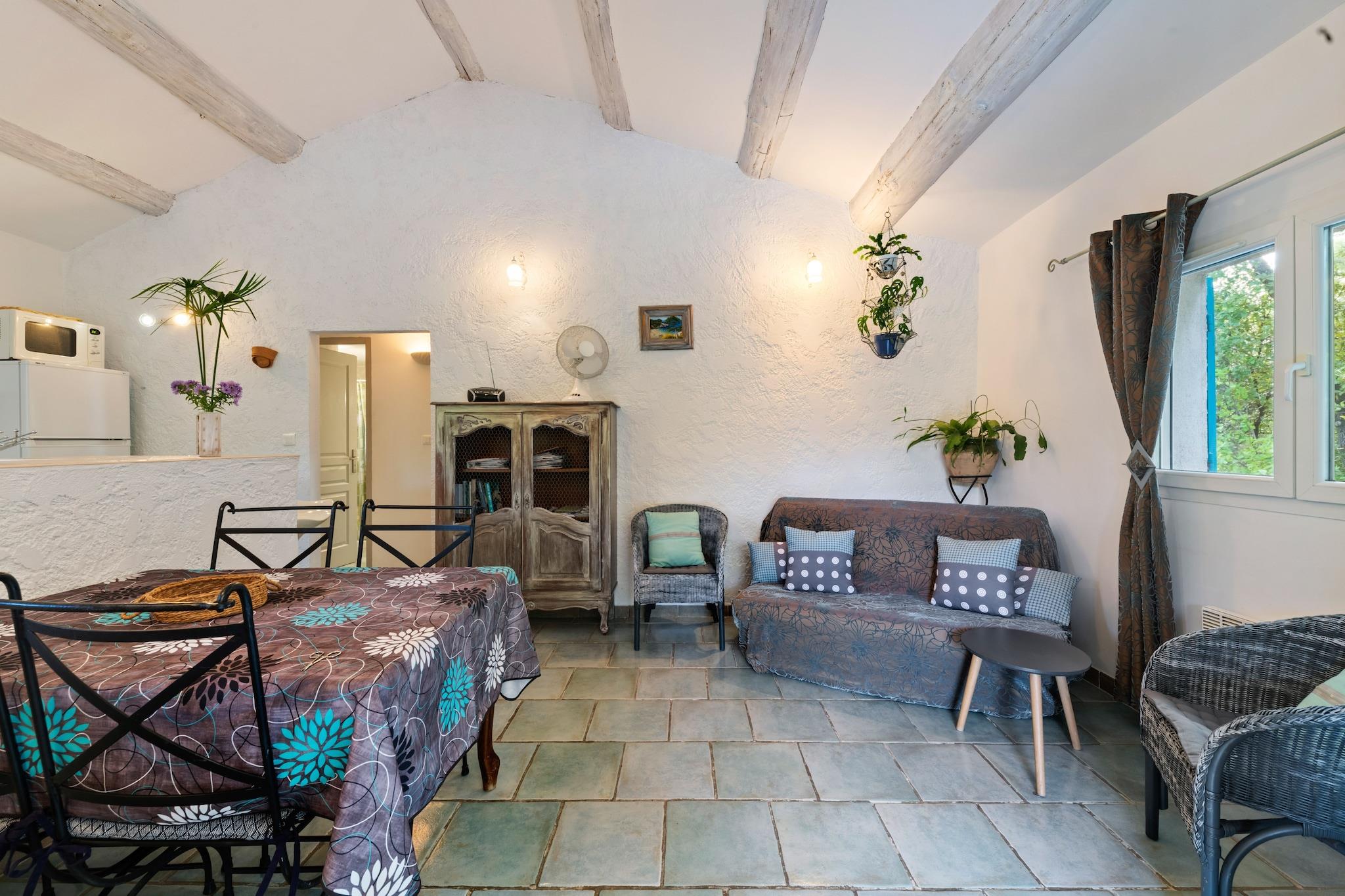 Gjemt i det fredelige landskapet i Provence, tilbyr dette sjarmerende 1-roms feriehuset en rolig tilfluktssted for to gjester. Med et privat svømmebasseng, en skyggefull terrasse og hage er det perfekt for å slappe av med en bok eller nyte en grillfest under solen. Det barnevennlige oppsettet inkluderer lekeapparater og et bordtennisbord, noe som gjør det ideelt for små familier også. Bare 3 km unna ligger det pulserende sentrum av Lambesc, hvor du finner supermarkeder, restauranter, kafeer og til og med offentlige bassenger. Naturelskere kan utforske nærliggende skoger (500 m), nyte aktiviteter ved innsjøen (15 km), eller ta naturskjønne strandturer langs Middelhavskysten (30 km). Hjemmets beliggenhet tilbyr en herlig balanse mellom ro og tilgjengelighet. For enkelhets skyld ligger Marseille lufthavn og nærmeste togstasjon begge 35 km unna. Enten du bader i bassenget eller utforsker Provences rike kulturarv, sørger dette koselige tilfluktsstedet for en minneverdig og avslappende ferie.