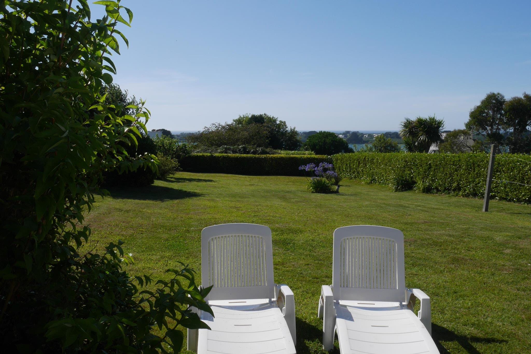 Utsikten over havet er allestedsnærværende fra nesten alle vinduer. Utsikten sveiper over Ile Vierge-fyret, øyene Wrach og Stagadon samt Pointe de Sainte Marguerite til Fort Cezon. Du går bare nedover den lille gaten, og du kommer til den første sandstranden ved Baie des Anges ved Aber Wrach-elvemunningen. Omgitt av mange små øyer, er et stadig skiftende panorama imponerende på grunn av den høye forskjellen i tidevann. Attraktiv innredning, en koselig atmosfære takket være mye tre og mange av utleiers selvlagde dekorative elementer, den pene kjøkkenbaren og den konstante utsikten over havet understreker husets koselige karakter. Praktisk selv i lavsesongen for et hyggelig hjemmekontor. I den romslige hagen, hvor palmer vokser på grunn av det bretonske klimaet, kan barna leke uforstyrret. Om kvelden kan du spasere gjennom den populære nærliggende seilhavnen Aber Wrach; mange spesialitetsrestauranter, puber og utstillinger lokker deg med sine tilbud fra regionen. Stedet ligger mellom Aber Benoit og Aber Wrach på en halvøy. 15 km kyst med mange sandstrender venter på deg her, den mest kjente er stranden Sainte Marguerite (2,5 km) med sin fantastiske fine sandstrand, det tilhørende sanddynelandskapet har blitt erklært et naturreservat. Det naturlige og ville landskapet i kystområdet, beskyttet av en rekke skjær og øyer, er ideelt for fotturer eller surfing.