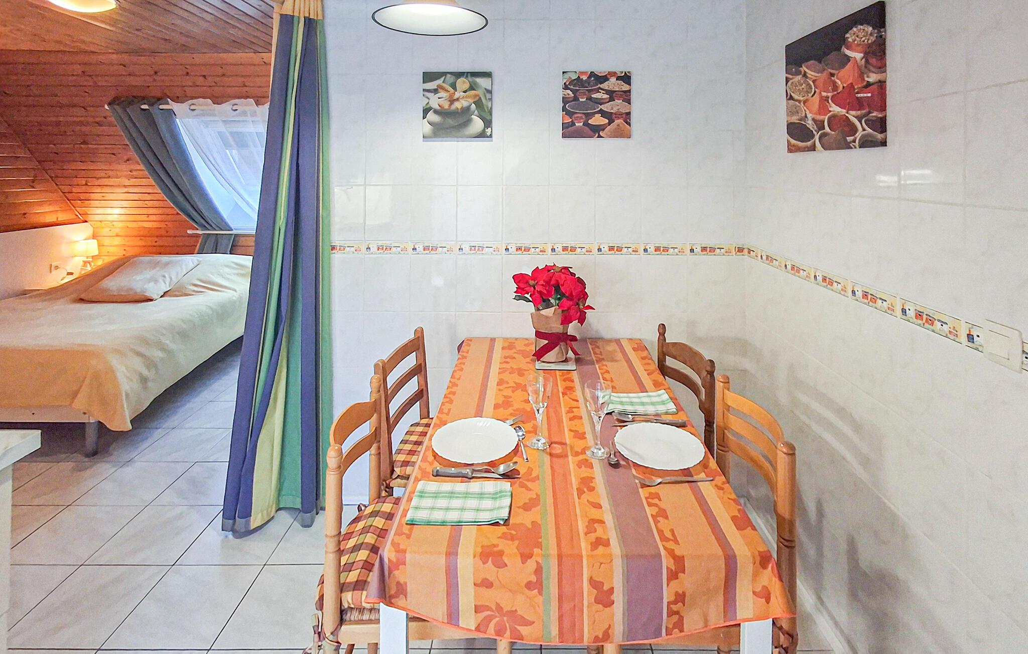Bare en kort spasertur fra den hvite sandstranden i Poulhars ligger denne praktisk innredede ettromsleiligheten, som er det ideelle gjemmestedet for å bytte ut hverdagen med en ferie ved sjøen i intimt samvær. Tilbered enkle måltider med ferske råvarer fra markedet, planlegg aktivitetene dine og avrund en lang dag med et brettspill eller en god bok.