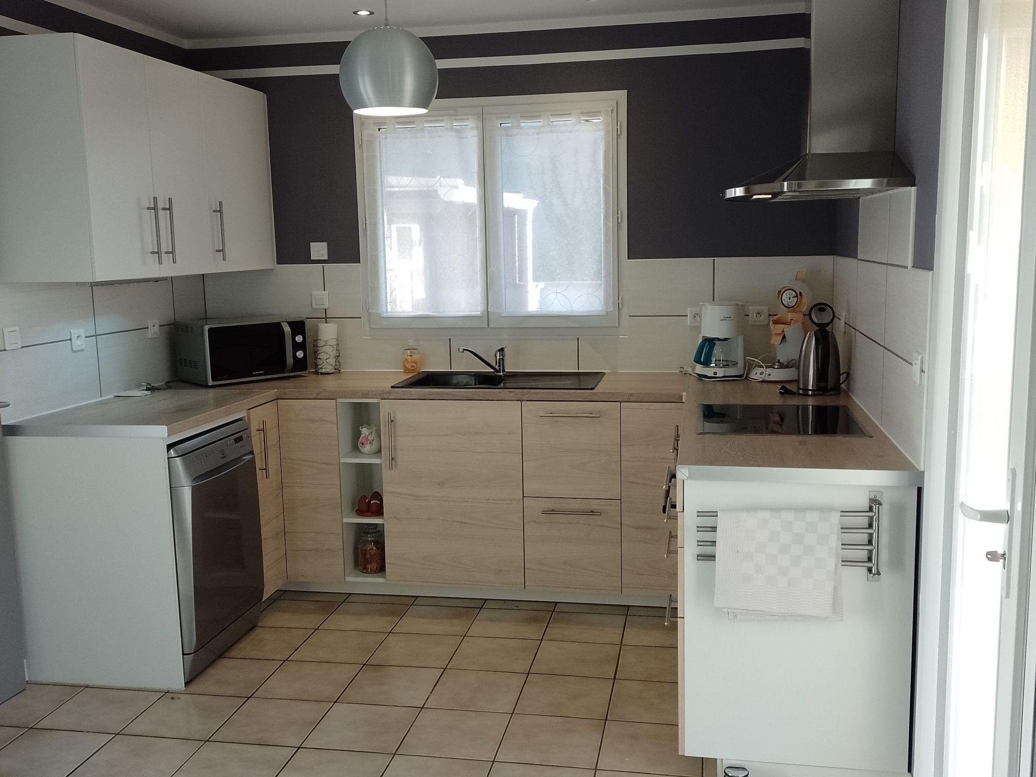 The house comprises: Entrance hall; fully installed open-plan kitchen; dining room; lounge with TV and DVD player, three bedrooms, one of which has a dressing room and private bathroom with shower and fixed washbasin; storage room with washing machine, additional bathroom with shower and fixed washbasin; separate toilet; and a sun-drenched terrace with table and chairs.