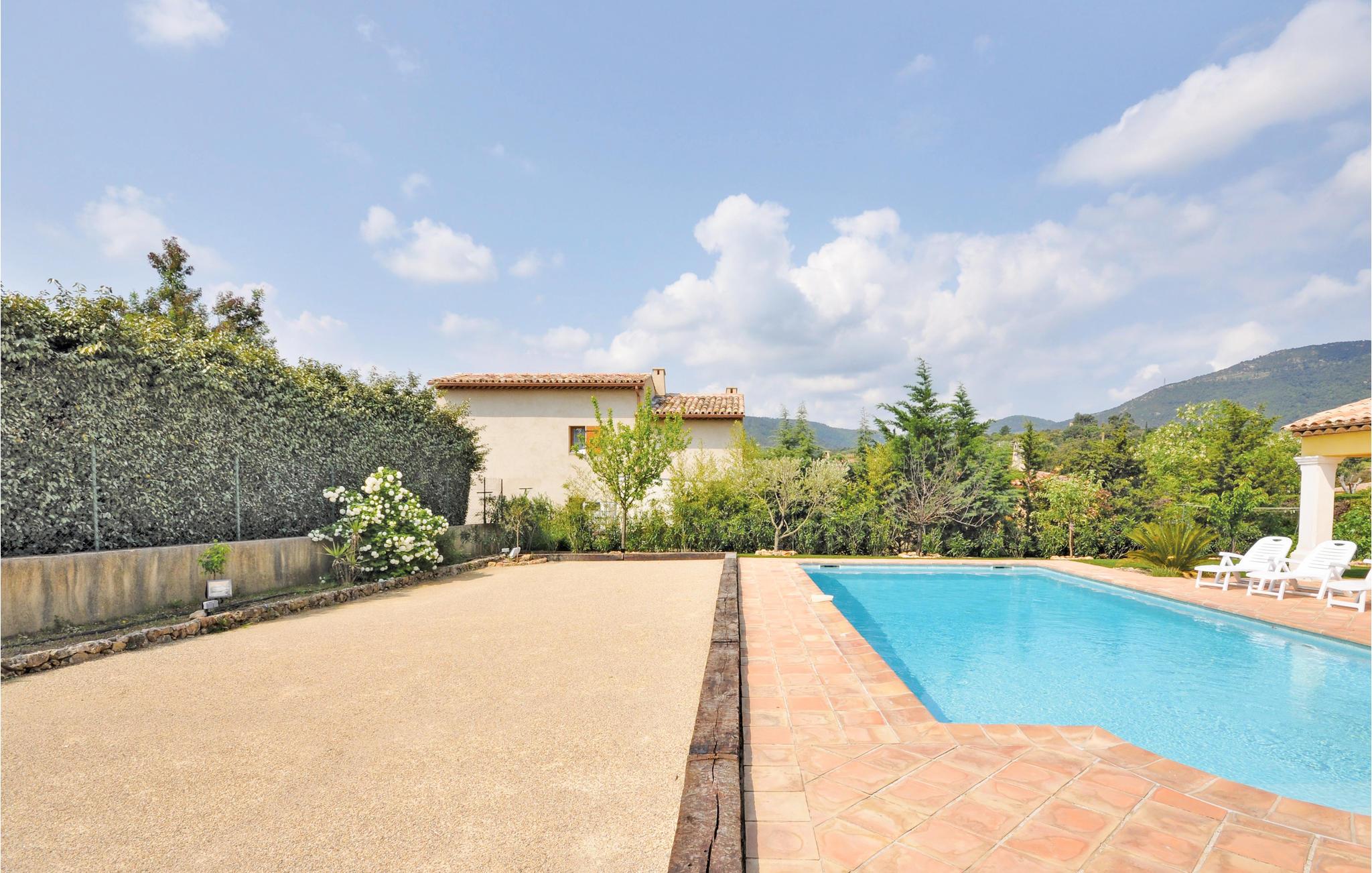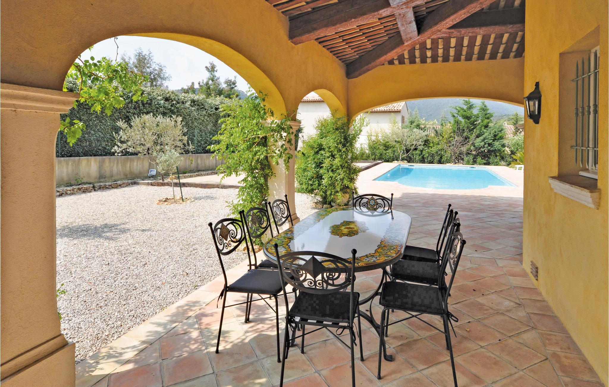 Denne moderne ferievillaen i et rolig, veldig velholdt område er et fantastisk feriehus i innlandet i Sør-Frankrike. Det er perfekt for soling: I tillegg til en stor hage kan gjester som trenger avslapning velge mellom tre terrasser. Det store bassenget i hagen med solsenger gir avkjøling på varme sommerdager. Du kan tilberede måltidene dine i utekjøkkenet. Den romslige stuen inviterer deg også til å slappe av. Den vakre og elegante badebyen Sainte Maxime, usedvanlig vakkert beliggende ved St. Tropez-bukten, ligger bare noen få minutters kjøretur unna.