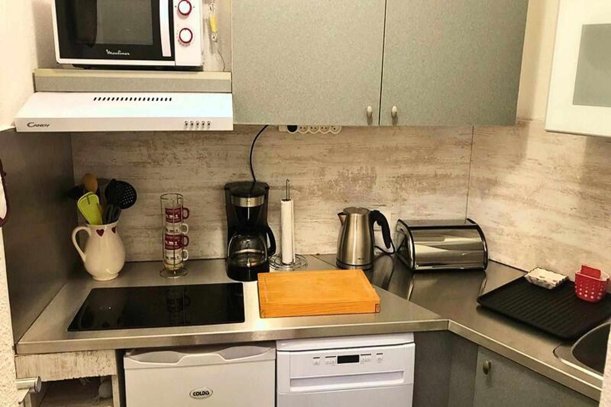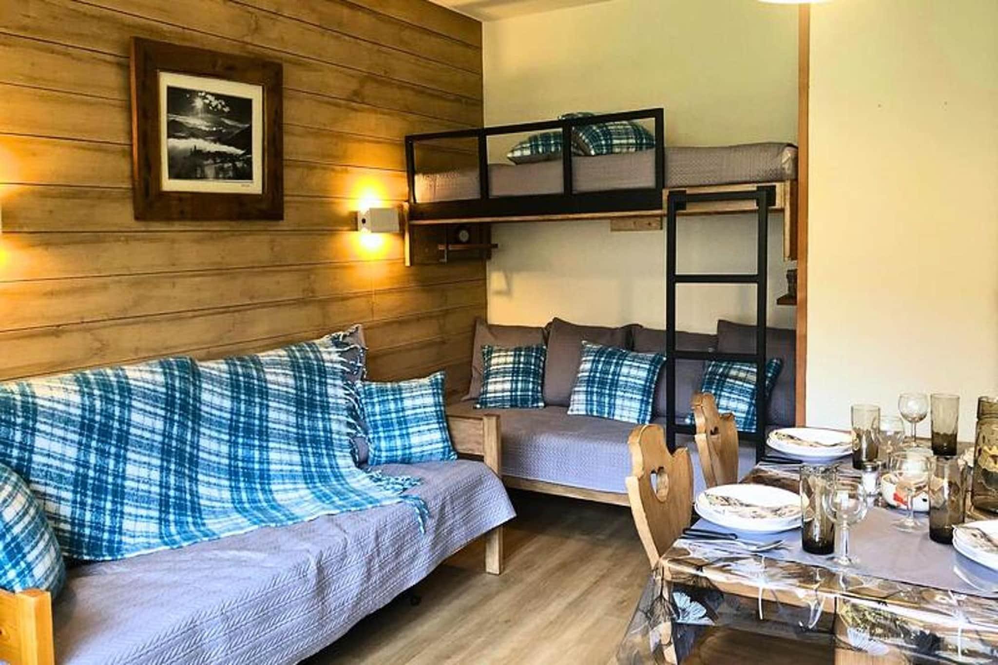This 2-room apartment comfortably accommodates 5 people, with a living room featuring 3 single beds and a separate bedroom with 2 single beds. All beds are equipped with duvets for a cozy stay. The apartment is non-smoking and pet-friendly, with conditions and an additional fee. A TV is provided for entertainment, and heating ensures a warm and pleasant environment throughout your stay. Situated in the hamlet of Fontaine, this apartment offers easy access to local attractions, with ESF lessons just 10 minutes away and the Piou Piou club 8 minutes away. Shops are also within 8 minutes, providing convenient access to essentials. The apartment is located at the foot of the slopes, making it an ideal choice for skiers and snowboarders who want quick access to the slopes and mountain activities. The apartment features a well-equipped kitchenette, complete with a Philips 660 dishwasher, Scholtès fridge, oven, and 4 electric hotplates for cooking meals. Additional appliances include a coffee maker, kettle, toaster, and everything you need for a comfortable stay. A separate bathroom and toilet offer privacy and convenience, while the balcony provides a relaxing space to enjoy the surrounding mountain views.
