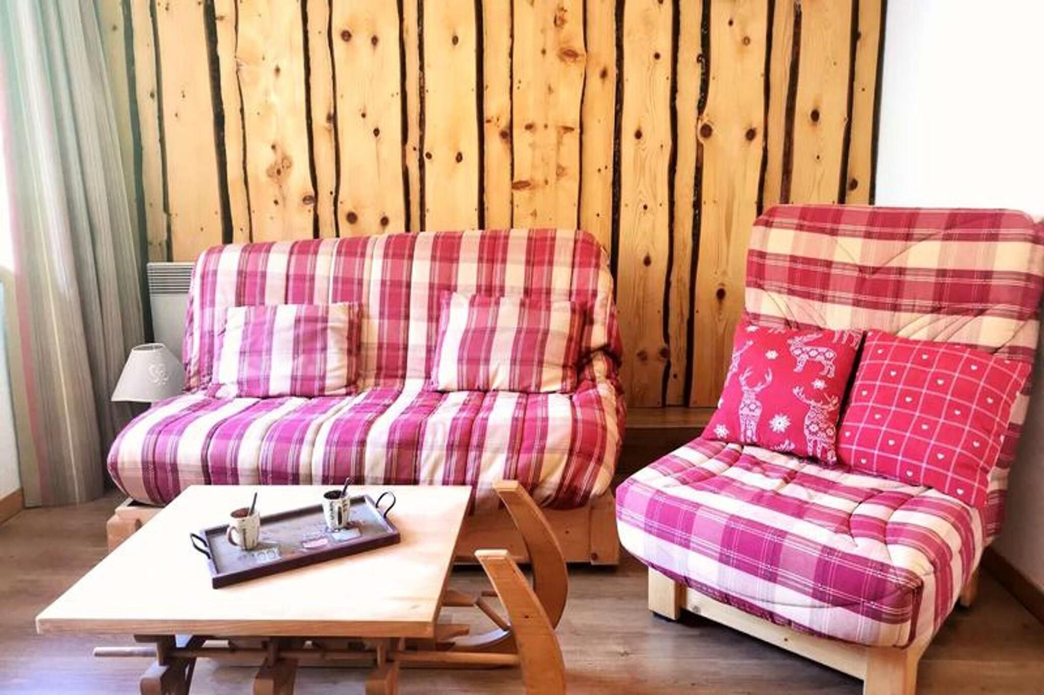 This charming studio, located in the hamlet of Planchamp, is designed to accommodate up to 4 guests. It features a divisible living room with two convertible sofas, each equipped with duvets for a comfortable night's sleep. The studio also includes a bathroom, a separate toilet, and a balcony for enjoying the fresh mountain air. The property is a non-smoking apartment, and pets are not allowed. Situated just 5 minutes from shops, ESF ski lessons, and the Piou Piou club, this studio offers a perfect location for both skiing and family activities. It is also at the foot of the slopes, ensuring easy access to outdoor adventures. The nearby area is vibrant with local cafes and markets, providing a great selection of dining and shopping options. The kitchenette is fully equipped for your convenience, featuring an Ariston dishwasher, a Jenken fridge, a Rowenta mini oven, and two electric hotplates. Guests can enjoy making meals with the kettle, electric coffee maker, Nespresso coffee maker, and blender. Additionally, the studio comes with a fondue and raclette appliance, perfect for cozy mountain dining. Heating is provided to ensure comfort during your stay.