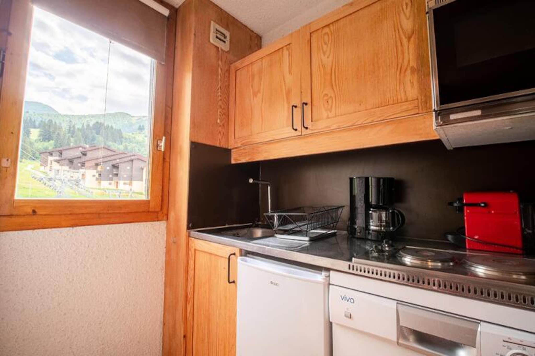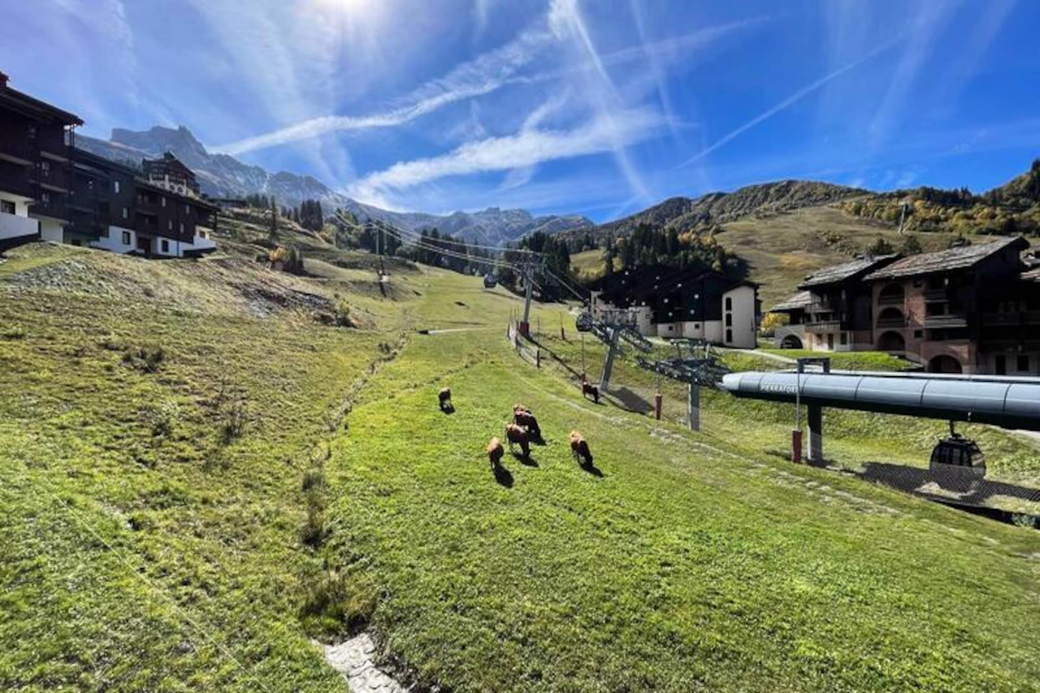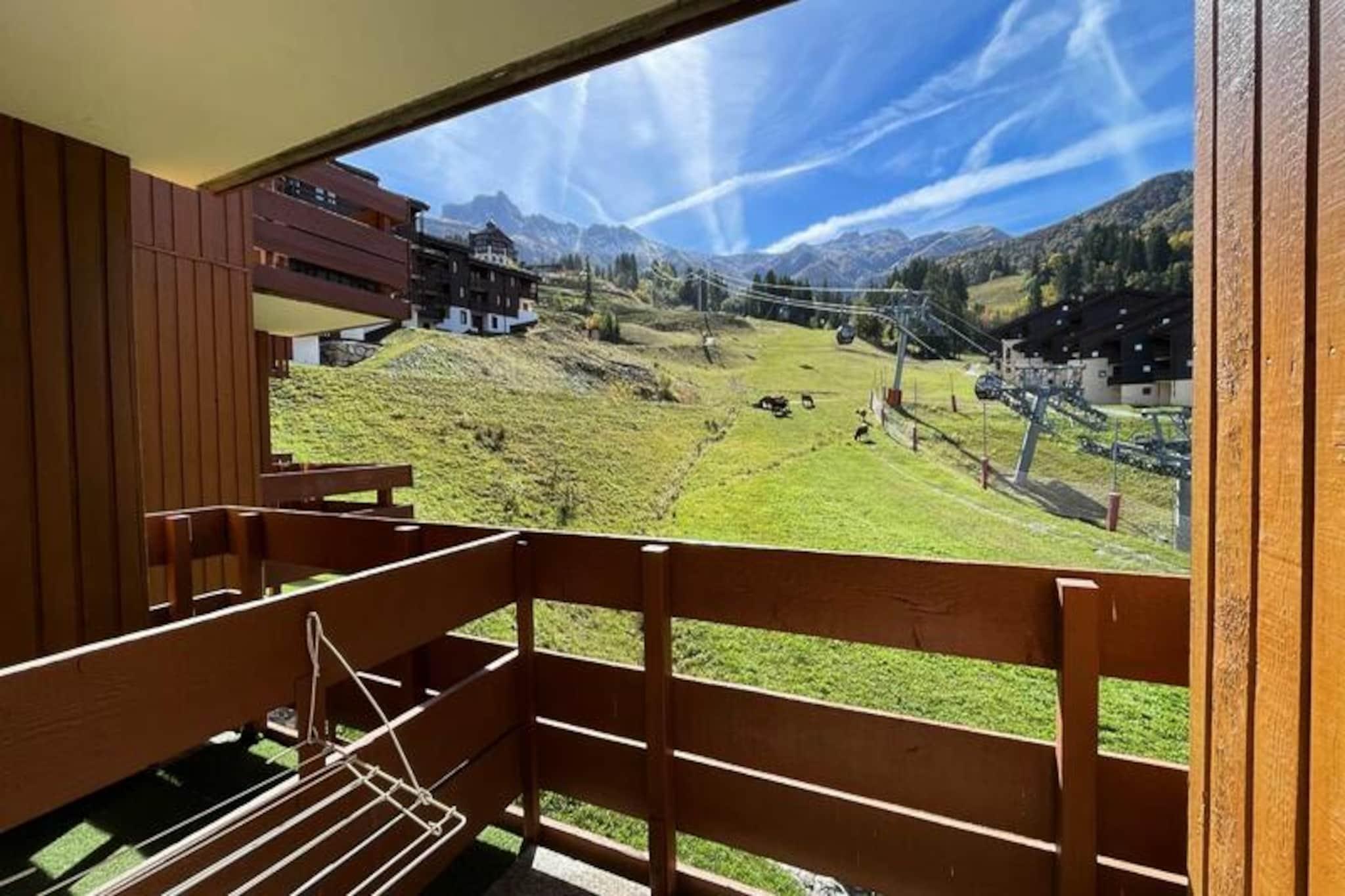 I hjertet av det pittoreske Crève Coeur-distriktet i Valmorel tilbyr denne sjarmerende toromsleiligheten et koselig alpint tilfluktssted med direkte ski-in/ski-out-tilgang. Tenk deg å gå ut på din sørvendte balkong hver morgen og nyte den fredelige utsikten over bakkene mens du planlegger din eventyrdag i de franske Alpene. Enten du er her for spenningen ved ski eller roen i fjellandskap, har denne residensen en perfekt beliggenhet for å fordype deg i regionens skjønnhet. \n\nLeiligheten er på 33 kvadratmeter og har komfortabel plass til opptil fem gjester med en stue med tre enkle sovesofaer og et separat soverom med dobbeltseng. Det åpne kjøkkenet er utstyrt med moderne fasiliteter, inkludert elektrisk kokeplate, oppvaskmaskin, stekeovn og mikrobølgeovn, noe som gjør matlaging til en lek. Et bad med separat toalett sikrer bekvemmelighet, mens skiskapet gir praktisk oppbevaring for utstyret ditt. Kjæledyr er velkomne, noe som gir et preg av hjem til din alpine ferie. Vær oppmerksom på at Wi-Fi ikke er inkludert, men sjarmen ved å koble av midt i naturen er en unik appell. \n\nResidensen ligger mindre enn 100 meter fra Télétour-skiheisen, og tilbyr uovertruffen tilgang til bakkene og nærliggende butikker, inkludert et bakeri, en minimarked og en sportsbutikk. Crève Coeur-distriktet er også forbundet med sentrum av feriestedet og landsbyen Mottet via Télétour-taubanen, noe som sikrer enkel utforskning av Valmorels pulserende omgivelser. \n\nEnten du er ute etter spennende vintersport eller fredelige sommerturer, er denne leiligheten det perfekte utgangspunktet for å skape uforglemmelige minner i de franske Alpene. Med sin førsteklasses beliggenhet og komfortable fasiliteter inviterer den deg til å oppleve magien i Valmorel i alle årstider.