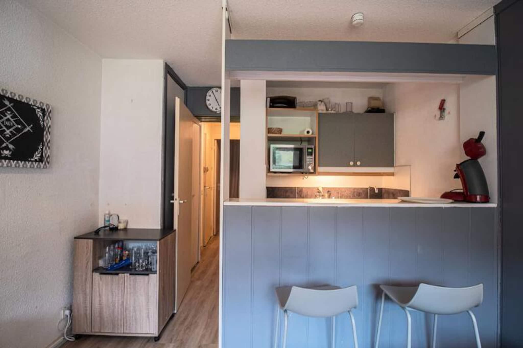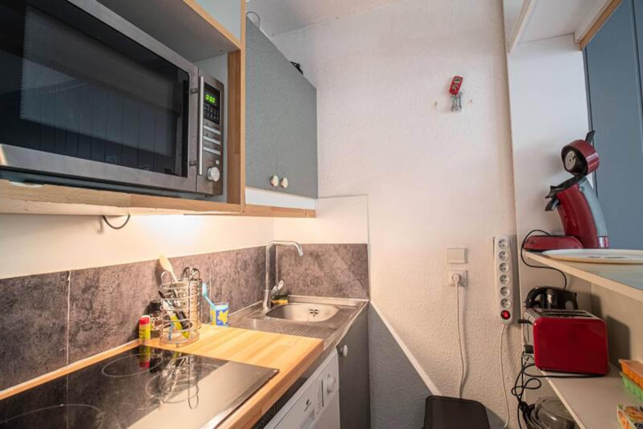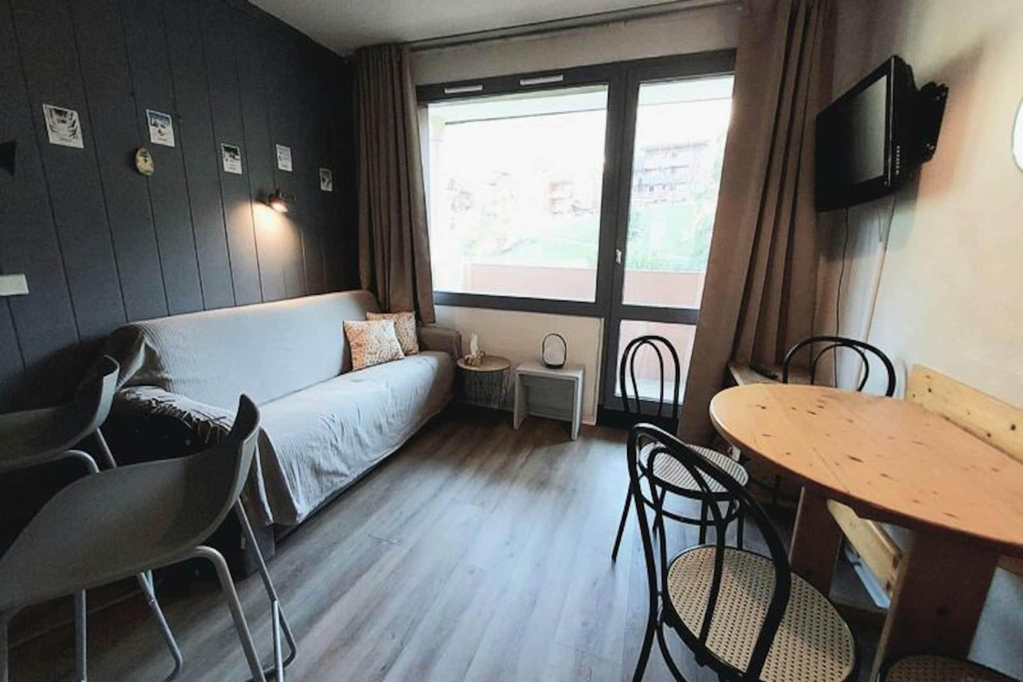 Tenk deg å våkne opp til den fredelige skjønnheten i de franske Alpene, hvor frisk fjelluft og fantastisk utsikt setter tonen for dagen din. Denne sjarmerende leiligheten på 28 m², som ligger i det rolige Fontaine-distriktet i Valmorel, tilbyr den perfekte alpine tilflukten for par eller små familier. Med stolheisen Lanchettes bare 100 meter unna, kan du gå ut av døren og ut i bakkene på et øyeblikk, noe som gjør den til et fristed for skientusiaster som søker bekvemmelighet og komfort. \n\nLeiligheten har et koselig åpent kjøkken utstyrt med oppvaskmaskin, keramisk koketopp, multifunksjonsovn, kjøleskap og til og med en raclettegrill for autentiske alpine matopplevelser. Stuen inviterer deg til å slappe av med en komfortabel dobbel sovesofa og en TV, mens det separate soverommet med køyesenger gir et koselig tilfluktssted for avslappende netter. En sørvendt balkong tilbyr fantastisk fjellutsikt, perfekt for å nyte morgenkaffen eller et kveldsglass vin. Ytterligere fasiliteter inkluderer et skiskap og et dusjrom med separat toalett, noe som sikrer praktisk opphold.\n\nDenne residensen ligger i den fredelige landsbyen La Fontaine, med direkte tilgang til bakkene og bare en kort 600 meter lang spasertur fra lokale butikker. Enten du utforsker den pulserende landsbyatmosfæren eller unner deg afterski-opplevelser, er alt du trenger innen rekkevidde. Om sommeren forvandles regionen til et paradis for turgåere og naturelskere, med endeløse stier og pittoreske landskap å oppdage.\n\nVelg denne herlige leiligheten for din neste alpine ferie og opplev den perfekte blandingen av ro, eventyr og autentisk fjellsjarm.