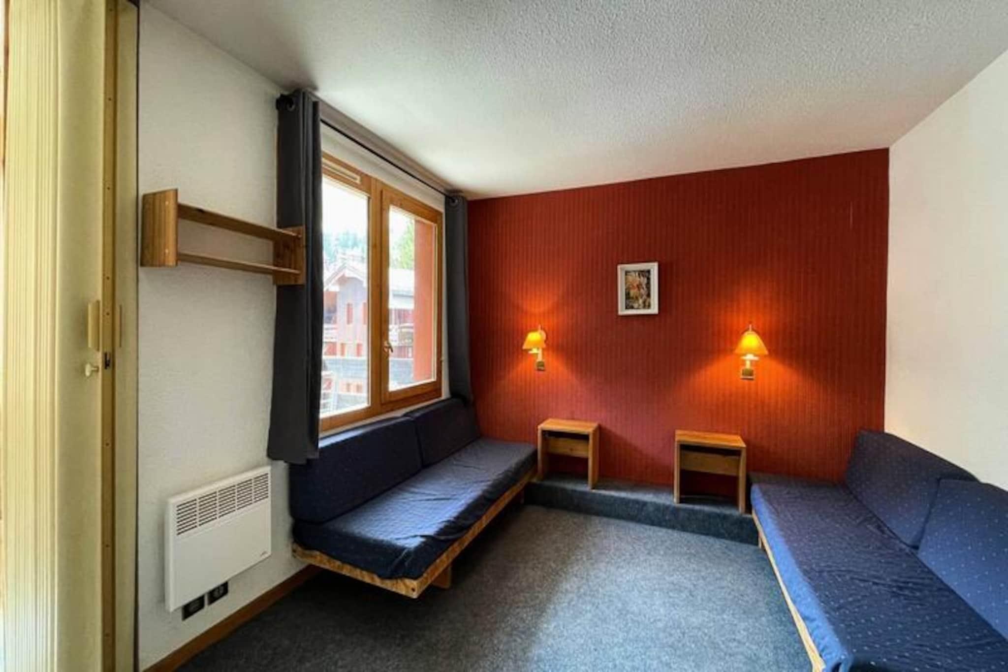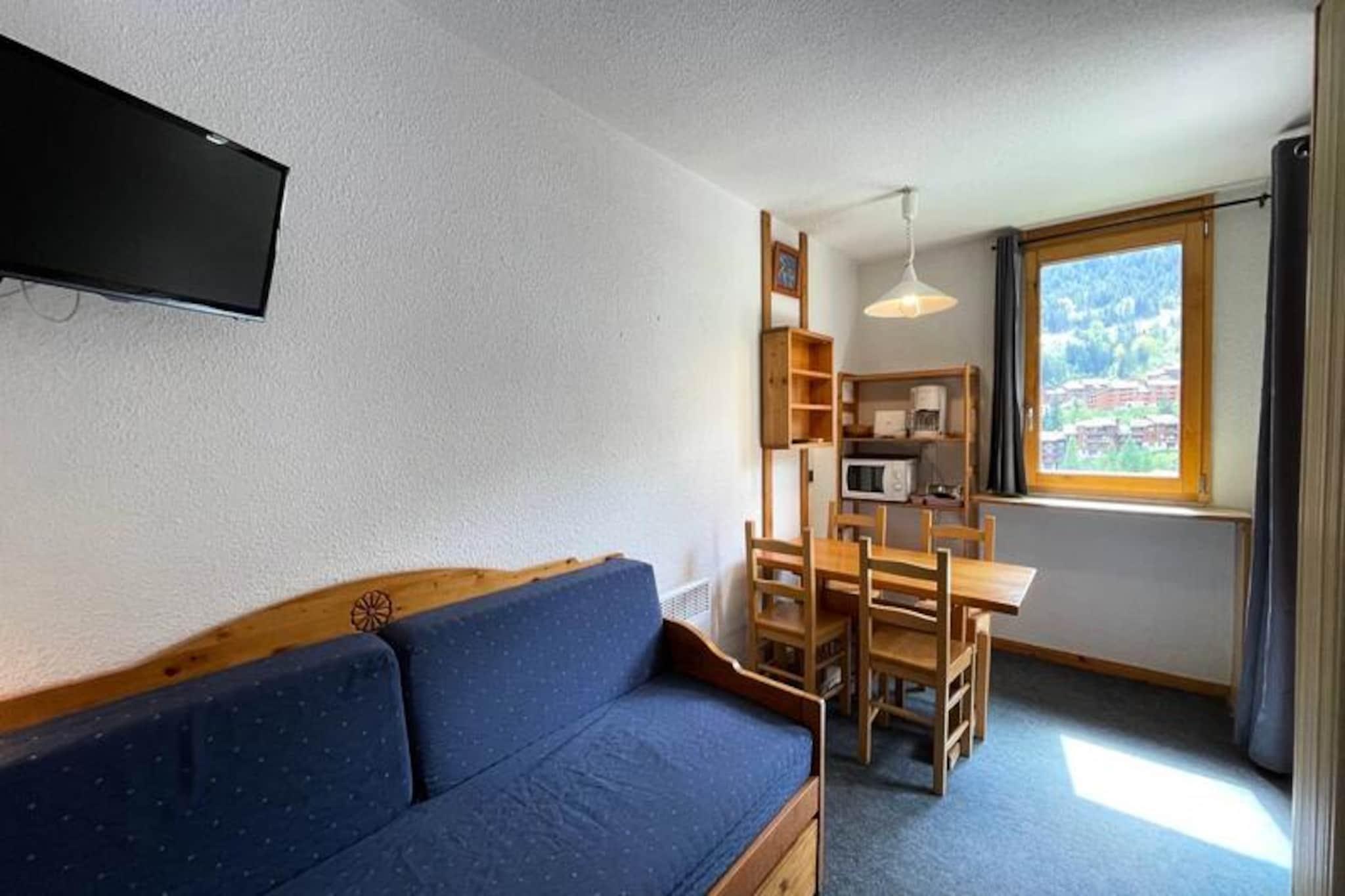 Høyt over det sjarmerende feriestedet Valmorel tilbyr denne koselige studioleiligheten en rolig alpin tilflukt med fantastisk utsikt over de omkringliggende fjellene og landsbyen nedenfor. Se for deg å nippe til morgenkaffen din på den sørøstvendte balkongen mens solen står opp over toppene, og forberede deg på en dag med eventyr i snøen eller på naturskjønne stier. Dette rolige tilfluktsstedet er perfekt for par eller små familier som søker komfort og bekvemmelighet i hjertet av de franske Alpene.\n\nLeiligheten strekker seg over 27 kvadratmeter og er gjennomtenkt designet for å maksimere plass og funksjonalitet. Inngangspartiet har et velutstyrt kjøkken med moderne hvitevarer, inkludert komfyrtopp, oppvaskmaskin, mikrobølgeovn og kjøleskap, noe som gjør det enkelt å tilberede solide måltider etter en dag utendørs. Spisestuen har komfortabel plass til fire, mens stuen tilbyr fleksible soveplasser med en uttrekksseng og to enkle sovesofaer. En flyttbar skillevegg sikrer privatliv, og badet med separat toalett gjør oppholdet ditt praktisk. Selv om Wi-Fi ikke er inkludert, gir panoramautsikten og den koselige atmosfæren den perfekte settingen for å koble av og slappe av. \n\nResidensen ligger i det fredelige La Forêt-området, bare 100 meter fra bakkene og skiheisene, noe som sikrer enkel tilgang til Valmorels berømte skiterreng. En kort 10-minutters spasertur via en gangsti fører til sentrum av feriestedet, hvor du finner butikker, restauranter og en barnehage for små barn. Enten du utforsker bakkene om vinteren eller vandrer på stiene om sommeren, fungerer denne leiligheten som en ideell base for dine alpine eventyr. \n\nMed sin blanding av komfort, bekvemmelighet og fantastisk natur inviterer denne studioleiligheten deg til å oppleve magien i de franske Alpene i alle årstider.