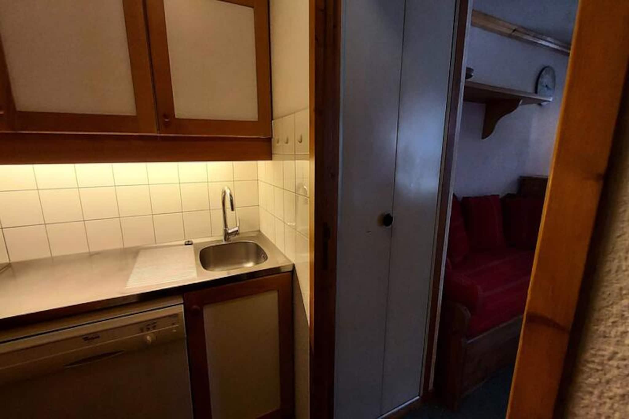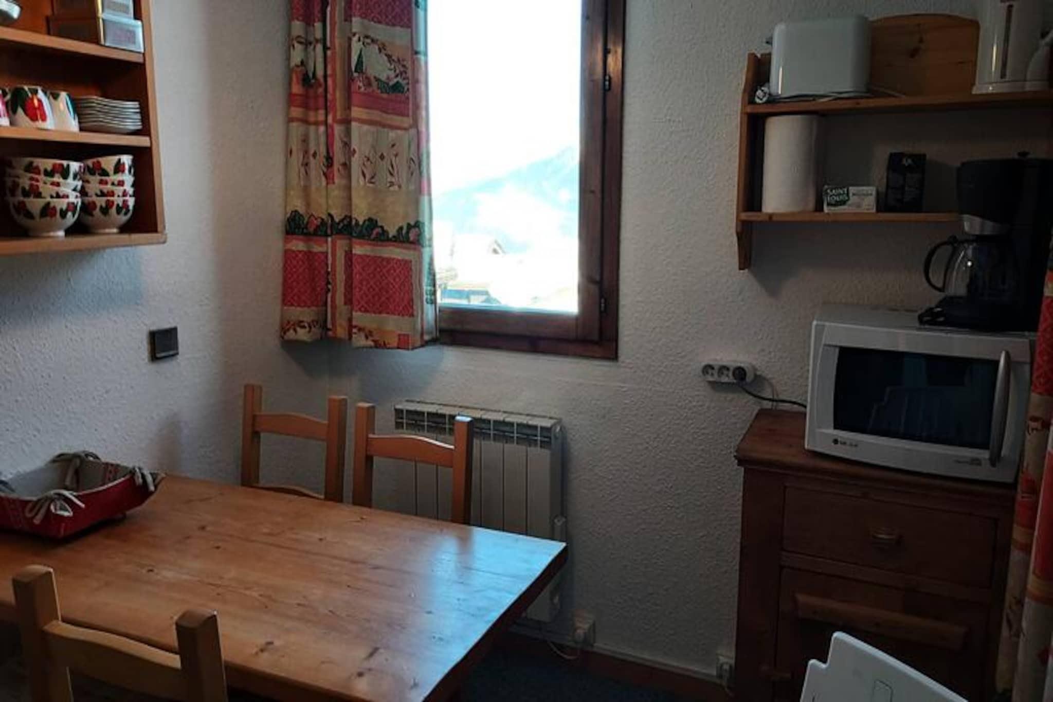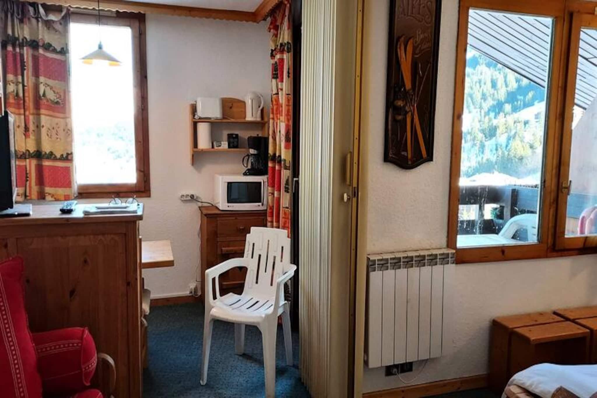 I utkanten av Valmorels fortryllende La Forêt-distrikt tilbyr denne koselige studioleiligheten en perfekt blanding av komfort og bekvemmelighet for din alpine ferie. Tenk deg å våkne opp til fredelig fjellutsikt fra din nordøstvendte balkong, gå ut til bakkene bare 100 meter unna, og nyte uanstrengt tilgang til Le Grand Domaine via Altispace-stolheisen. Enten du er her for å stå på ski, gå fotturer eller bare nyte den rolige atmosfæren, er dette sjarmerende tilfluktsstedet din inngangsport til det beste av de franske Alpene. \n\nLeiligheten på 27 m² er gjennomtenkt designet for å maksimere plass og funksjonalitet. Inngangspartiet har et fullt utstyrt kjøkken med oppvaskmaskin, elektrisk kokeplate, mikrobølgeovn, kjøleskap og til og med en raclettegrill for koselige kvelder. Spisestuen har komfortabel plass til fire, mens den delbare stuen tilbyr fleksible soveplasser med en uttrekksseng og en dobbeltseng. Et separat bad og toalett sikrer privatliv, og kjæledyr er velkomne mot et lite gebyr. Selv om Wi-Fi ikke er inkludert, tilbyr leiligheten et skiskap for utstyret ditt og lover et røykfritt miljø for oppholdet ditt. \n\nResidensen ligger i det rolige La Forêt-distriktet, \