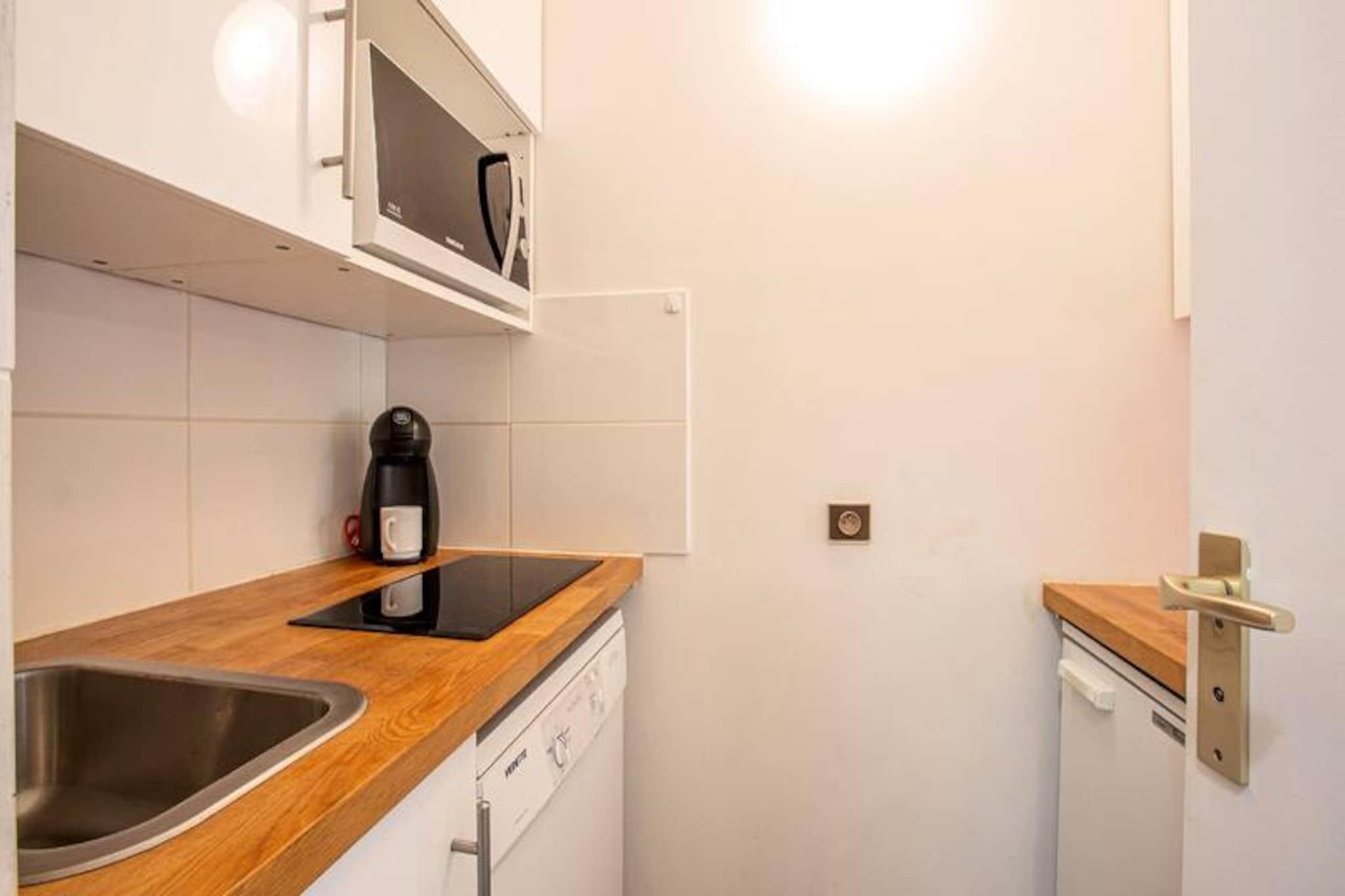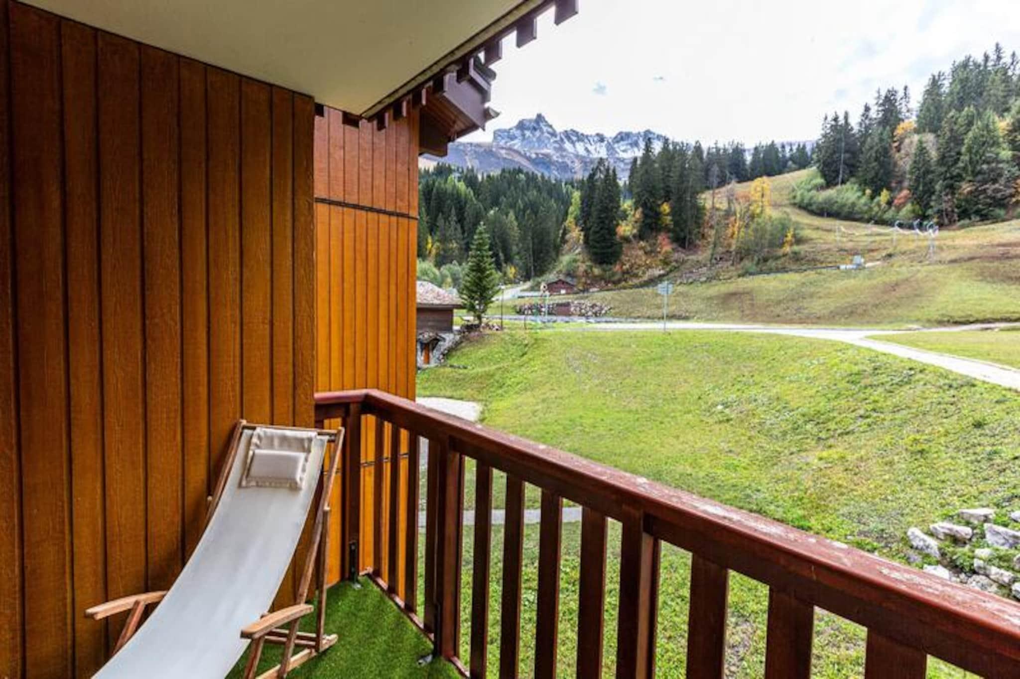 Dette sjarmerende studioet ligger i utkanten av de pittoreske bakkene i Valmorel, og inviterer deg til å fordype deg i de franske Alpenes skjønnhet. Med sin sørvendte balkong som tilbyr fantastisk utsikt over de omkringliggende fjellene, føles hvert øyeblikk her som en fredelig flukt ut i naturen. Enten du er her for spenningen ved ski eller den fredelige atmosfæren i alpelivet, tilbyr dette studioet det perfekte tilfluktsstedet for ferien din. Renovert i 2014, kombinerer det moderne komfort med varm, funksjonell design for å sikre et minneverdig opphold. \n\nStudioet på 27 m² er gjennomtenkt designet for å innkvartere opptil fire gjester. Stuen har fire enkle sovesofaer, noe som gir fleksibilitet for familier eller venner som reiser sammen. Et separat kjøkken er utstyrt med oppvaskmaskin, keramisk koketopp og mikrobølgeovn, noe som gjør måltidslagingen til en lek etter en dag med eventyr. Badet og toalettet er praktisk adskilt, og studioet er lyst og innbydende overalt. Gjestene setter spesielt pris på den enkle tilgangen til bakkene og skiskolen, samt skiskapet for ekstra bekvemmelighet. Kjæledyr er velkomne mot et lite tillegg, noe som bidrar til den familievennlige appellen til denne eiendommen.\n\nResidensen ligger i det ettertraktede Mottet-området, og har en perfekt beliggenhet for både skientusiaster og familier. Løypene og skiskolen ligger bare noen skritt unna, og sentrum av feriestedet, med butikker og fasiliteter, er lett tilgjengelig via Télèbourg-jernbanen. Det fotgjengervennlige området sikrer et trygt og rolig miljø, mens underjordisk parkering er tilgjengelig for de som ankommer med bil. Om sommeren forvandles regionen til et fristed for turgåere og naturelskere, med stier som slynger seg gjennom frodige landskap og tilbyr fantastisk utsikt.\n\nEnten du søker spennende vintersport eller et fredelig sommerferiested, lover dette studioleilighetshotellet i Valmorel en uforglemmelig alpinopplevelse. Kombinasjonen av komfort, bekvemmelighet og fantastiske omgivelser gjør det til et perfekt valg for din neste ferie.
