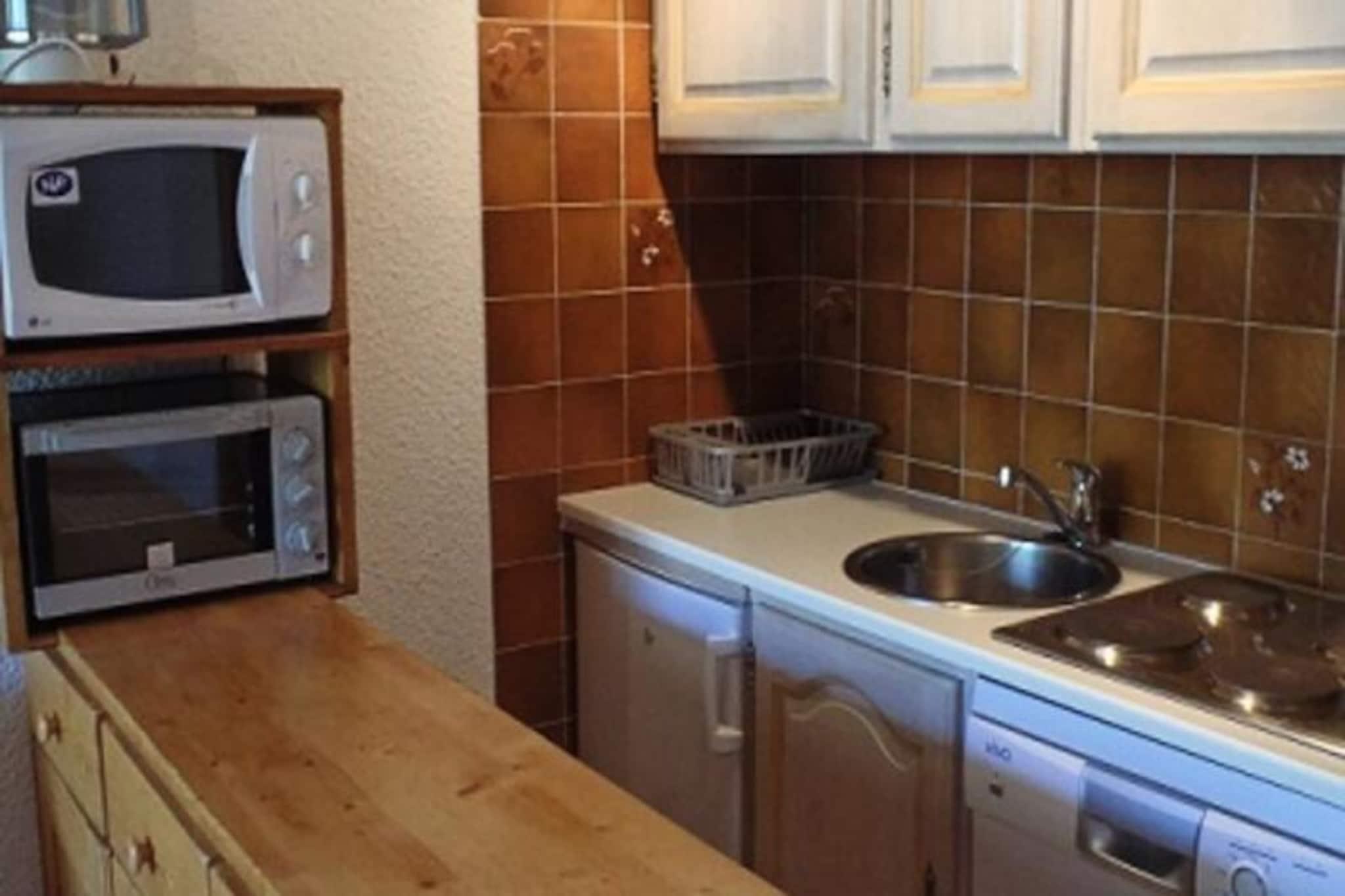 Høyt over de travle gatene i Val Thorens tilbyr Sérac-residensen et fredelig tilfluktssted i det rolige Slalom-distriktet. Denne koselige studiohytta er den perfekte alpine flukten for de som søker både komfort og ro, med det pulserende Péclet kjøpesenter og skiløyper bare en kort spasertur unna. Se for deg å starte morgenen med en varm kopp kaffe på den sørvendte verandaen, mens du nyter den friske fjelluften og den fantastiske utsikten over de omkringliggende toppene. \n\nDette studioet på 27 m² er designet for å romme opptil fire gjester, og er gjennomtenkt innredet for å maksimere komfort og funksjonalitet. Kjøkkenkroken er fullt utstyrt med miniovn, mikrobølgeovn, elektrisk komfyrtopp, kjøleskap og oppvaskmaskin, noe som gjør det enkelt å tilberede solide måltider etter en dag i bakken. Soveområdet, atskilt av en gang og glassdør, har koselige køyesenger, mens stuen har en komfortabel sovesofa som kan gjøres om til en dobbeltseng. Moderne fasiliteter som TV og eget bad med badekar sikrer et avslappende opphold. \n\nBeliggenheten er uslåelig for skientusiaster, med bakkene og en skiutleiebutikk bare 150 meter unna. Det nærliggende kjøpesenteret Péclet tilbyr alt du trenger, fra lokale butikker til restauranter og billettkontoret til skiheisen. For de som ankommer med bil, er det mulig å leie garasje for ekstra bekvemmelighet. \n\nEnten du er her for å skjære deg gjennom uberørt snø, utforske det pulserende afterski-miljøet eller bare slappe av i den fredelige atmosfæren i slalomdistriktet, er Sérac-residensen din inngangsport til et uforglemmelig alpint eventyr.