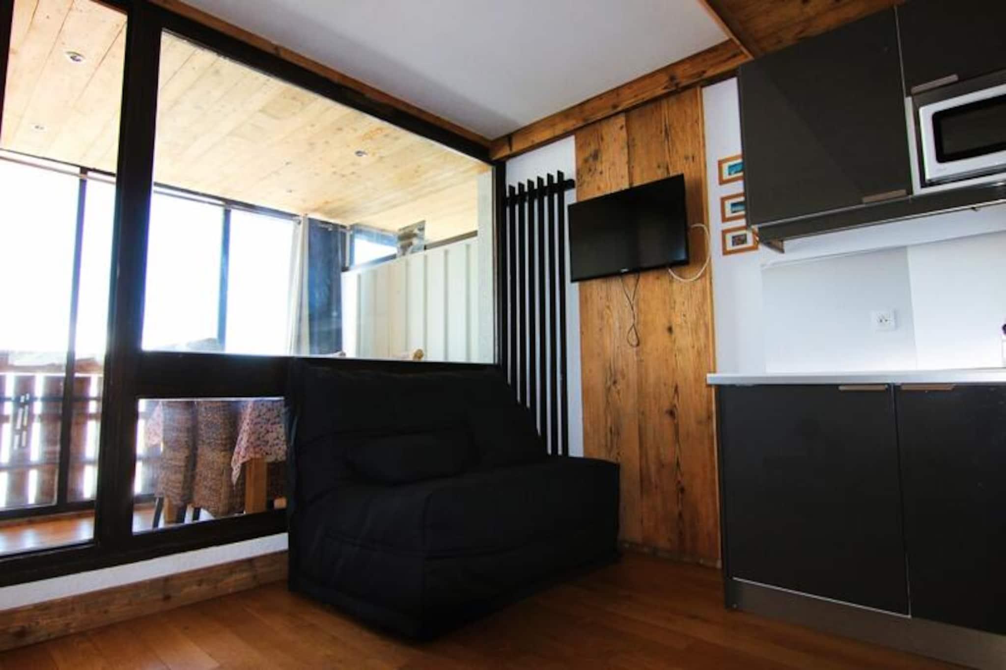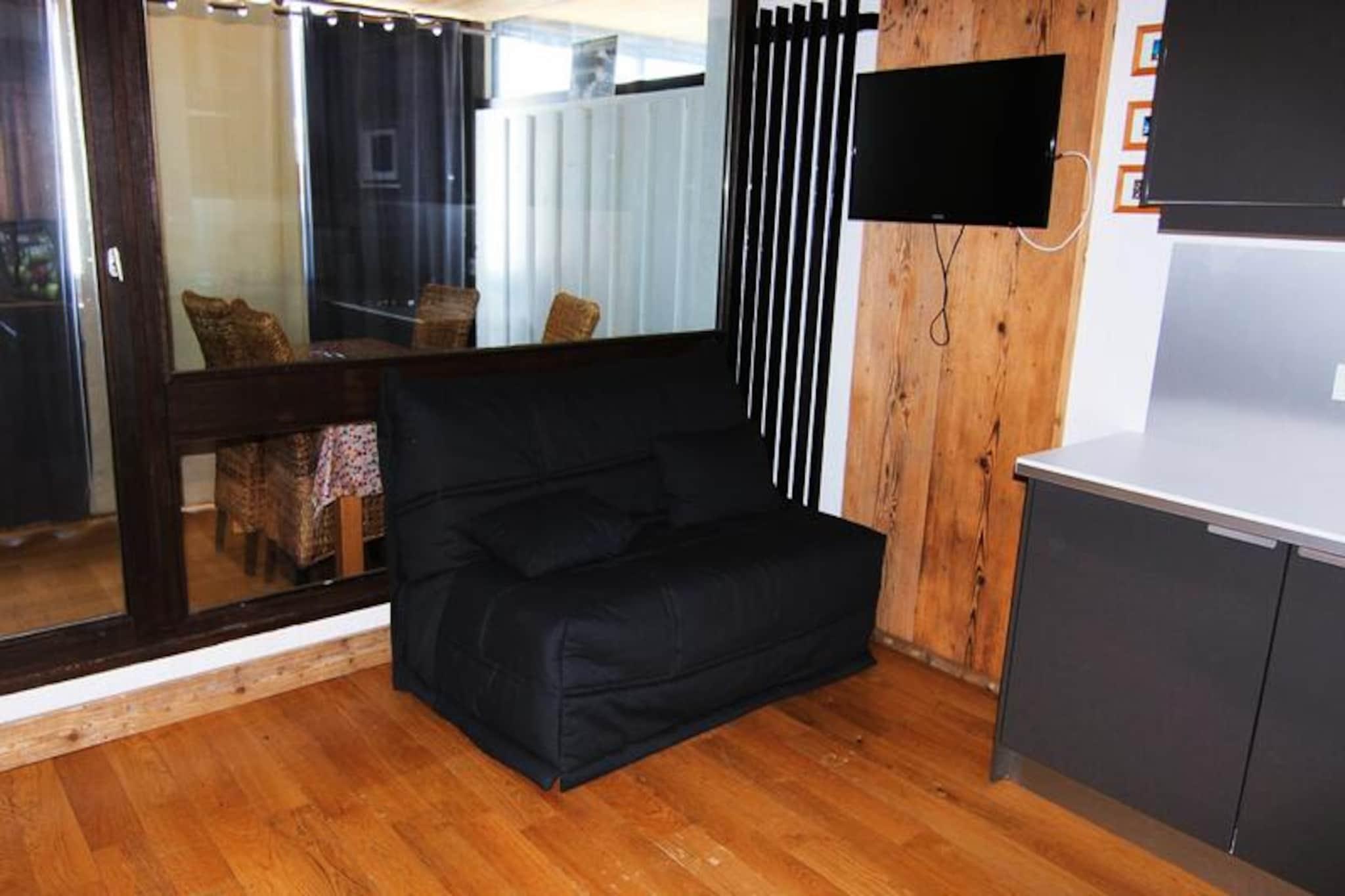 Høyt over det livlige feriestedet Val Thorens tilbyr denne sjarmerende studioleiligheten i Sérac-residensen et fredelig tilfluktssted i det rolige Slalom-distriktet. Med sin sørvestvendte veranda kan du nyte den alpine solen mens du nyter den fantastiske utsikten over de omkringliggende fjelltoppene. Denne koselige leiligheten er perfekt for par eller små familier, og kombinerer komfort og bekvemmelighet for en uforglemmelig fjellferie. Studioleiligheten på 23 m² er gjennomtenkt designet for å romme opptil fire gjester. Stuen har parkettgulv, en komfortabel sovesofa og en TV, og skaper et varmt og innbydende rom for å slappe av etter en dag i bakken. Det velutstyrte kjøkkenet har keramisk komfyr, stekeovn, mikrobølgeovn, kjøleskap, oppvaskmaskin og avtrekksvifte, noe som gjør det enkelt å tilberede solide måltider. Inngangspartiet har køyesenger, som gir ekstra soveplass, mens det moderne dusjrommet har dusj, vask og toalett. For ekstra bekvemmelighet har boligen heis og valgfri parkering (høydebegrensning på 1,80 m). Vær oppmerksom på at eiendommen er røykfri og ikke tillater kjæledyr. Bare 150 meter fra kjøpesenteret Péclet har du enkel tilgang til lokale butikker, restauranter og billettkontoret for skiheisen. Den nærliggende utleiebutikken SKISET/GOITSCHEL SPORT sørger for at du er fullt utstyrt for dine alpine eventyr. Med bakkene bare en kort spasertur unna, kan du ta på deg skiene og utforske det verdensklasse terrenget i Val Thorens, en del av det berømte skianlegget 3 Valleys. Enten du er her for å kjøre gjennom nysnø, nyte afterski-gleder eller bare slappe av i den rolige fjellatmosfæren, er denne studioleiligheten i Sérac-residensen det perfekte utgangspunktet for en minneverdig alpintur.