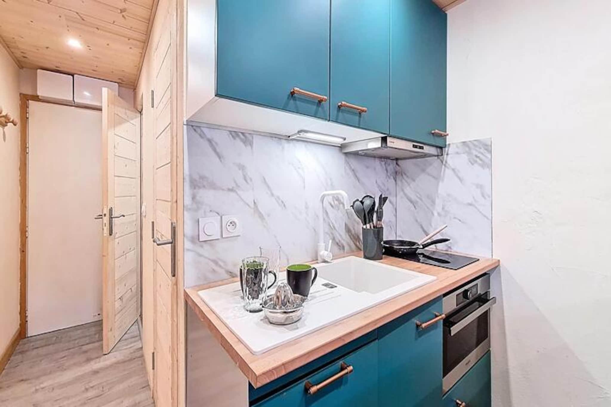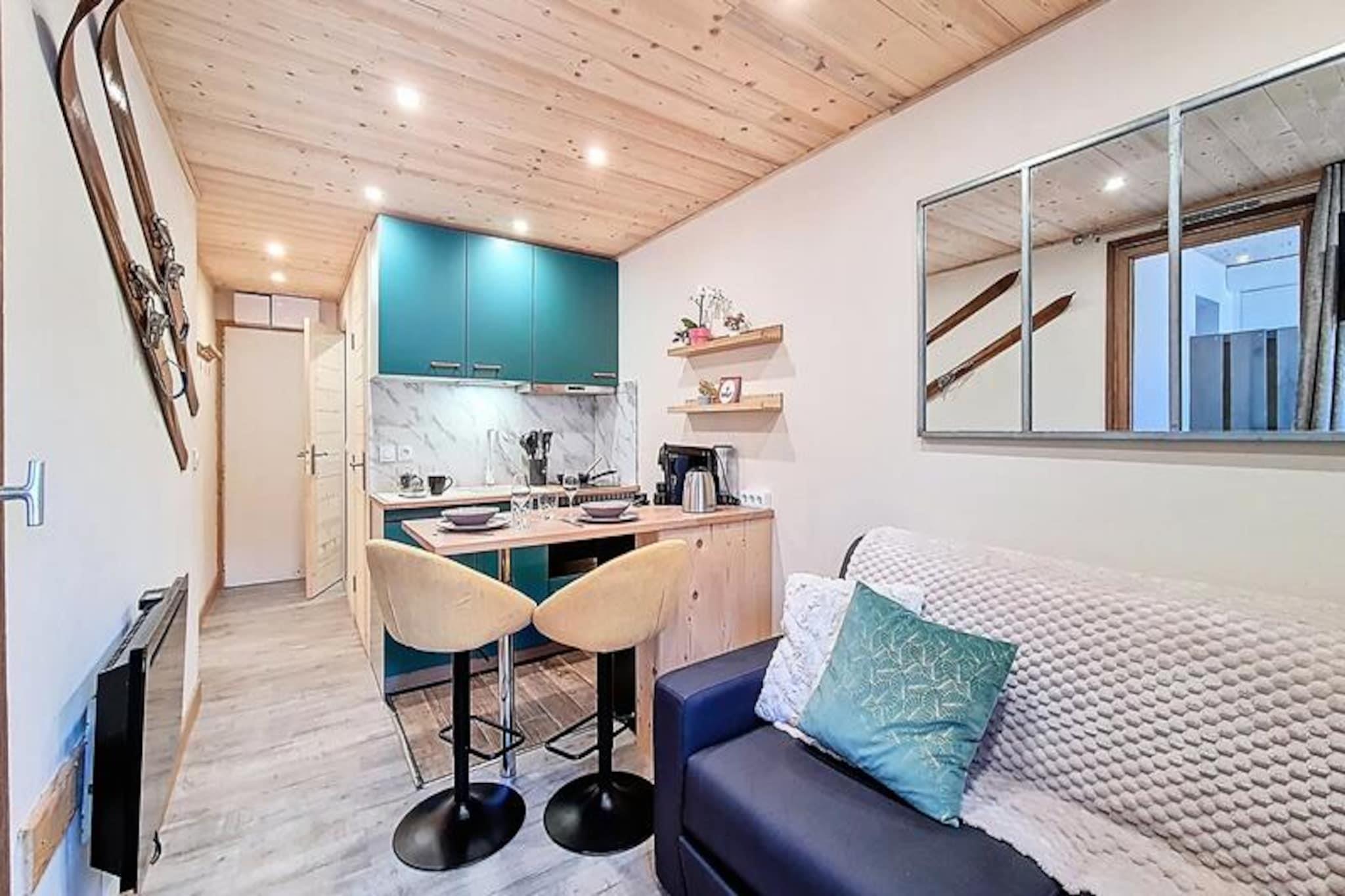 I hjertet av de franske Alpene tilbyr denne sjarmerende studioleiligheten i LES LAUZIERES-residensen et koselig tilfluktssted for opptil fire gjester. Med en perfekt beliggenhet for både ro og bekvemmelighet, ligger residensen bare noen skritt fra Caron kjøpesenter, hvor du kan utforske en rekke restauranter, butikker og viktige tjenester. Med direkte tilgang til bakkene fra baksiden av bygningen er denne eiendommen et ideelt valg for skientusiaster som ønsker å maksimere tiden sin i snøen. Studioleiligheten på 20 m² er gjennomtenkt designet for å få mest mulig ut av plassen. Stuen har en komfortabel sovesofa for to og en TV, noe som skaper et innbydende sted å slappe av etter en dag med alpine eventyr. Det åpne kjøkkenet er fullt utstyrt med moderne hvitevarer, inkludert en 4-brenner koketopp, mikrobølgeovn/grillovn, kjøleskap, brødrister, kaffetrakter og vannkoker, noe som gjør det enkelt å tilberede måltider hjemme. Et separat soveområde med dobbeltseng sikrer en god natts søvn, mens badet har en forfriskende dusj. Parkettgulvet gir et snev av varme, og den sørvendte balkongen inviterer deg til å nyte fjellutsikten og den friske alpeluften. Boligen tilbyr gjennomtenkte fasiliteter som sengetøy, håndklær og sluttrengjøring, noe som sikrer et problemfritt opphold. Et skiskap er også tilgjengelig, noe som gjør det enkelt å oppbevare utstyret ditt. Vær oppmerksom på at denne røykfrie leiligheten ikke tillater kjæledyr, og den øvre køyesengen er ikke egnet for barn under seks år, i henhold til sikkerhetsforskriftene. Enten du er her for vinterbakkene eller det rolige sommerlandskapet, tilbyr dette studioet en perfekt base for å utforske skjønnheten i de franske Alpene. Med sin blanding av komfort, bekvemmelighet og direkte tilgang til bakkene, lover din alpine ferie å bli uforglemmelig.