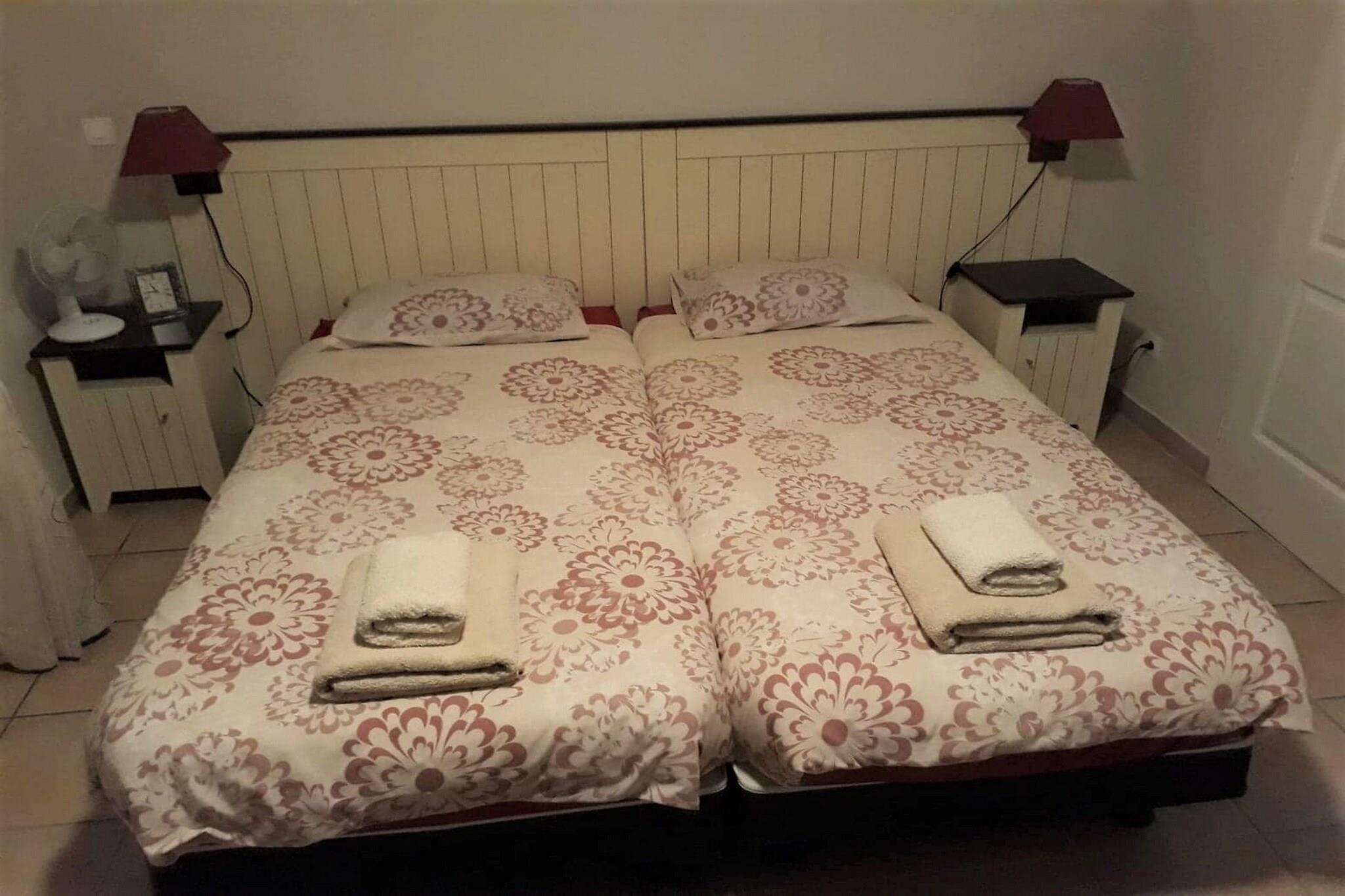 Komfort og utendørs moro Denne elegante 2-roms villaen i Les Forges har plass til opptil 4 gjester og er perfekt for familier. Den inngjerdede hagen tilbyr et trygt sted for barn og en nydelig setting for utendørs servering. En barneseng, barnestol og voksne sykler tilbys for ekstra bekvemmelighet. Feriestedets fasiliteter og aktiviteter Ligger i en fredelig, landlig villapark, har gjestene tilgang til et oppvarmet 25 m basseng, småbarnsbasseng, lekeplass, petanquebaner, bordtennis og et puttingområde. Den nærliggende golfklubben Domaine des Forges tilbyr en gratis introduksjonsrunde og rabatterte ukespakker. Restauranter er innen 1-4 km unna, og en barneklubb kjører i juli og august. Utforsk og slapp av Spaser eller sykle til lokale landsbyer for ferske croissanter og morgenkaffe. Vasles (4 km) har tennisbaner, fotballbaner og Mouton Village. Dagsturer til Futuroscope, Verruyes-sjøen og kystperler som La Rochelle og Île de Ré gjør denne villaen til en ideell base for en avslappende og eventyrfylt ferie.