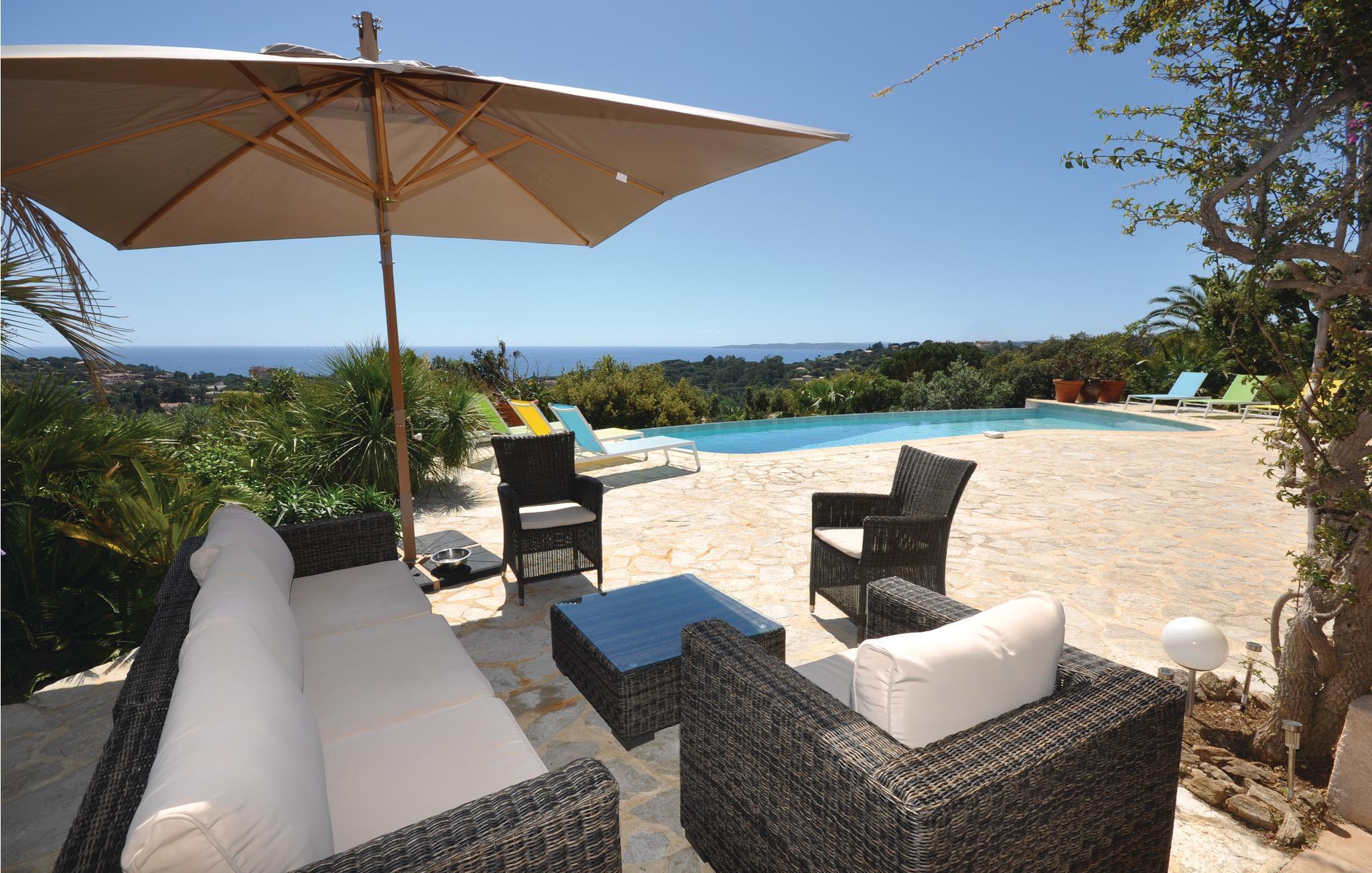 Et imponerende feriehus med vakker utsikt over havet og fjellene. Innkvarteringen ønsker deg velkommen i et boligområde bare 1 km fra sandstrendene og flotte steinete strekninger i bukten Les Issambres. Det praktfulle overløpsbassenget har utsikt over havet, og du har også en overbygd terrasse med hagemøbler og grill for mange koselige uteserveringer. Innvendig gir moderne møbler og raffinert innredning et elegant inntrykk. Badebyen Les Issambres tilbyr alt du trenger for en vellykket og uforglemmelig ferie ved havet. Oppdag den vakre bukten i Saint-Tropez med båt og bad i solen på de mange gylne sandstrendene ved Middelhavet. Sporty ferierende vil finne lykken i det nærliggende Sainte-Maxime, som kan skryte av en golfbane og et ridesenter. Huset ligger 25 km fra Saint-Tropez, 50 km fra Cannes og en time fra det mauriske massivet. Dracénie og Fayence. Dette vakre feriehuset med svømmebasseng vil gjøre det for deg og få deg til å tenke bare på å komme tilbake etter ferien!