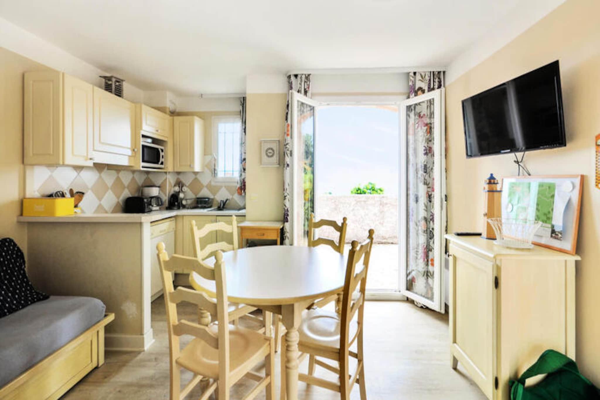 Denne koselige 2-romsleiligheten tilbyr et komfortabelt opphold for opptil 5 personer. Den har en stue med sovesofa, et soverom med dobbeltseng og et hytteområde med køyesenger. Leiligheten har bad og separat toalett, noe som gir god plass til avslapning. Eiendommen er kjæledyrvennlig (ekstra kostnader kan påløpe), noe som sikrer at dine pelskledde venner kan bli med deg på ferien. Leiligheten er røykfri og tilbyr viktige tjenester som et vedlikeholdssett med rengjøringsutstyr for din bekvemmelighet. Leiligheten ligger i den fantastiske Issambres-eiendommen, og tilbyr fantastisk panoramautsikt over Saint Tropez-bukten eller de omkringliggende åsene. Området er perfekt for naturelskere, med en 20 hektar stor natur å utforske. Gjestene kan også nyte det 200 m² store evighetsbassenget, åpent fra mai til oktober, eller dra nytte av de nærliggende strendene og markedene. Lokale kafeer og butikker er bare et lite stykke unna, og tilbyr en rekke spisesteder og shoppingmuligheter å utforske. Enten du ønsker å slappe av eller nyte lokale attraksjoner, er denne beliggenheten ideell. Leiligheten har et velutstyrt kjøkken med kjøleskap, elektrisk komfyr og mikrobølgeovn, noe som gjør måltidet enkelt. Et vedlikeholdssett er inkludert for å holde plassen ryddig under oppholdet. I tillegg har gjestene tilgang til gratis, utildekket parkering på stedet. Wi-Fi er tilgjengelig mot et pristillegg, og sengetøy og håndklær kan leies. Sluttrengjøring er obligatorisk, noe som sikrer en problemfri avreise. Nyt komforten til denne fullt utstyrte leiligheten mens den er omgitt av naturlig skjønnhet og lokale fasiliteter.