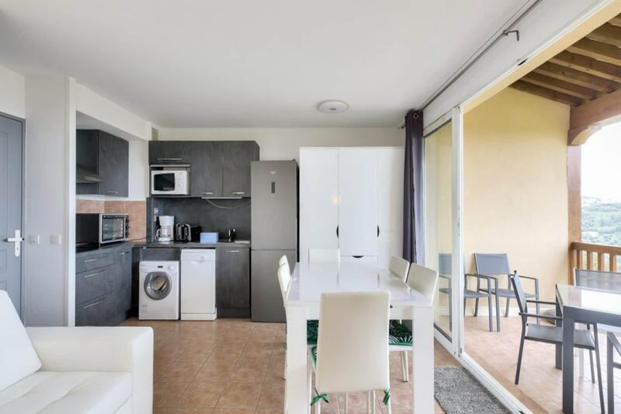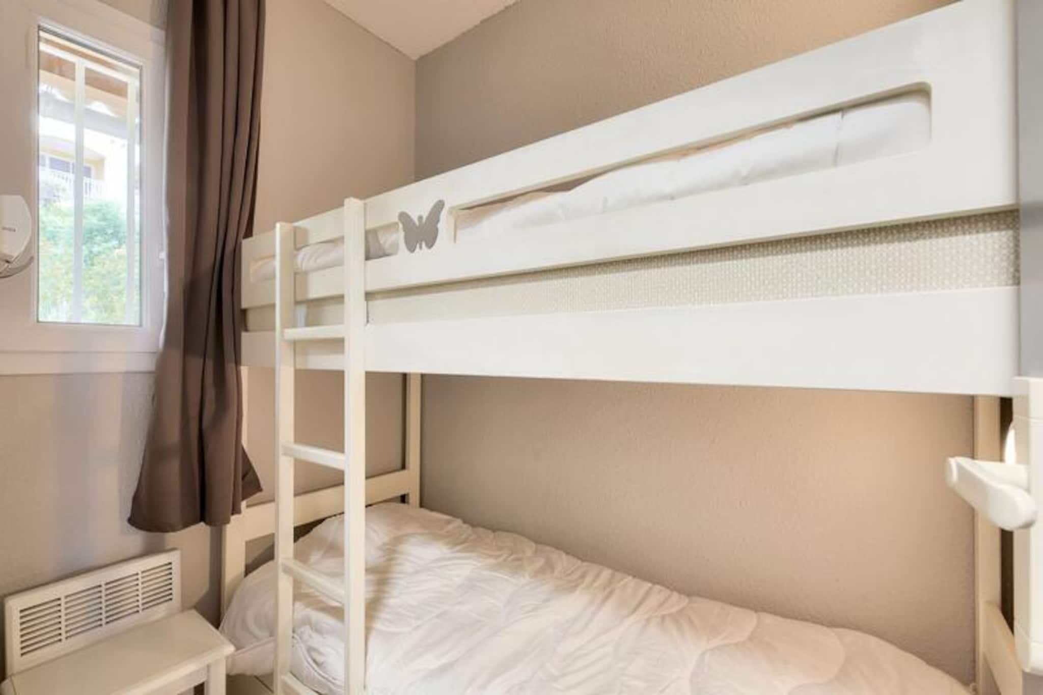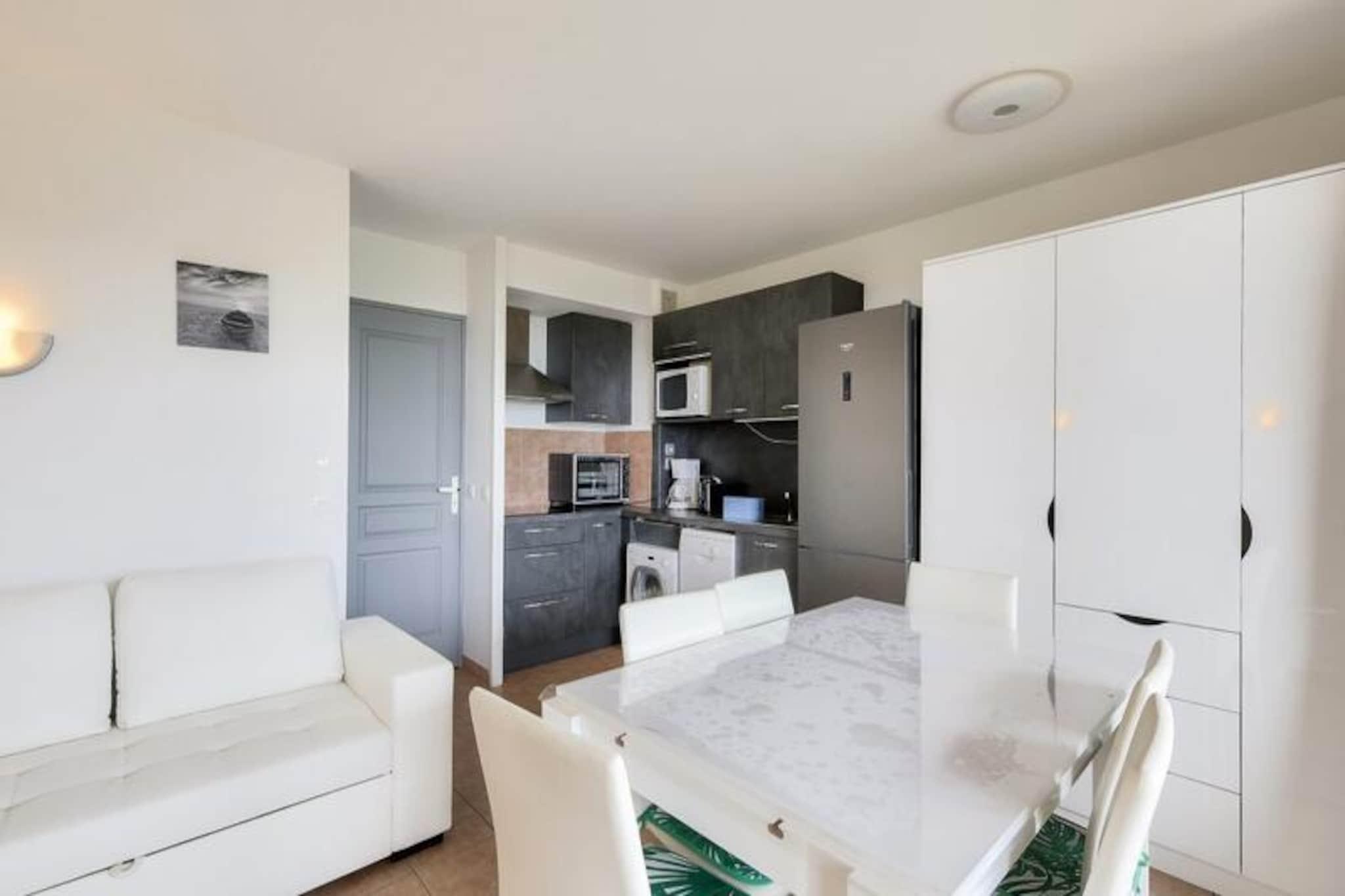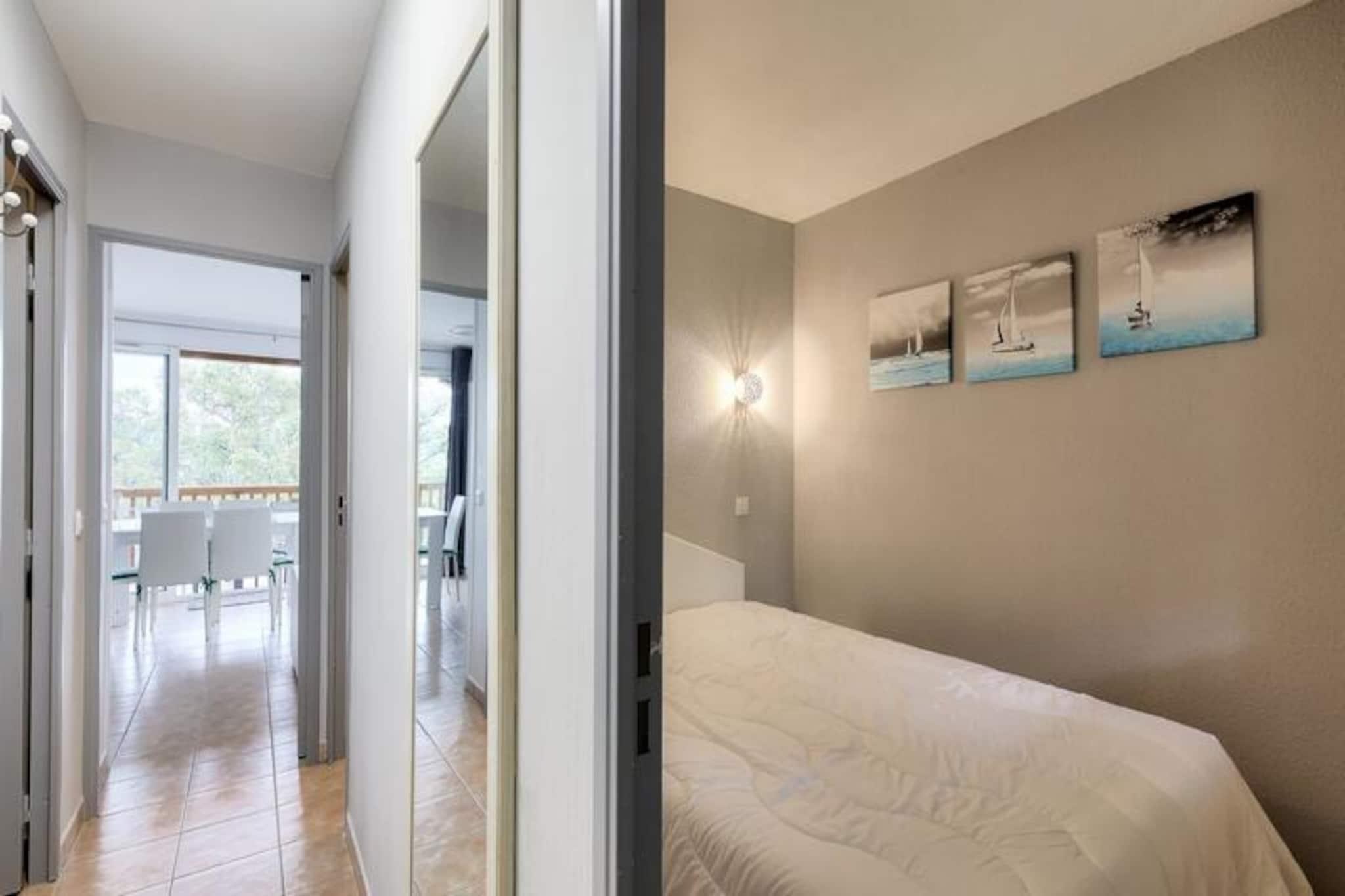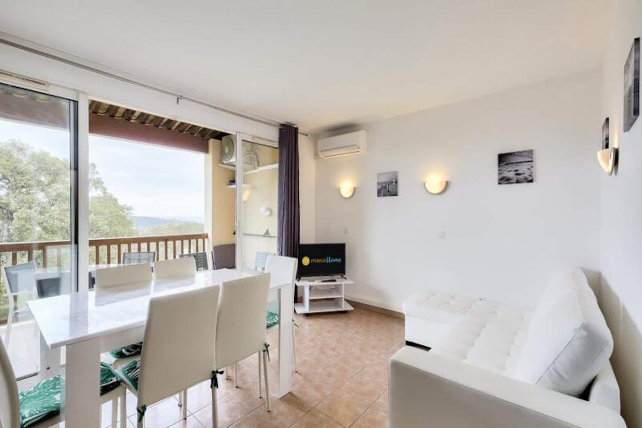 Denne lyse leiligheten p? 37 m² er perfekt for opptil 4 personer, og har 2 soverom, inkludert en dobbeltseng og en k?yeseng. Den romslige stuen har en sovesofa, og leiligheten har 2 bad og et separat toalett. Kj?ledyr er tillatt; men vennligst sp?r for pris. Nyt den vakre s?rvendte terrassen med havutsikt og bekvemmeligheten av gratis utend?rs parkering (avhengig av tilgjengelighet). Senget?y og h?ndkl?r er tilgjengelig mot et pristillegg. Eiendommen ligger mellom Saint-Raphael og Saint-Tropez, bare noen f? kilometer fra strendene i Sainte Maxime og Issambres, tilgjengelig via en naturskj?nn tursti p? 4 km. Omr?det tilbyr ulike utend?rsaktiviteter, inkludert seiling, vannski og kajakkpadling. Du kan utforske n?rliggende byer som Fr?jus, Saint Raphael og Sainte Maxime, eller nyte de lokale sportstilbudene som tennis, golf og firehjuling. Et felles sv?mmebasseng er tilgjengelig fra mai til september. Leiligheten har et fullt utstyrt kj?kken i amerikansk stil med sitteplasser, ideelt for ? tilberede m?ltider. De to badene har badekar og dusj, noe som gir mye bekvemmelighet for gjestene. Nyt moderne bekvemmeligheter som en elektrisk h?rf?ner, gratis str?muttak og en TV, sammen med tilleggstjenester som Wi-Fi (avhengig av tilgjengelighet) og sluttrengj?ring.