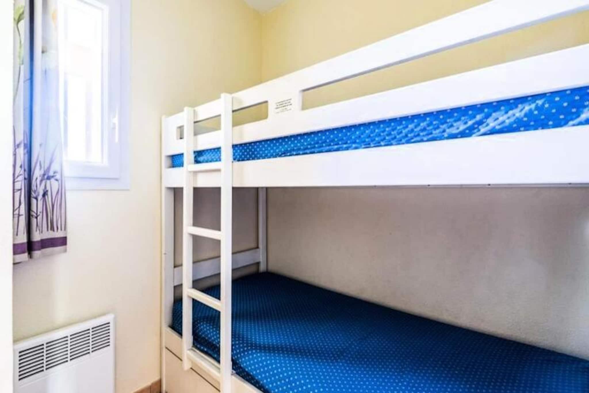 Denne romslige ferieleiligheten tilbyr et komfortabelt opphold med en rekke fasiliteter. Rommet har plass til opptil 4 personer, og har et soverom med dobbeltseng og et hytteområde med køyesenger, noe som gjør det ideelt for familier eller små grupper. Leiligheten er kjæledyrvennlig, slik at du kan ta med deg din pelskledde følgesvenn. Ytterligere bekvemmeligheter inkluderer Wi-Fi (avhengig av tilgjengelighet), TV og en dedikert parkeringsplass for din enkelhet og komfort. Denne eiendommen ligger bare noen få kilometer fra strendene i Sainte Maxime og Issambres, og tilbyr en førsteklasses beliggenhet for de som ønsker å utforske området rundt. En naturskjønn tursti tar deg direkte til stranden, mens nærliggende Fréjus, Saint Raphael og Sainte Maxime er perfekte for dagsturer. Området tilbyr også en rekke utendørsaktiviteter som fotturer, vannsport som seiling og kajakkpadling, og til og med golf, noe som sikrer at det er noe for alle å glede seg over. Innvendig har leiligheten et kjøkken i amerikansk stil, fullt utstyrt med nødvendig utstyr for å tilberede måltider, inkludert mikrobølgeovn og oppvaskmaskin. Boligen har to bad, det ene med badekar og det andre med dusj, samt separat toalett. En overbygd terrasse med havutsikt er et perfekt sted å slappe av. Residensen tilbyr også et utendørsbasseng, tilgjengelig fra mai til september, og tilleggsfasiliteter som tennisbane og lekeområde for barn.