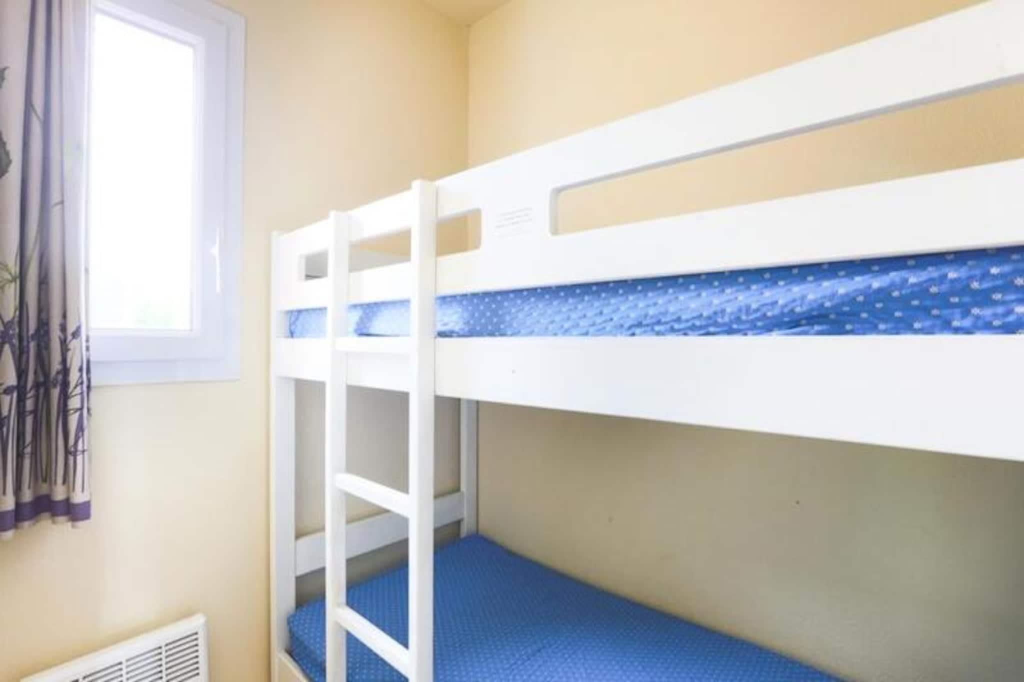 Denne sjarmerende leiligheten i toppetasjen har 36 m² plass, perfekt for familier eller små grupper. Den har en stue med sovesofa og uttrekkbar seng, et hytteområde med to køyesenger og et separat soverom med dobbeltseng. Leiligheten har plass til opptil 6 personer, noe som gjør den ideell for en avslappende ferie. Det er kjæledyrvennlig (ekstra avgifter tilkommer) og tilbyr en møblert terrasse med utsikt over Saint-Tropez-bukten. Den fredelige beliggenheten, omgitt av grønne områder, sikrer et rolig opphold. Leiligheten ligger bare noen få kilometer fra strendene i Sainte Maxime og Issambres, og gir enkel tilgang til praktfull kystutsikt. En tursti lar gjestene utforske området og nå strendene innen 4 km. Gjestene kan også nyte ulike aktiviteter i nærheten, som seiling, vannski og dykking. Området byr på flere attraksjoner, inkludert turstier, en golfbane og et lekeområde for barn, noe som sikrer mange muligheter for utendørseventyr. Leiligheten har et fullt utstyrt kjøkken med åpen planløsning til stuen, noe som gjør matlaging praktisk. Badet har badekar, og et separat toalett gir ekstra komfort. For ekstra bekvemmelighet tilbyr leiligheten en terrasse med spisebord, perfekt for utendørs måltider eller for å slappe av mens du nyter utsikten. Gjestene kan også nyte det felles utendørsbassenget, tilgjengelig fra mai til september, og gratis utendørsparkering avhengig av tilgjengelighet.