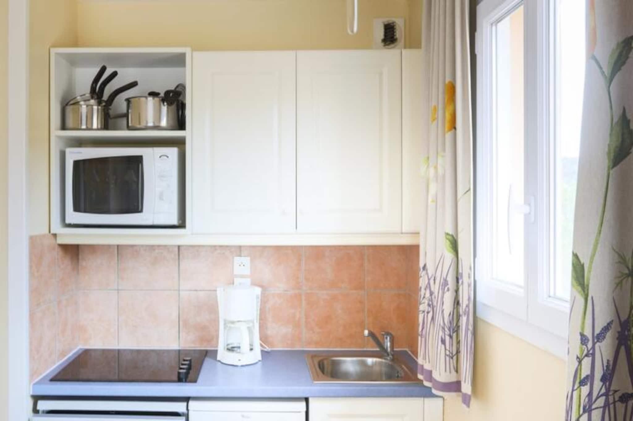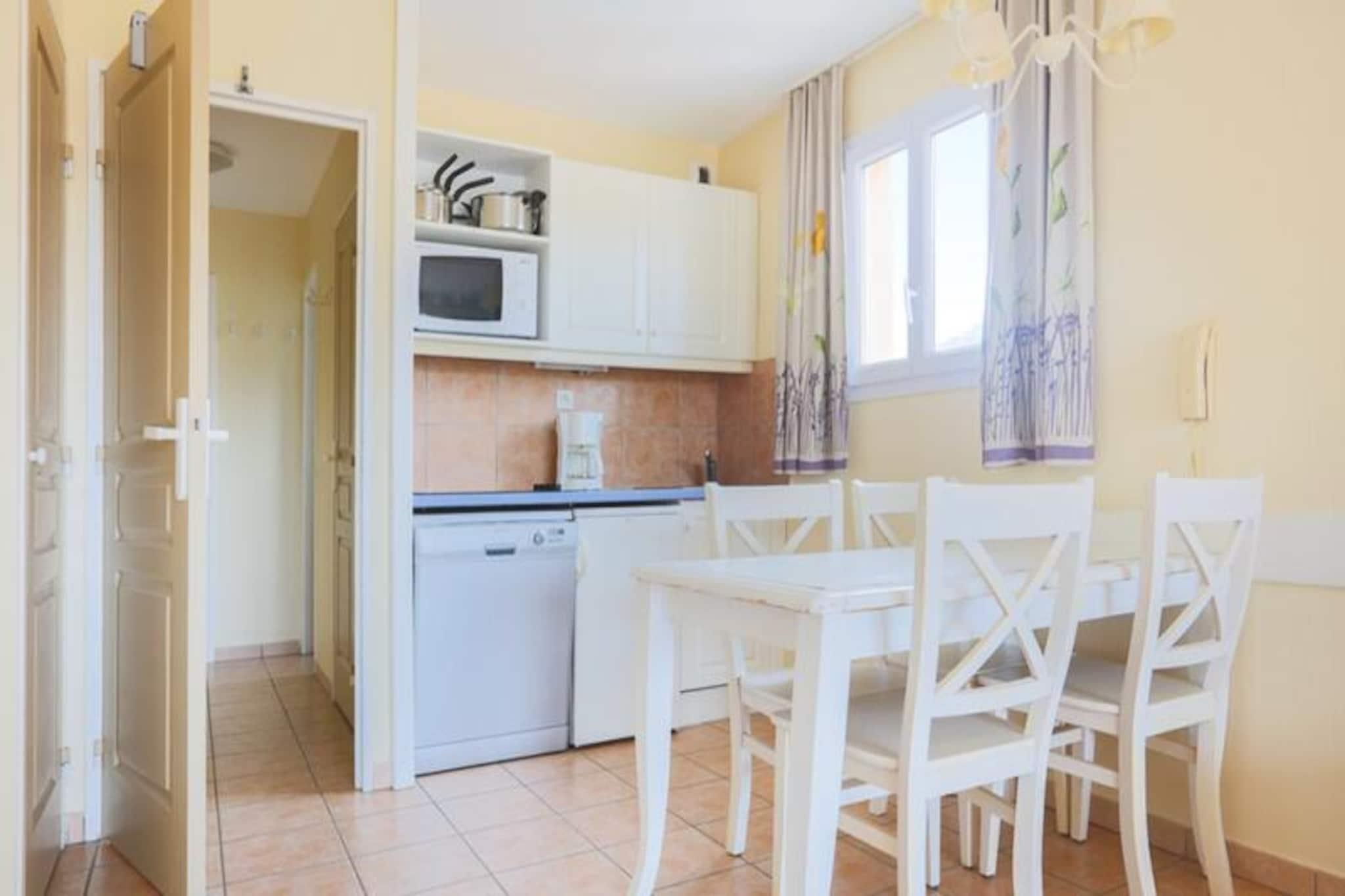 Denne koselige leiligheten i 2. etasje tilbyr et fredelig tilfluktssted med en stue med to sovesofaer, en med en uttrekkbar seng, og en spisestue med bord og fire stoler. Soverommet er utstyrt med en komfortabel dobbeltseng. Leiligheten er kj?ledyrvennlig, med en ekstra kostnad for kj?ledyr, og inkluderer en m?blert balkong med bord og stoler for ? nyte den rolige utsikten over ?sene. Et bad med badekar og toalett fullf?rer plassen, og sikrer komfort for opptil fire gjester. Residensen ligger mellom Saint-Raphael og Saint-Tropez, bare noen f? kilometer fra strendene i Sainte Maxime og Issambres, lett tilgjengelig via en naturskj?nn tursti p? 4 km. Gjestene kan utforske n?rliggende attraksjoner som de pulserende byene Fr?jus og Sainte Maxime, eller nyte ulike vannaktiviteter som seiling, vannski, dykking og kajakkpadling i omr?det rundt. Leiligheten har et ?pent kj?kken med alt n?dvendig utstyr, inkludert kj?leskap, komfyr, mikrob?lgeovn og oppbevaringsplass. Ytterligere fasiliteter inkluderer en HD-TV, gratis utend?rs parkering (avhengig av tilgjengelighet) og tilgang til et utend?rs sv?mmebasseng (sesong?pent). For enkelhets skyld er valgfrie tjenester som leie av senget?y og sluttrengj?ring tilgjengelig mot et pristillegg.