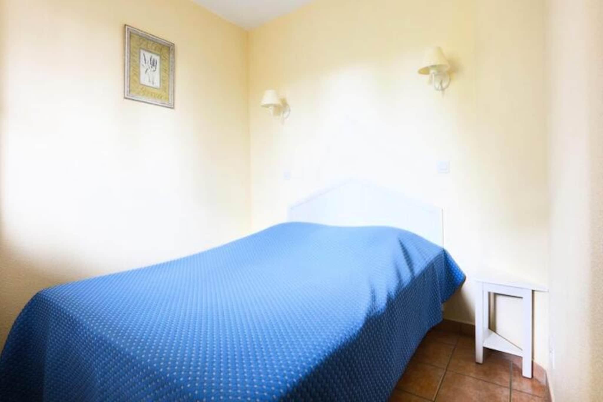 Denne sjarmerende residensen mellom Saint-Rapha?l og Saint-Tropez tilbyr romslige rom for et avslappende opphold. Leiligheten p? 33 m² har en stue med to sovesofaer (en med en uttrekkbar seng), et soverom med en dobbeltseng og et bad med badekar og toalett. Det fullt utstyrte kj?kkenet og den overbygde balkongen med utsikt over sj?en og bassenget gir ekstra komfort. Eiendommen er kj?ledyrvennlig mot en ekstra avgift, og senget?y og h?ndkl?r er tilgjengelig mot et pristillegg. Wi-Fi er ogs? tilgjengelig mot en avgift. Residensen ligger bare noen f? kilometer fra strendene Sainte-Maxime og Issambres, og er lett tilgjengelig via en 4 km lang tursti. Gjestene kan utforske Fr?jus, Saint-Rapha?l og Sainte-Maxime. I n?rheten kan du nyte seiling, vannski, kajakkpadling, turstier, golf og tennis. Omr?det byr ogs? p? en rekke butikker og kafeer. Fasilitetene inkluderer en reservert parkeringsplass, lagring og en TV. Residensen kan skilte med et utend?rsbasseng (?pent fra mai til september) og tilleggstjenester som daglig skifte av senget?y og sluttrengj?ring (ekstra kostnader tilkommer). Med sin fantastiske beliggenhet og rikelige fasiliteter, sikrer denne eiendommen et minneverdig opphold.
