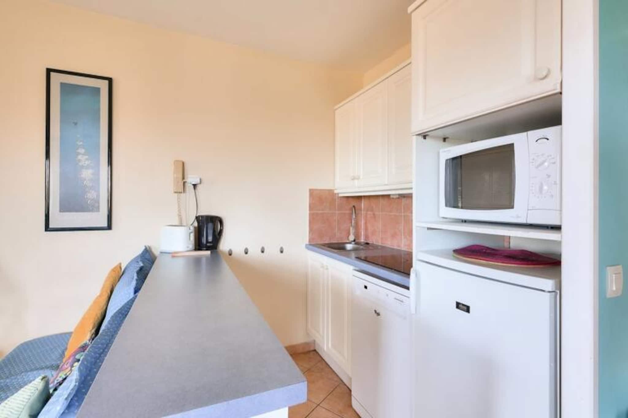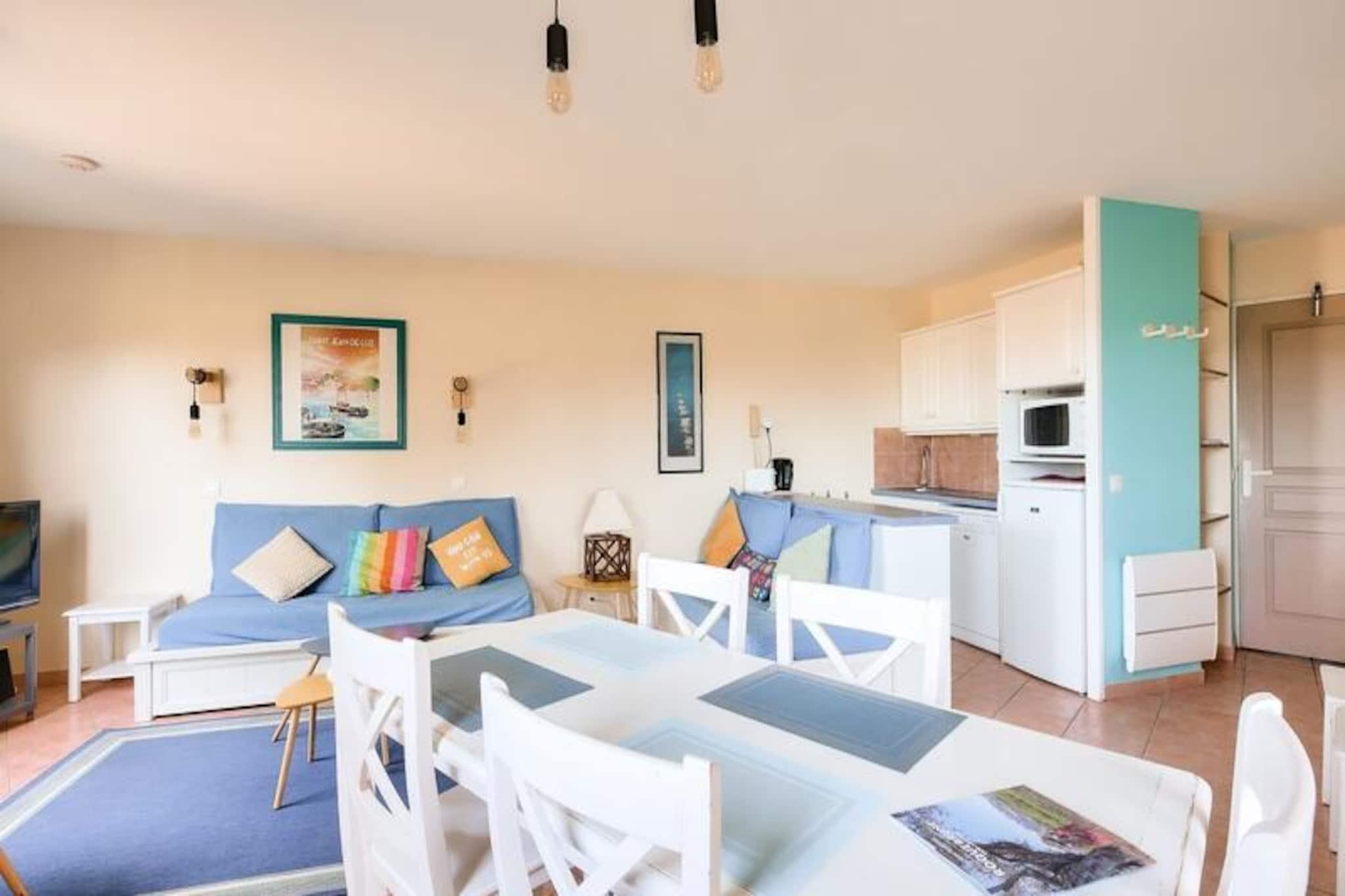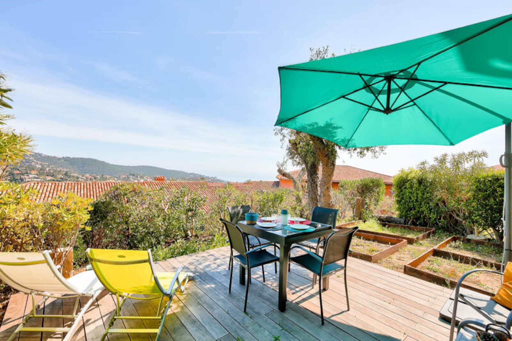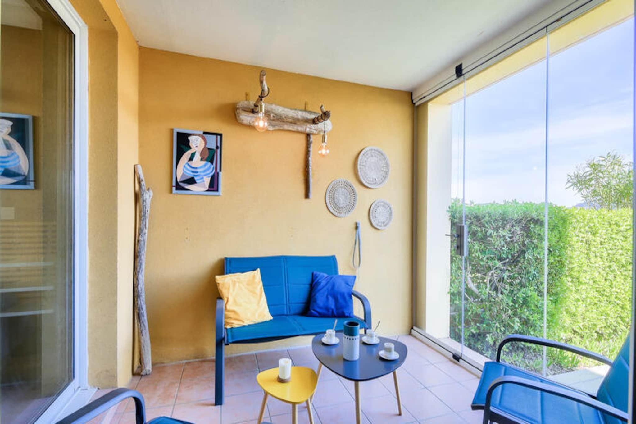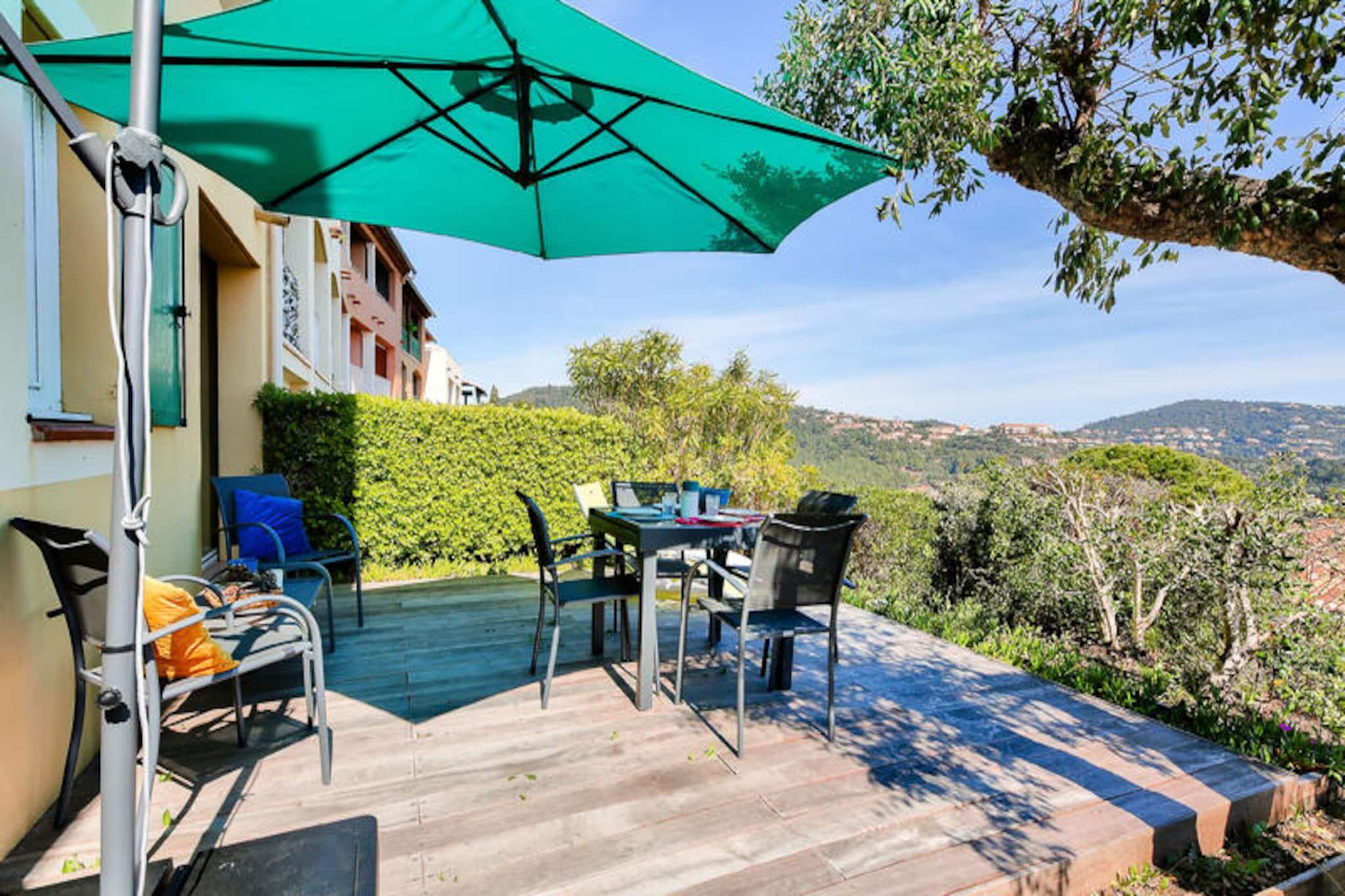 Maeva Home-residensen, som ligger over mer enn 15 hektar mellom Saint-Raphael og Saint-Tropez, tilbyr et vakkert og rolig tilfluktssted, bare noen få kilometer fra strendene i Sainte Maxime og Issambres. En tursti gir enkel tilgang til strendene, mens boligen har et utendørsbasseng som er åpent fra mai til september, med naturskjønn utsikt over havet og omkringliggende områder som Fréjus og Saint Raphael. Ulike vannaktiviteter som seiling, vannski, dykking og kajakkpadling er tilgjengelig for gjestene i nærheten. Denne leiligheten i 1. etasje har klimaanlegg, en overflate på ca. 47 m², og er designet for et komfortabelt opphold. Den inkluderer en stue med to sovesofaer og en uttrekkbar seng, et kjøkken som er åpent mot stuen, to soverom (ett med dobbeltseng og det andre med køyesenger), og et bad med badekar og toalett. En møblert overbygd terrasse med hage- og havutsikt tilbyr en avslappende plass, komplett med bord og seks stoler. Leiligheten gir også en reservert parkeringsplass og rikelig med lagringsplass. Gjestene kan også dra nytte av fasiliteter på stedet som et lekeområde for barn, tennisbaner (ekstra kostnad) og turstier. Tilleggstjenester inkluderer sengetøy, håndklær og sluttrengjøring, tilgjengelig mot en ekstra avgift. Kjæledyr er tillatt, og Wi-Fi er tilgjengelig mot et pristillegg. Eiendommen er et perfekt valg for de som leter etter en fredelig ferie med kvalitetstjenester og nærliggende rekreasjonsaktiviteter.