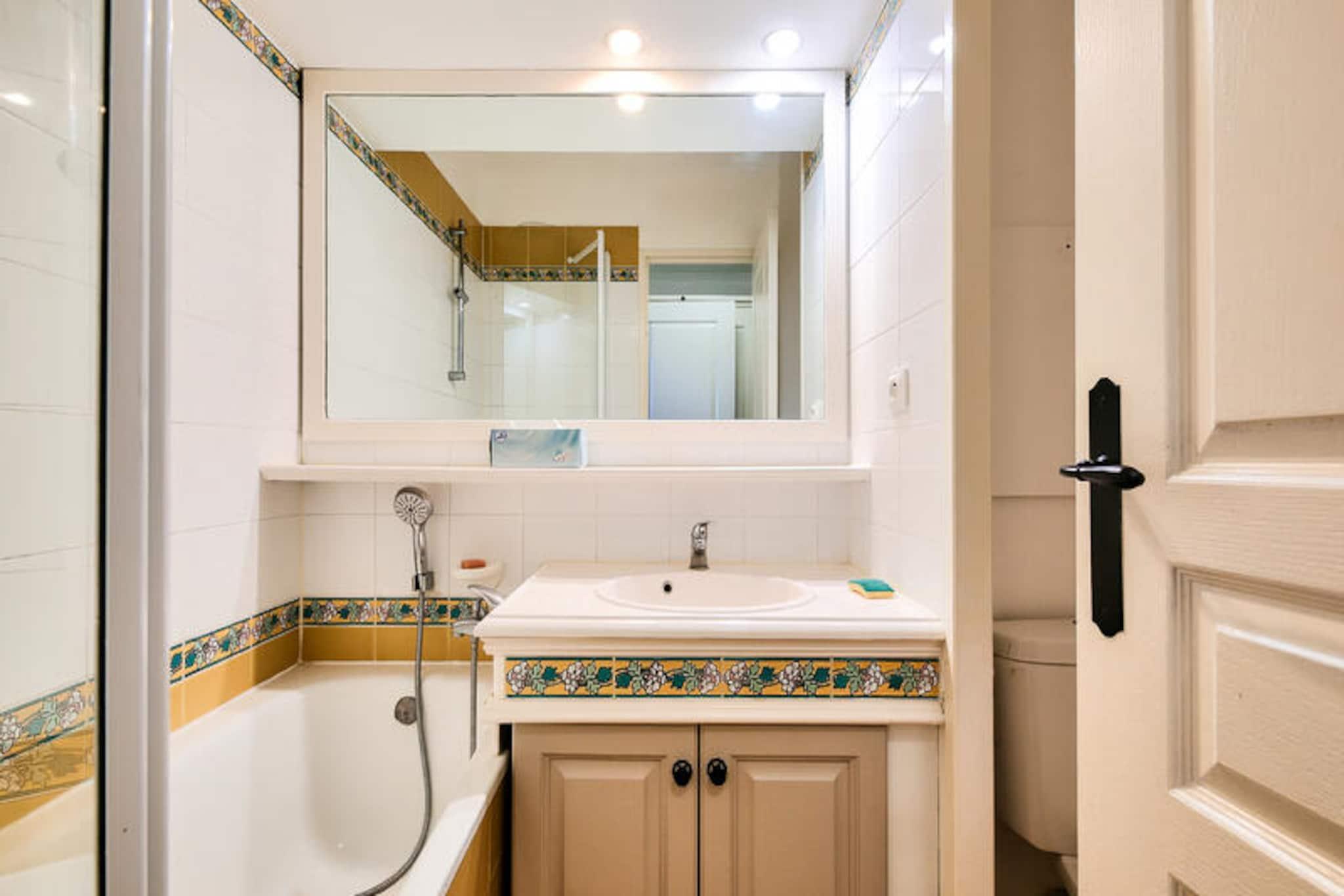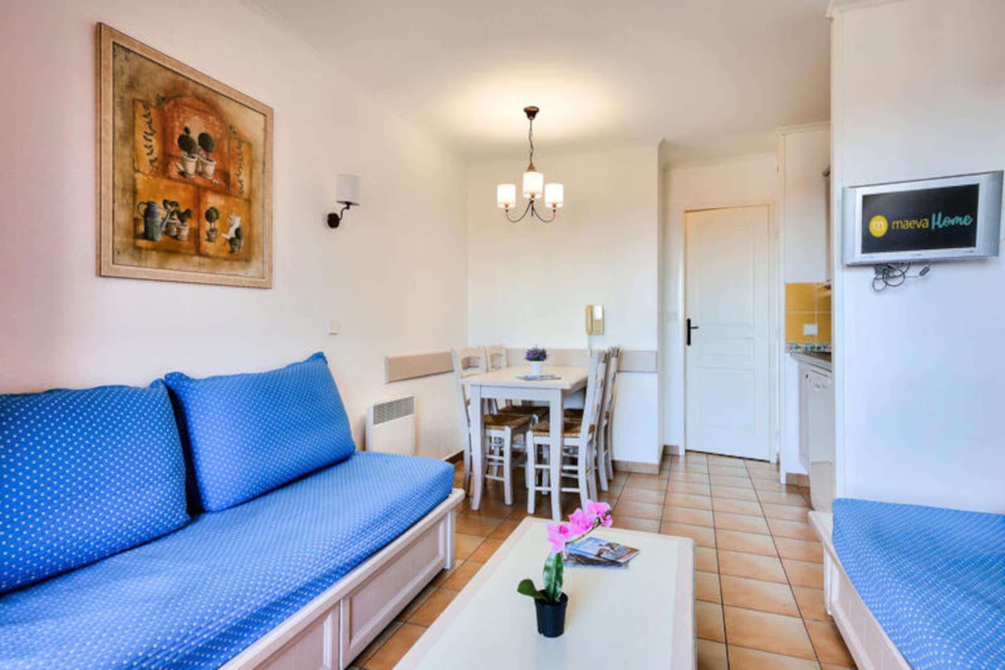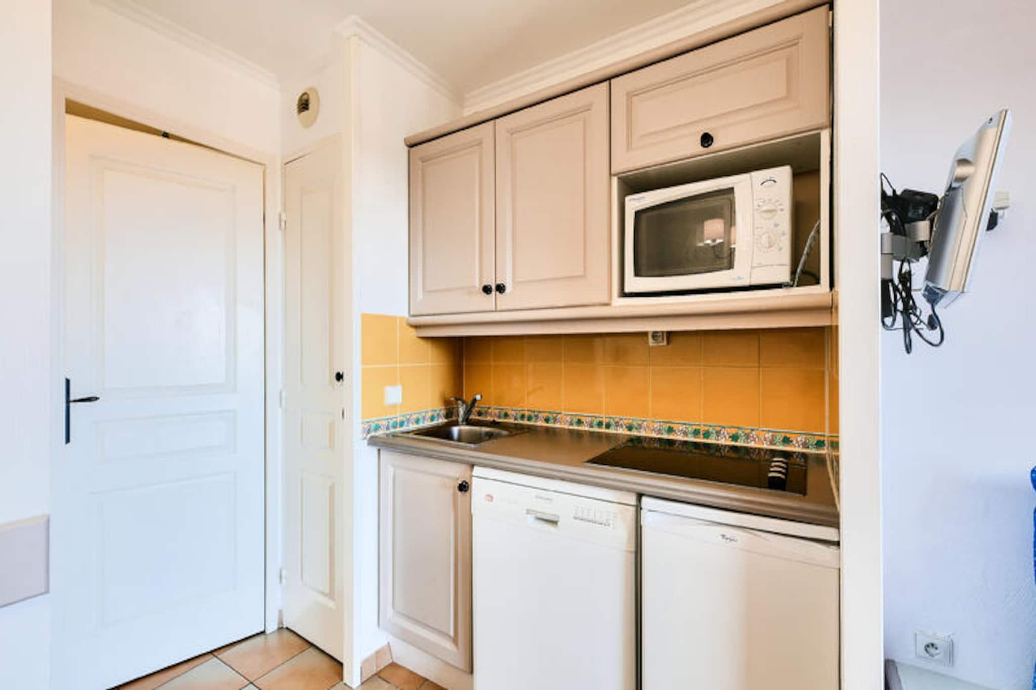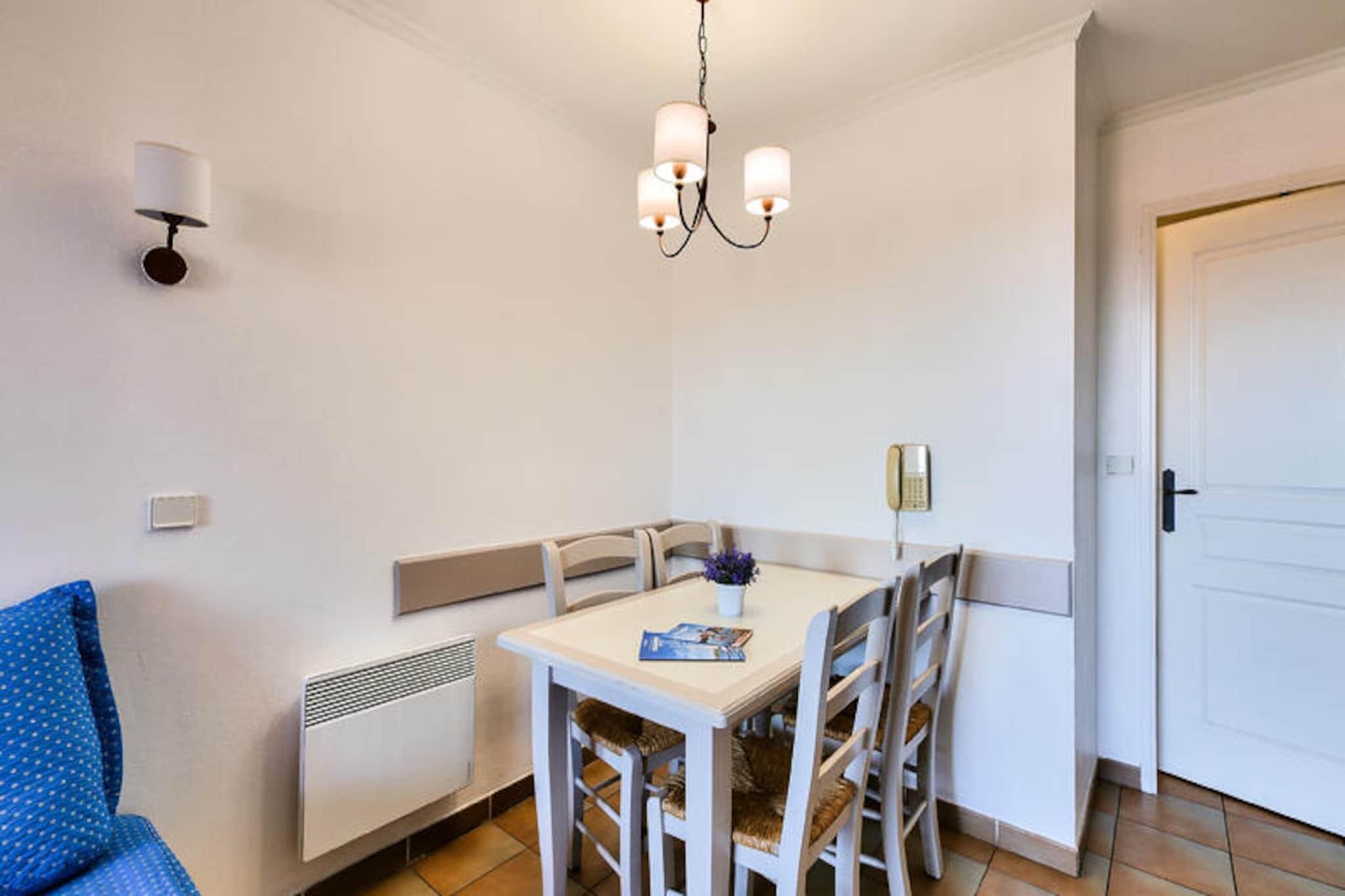 Denne ferieleiligheten ligger mellom marinaen og den gamle landsbyen Les Issambres, og tilbyr et fredelig tilfluktssted med fantastisk utsikt over Middelhavet. Residensen, som ligger i en hage full av sørlige planter, har bygninger på 3 eller 4 etasjer, noe som gir en sjarmerende og avslappende atmosfære. Stranden ligger bare 100 meter unna, med direkte tilgang til havet, mens Thalasso-senteret ved den nærliggende Premium Les Calanques des Issambres-residensen tilbyr velværetjenester. På stedet kan du nyte et vakkert uoppvarmet utendørsbasseng med plaskebasseng og slappe av på fluktstoler i solen. Selve leiligheten tilbyr 30 m² med godt designet plass, som ligger i andre etasje. Den har stue med sovesofa, kjøkken med spiseplass i amerikansk stil, 1 soverom med dobbeltseng og bad med badekar. Leiligheten har også en balkong med havutsikt, vendt mot sørøst, og er det perfekte stedet å slappe av. Parkering er tilgjengelig for din bekvemmelighet, og boligens førsteklasses beliggenhet sikrer at du er nær sentrum av landsbyen og en rekke lokale aktiviteter, inkludert dykking, tennis, seiling og golf. Tilleggstjenester inkluderer sengetøy, et vedlikeholdssett og tilgang til Wi-Fi mot en avgift. Kjæledyr er tillatt på forespørsel, og et babysett er tilgjengelig på forespørsel. Sluttrengjøring er nødvendig og kan ordnes ved innsjekking. Med sin førsteklasses beliggenhet og velutstyrte leilighet, er denne residensen det perfekte stedet for en avslappende ferie ved sjøen.