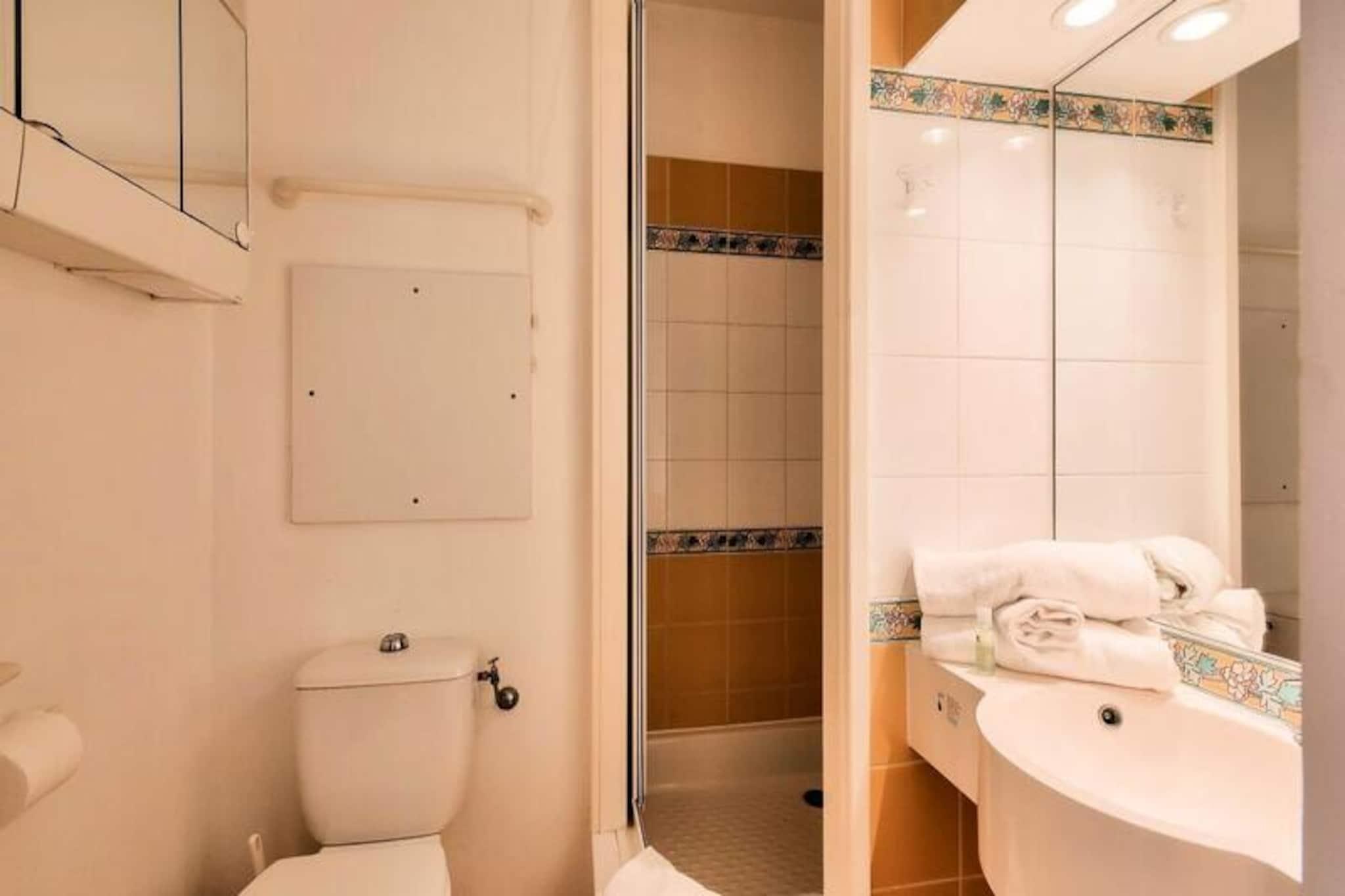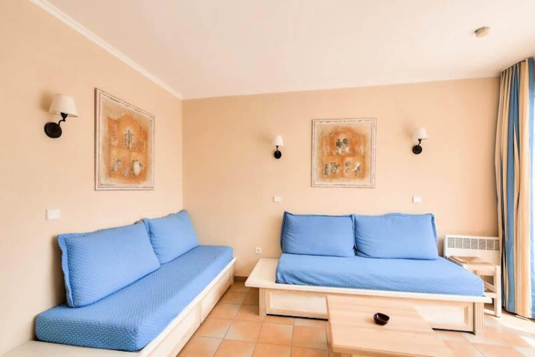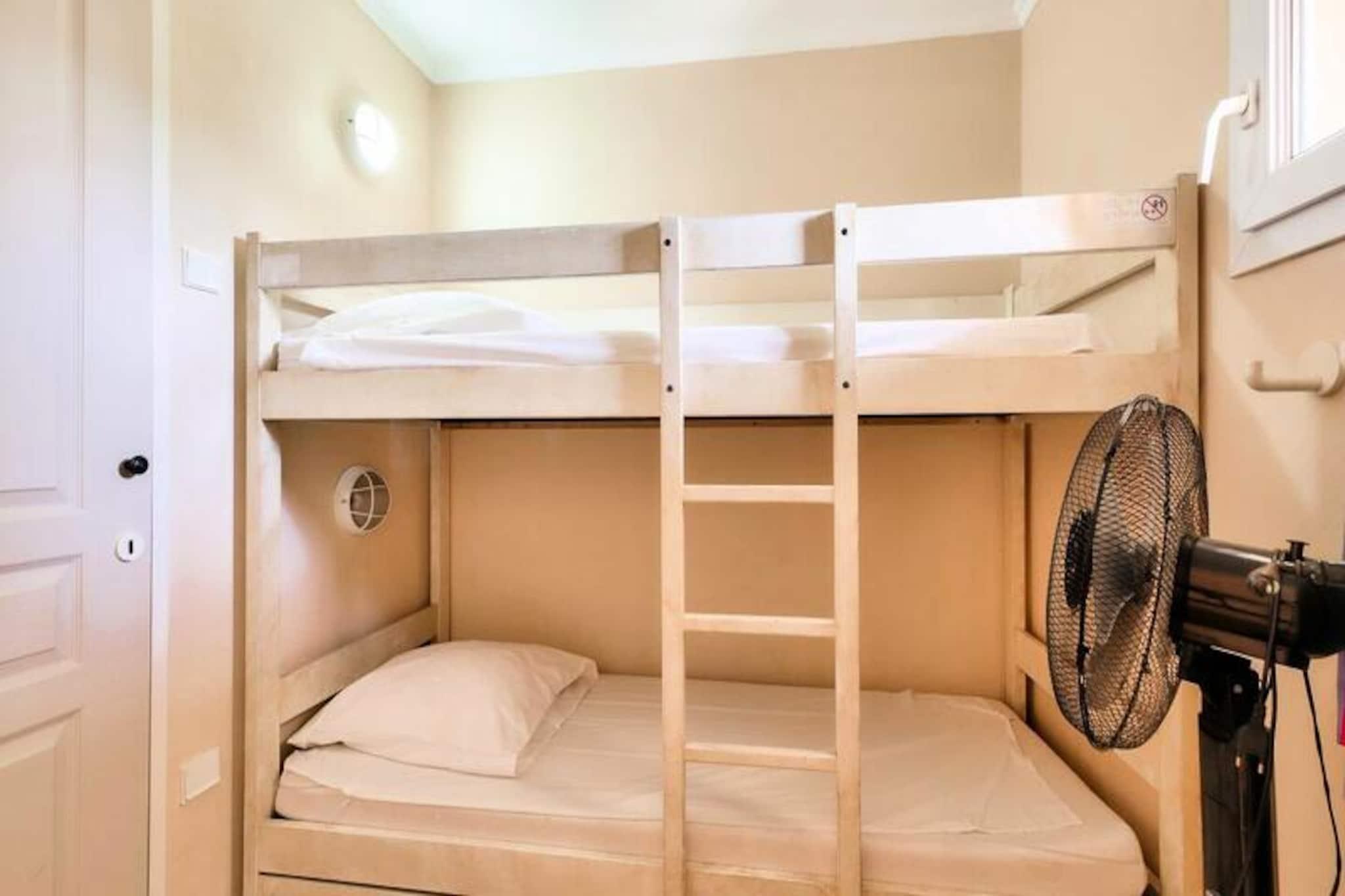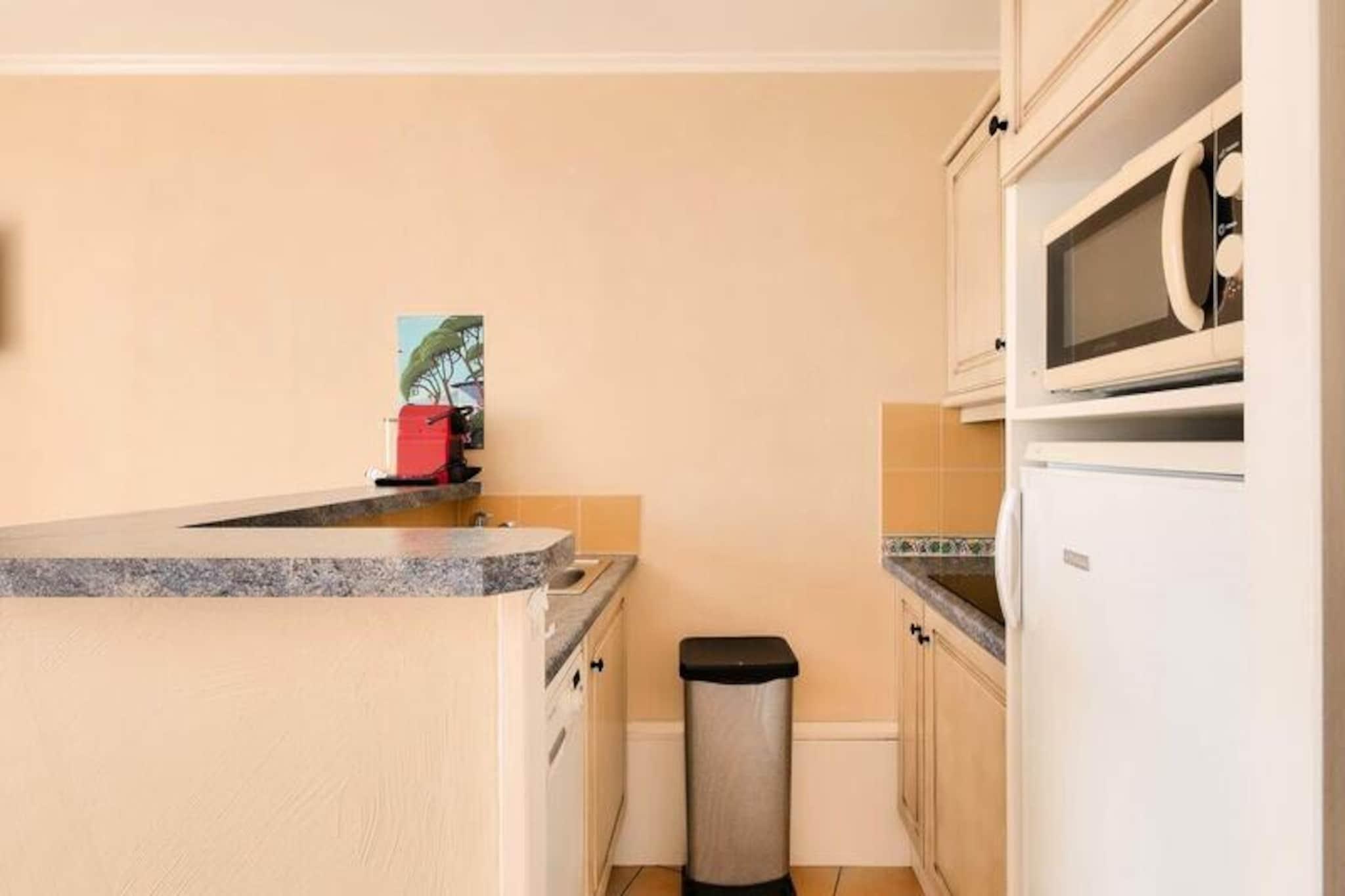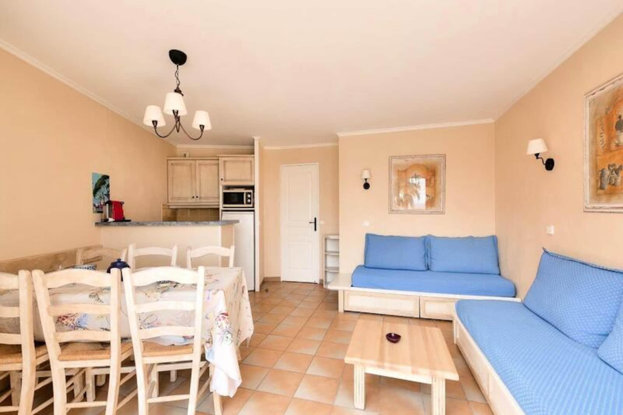 Denne sjarmerende leiligheten tilbyr et komfortabelt opphold for familier eller grupper, med ett soverom med dobbeltseng og ett rom med køyesenger. Stuen har en sovesofa og en uttrekkbar seng, perfekt for ekstra gjester. Kjæledyr er tillatt (mot en ekstra avgift), og sengetøy er inkludert. Leiligheten inkluderer også en dedikert parkeringsplass under tak og en sørvendt terrasse med fantastisk havutsikt. Sluttrengjøring og tilleggstjenester som håndklær eller et babysett er tilgjengelig mot et pristillegg. Denne eiendommen ligger kun 100 meter fra stranden, og tilbyr direkte tilgang til sjøen og ligger i sentrum av landsbyen, nær lokale kafeer, butikker og markeder. I nærheten kan du nyte en rekke aktiviteter som dykking, tennis, seiling og golf, noe som gjør det til et ideelt sted for både avslapning og eventyr. Thalasso-senteret ved naboboligen gir et snev av luksus for de som ønsker å slappe av. Leiligheten har et velutstyrt amerikansk kjøkken med spiseplass og seks stoler. Det er to bad, ett med dusj og det andre i god stand med moderne bekvemmeligheter. Eiendommen har også en terrasse hvor du kan nyte måltider eller slappe av utendørs mens du nyter den vakre havutsikten. Wi-Fi er tilgjengelig mot et pristillegg, og turister må betale den lokale turistskatten under oppholdet.