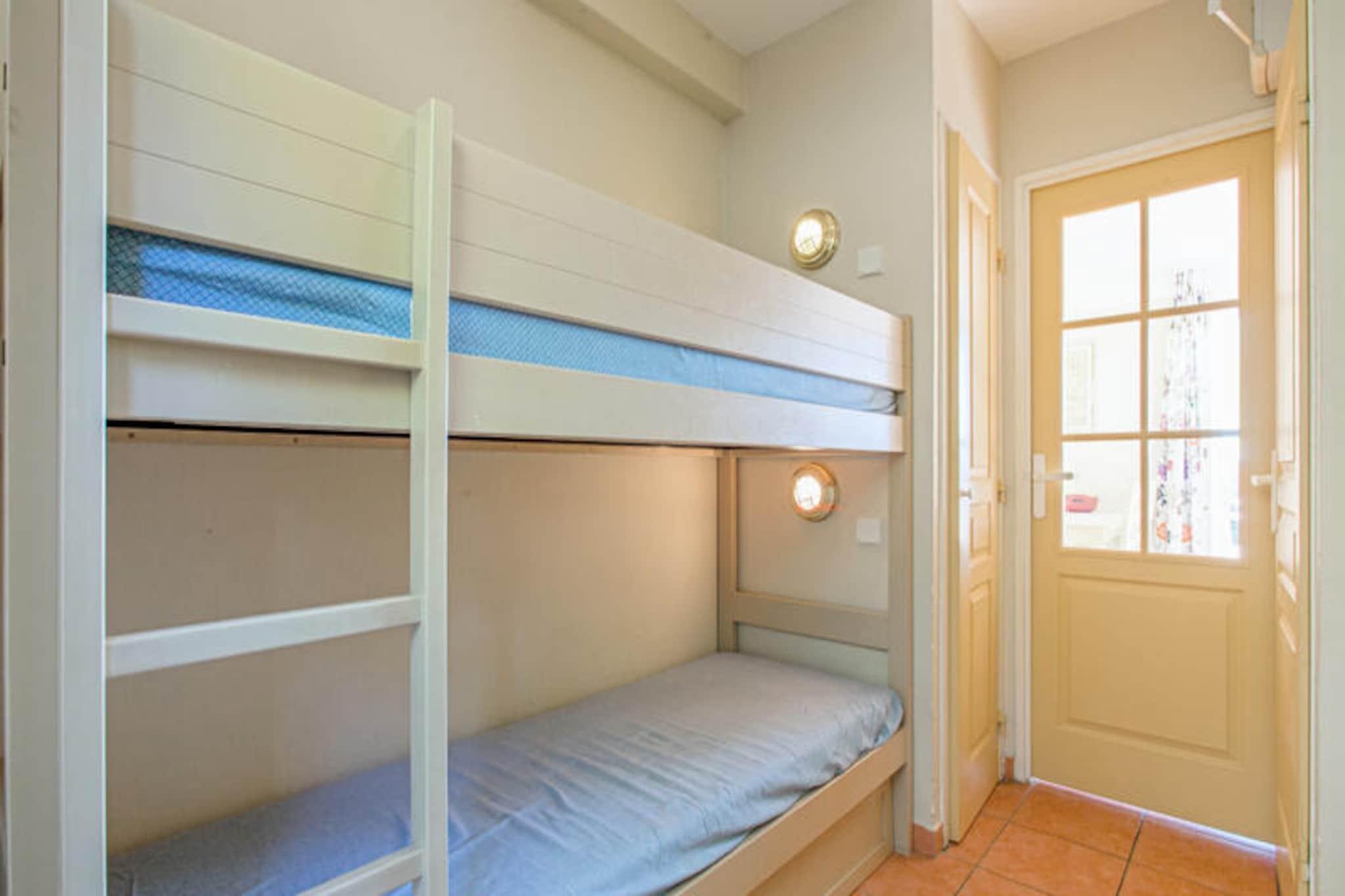 Denne leiligheten på 36 m² tilbyr fantastisk havutsikt og komfortabel innkvartering for opptil seks gjester i Les Issambres, Den franske riviera. Leiligheten har stue med to sovesofaer, hytteområde med køyesenger, kjøkken, soverom med dobbeltseng, to bad og separat toalett. En sørvendt balkong gir et sted å slappe av og nyte utsikten. Domaine des Issambres-residensen tilbyr gjestene gratis tilgang til et vakkert 330 m² stort svømmebasseng (åpent juni-september). Området er innen rekkevidde fra stranden (5 km) og andre populære feriesteder i Côte d'Azur som Sainte-Maxime (10 km). Denne maeva Home Confort-leiligheten gir deg det nødvendige for et komfortabelt opphold, men noen fasiliteter krever ekstra avgifter. Wi-Fi, sengetøy, håndklær og sluttrengjøring er alle ekstra kostnader. Kjæledyr kan tillates mot en ekstra avgift, men du bør spørre direkte med boligen. Gratis, utildekket parkering er tilgjengelig på stedet.
