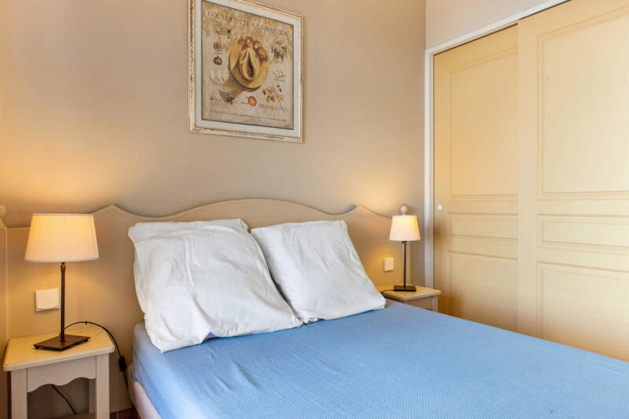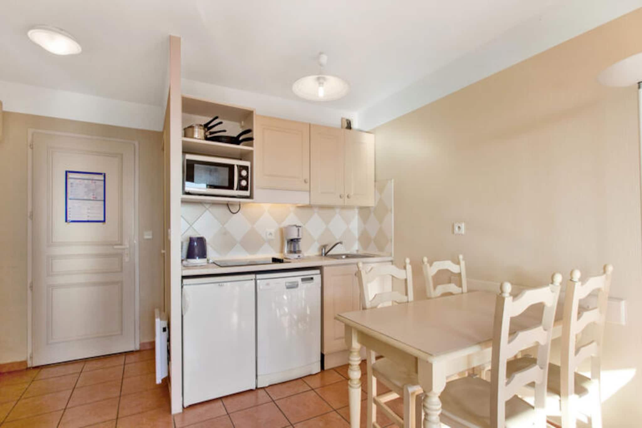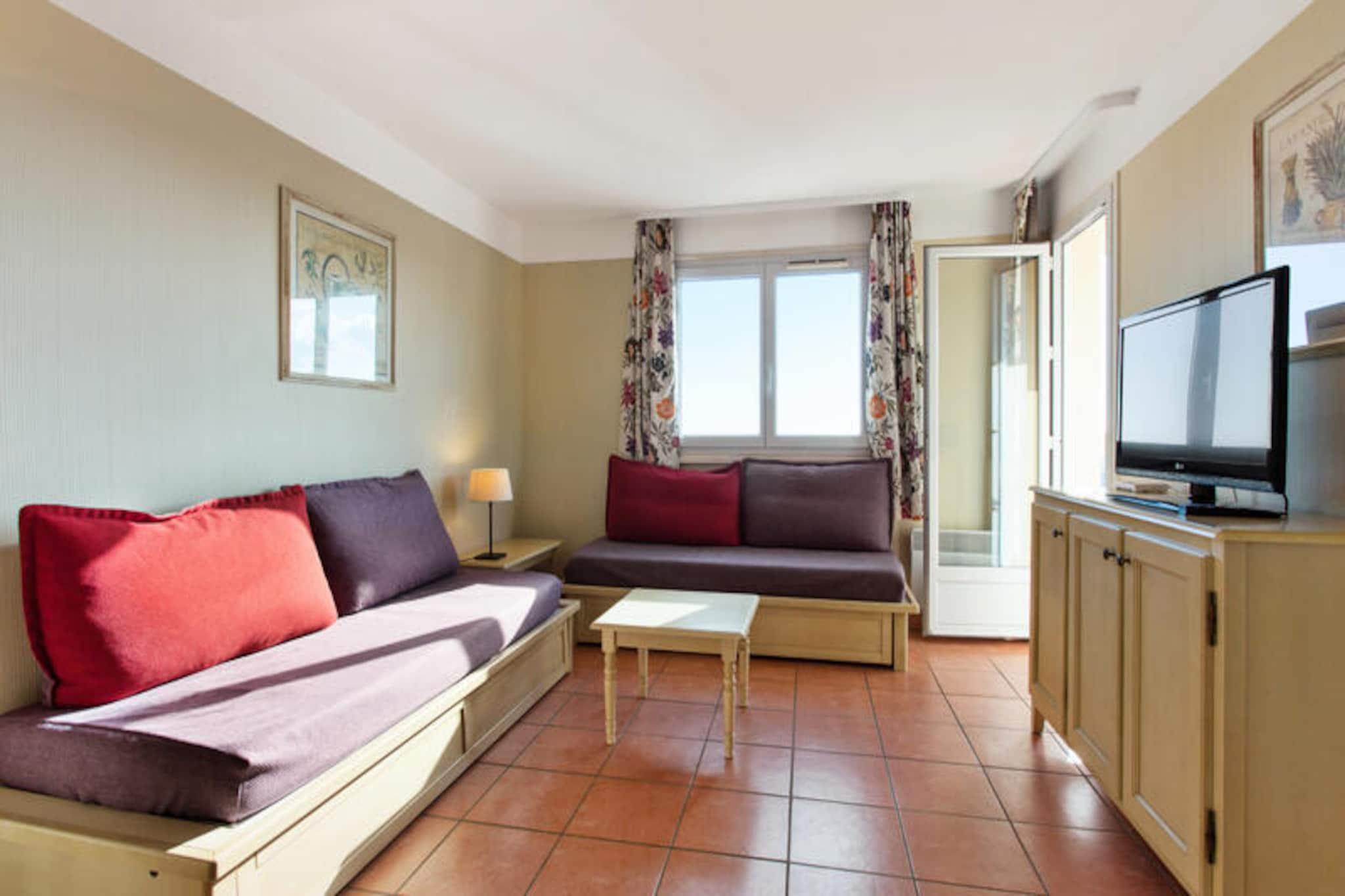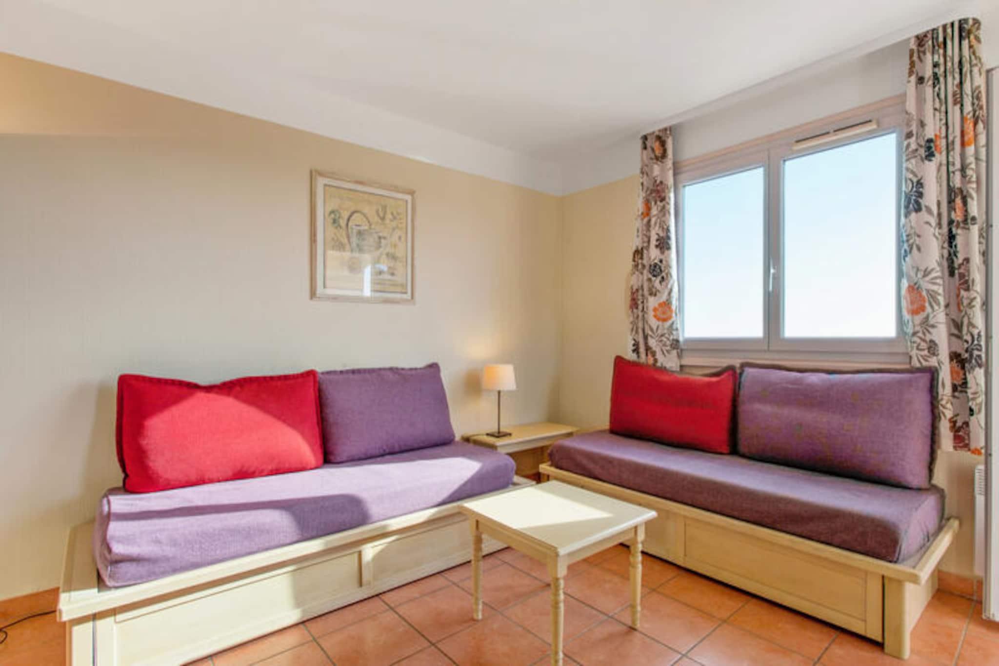 Denne komfortable leiligheten ligger i det fredelige Lauriers-distriktet Les Issambres, og tilbyr en flott base for ditt opphold i Sør-Frankrike. Leiligheten er ideell for familier, med en stue med to enkle sovesofaer og en uttrekkbar seng, samt et separat soverom med en dobbeltseng. Plassen er lys, rolig og ikke oversett, med en nydelig utsikt over Saint-Tropez-bukten. Kjæledyr er tillatt mot et pristillegg. Gjestene har også tilgang til et uovervåket svømmebasseng og plaskebasseng fra mai til september. Leiligheten har en perfekt beliggenhet for å utforske nærområdet. Bare 3 km unna finner du vakre strender som Plage de la Gaillarde, hvor du kan slappe av i solen, eller San Peïre-stranden, ideell for familier. For naturelskere tilbyr nærliggende turstier som Sentoral du Littoral fantastisk havutsikt, mens Massif des Maures tilbyr naturskjønne ruter gjennom skogkledde åser. Saint-Tropez-bukten og andre lokale attraksjoner er også lett tilgjengelige. Innvendig er leiligheten fullt utstyrt med kjøkken åpent mot stuen, bad med både badekar og dusj og separat toalett. Balkongen, med bord og stoler, gir et avslappende sted å nyte den vakre havutsikten. Ytterligere fasiliteter inkluderer valgfri Wi-Fi, parkering, sengetøy, håndklær og sluttrengjøring mot en ekstra kostnad.