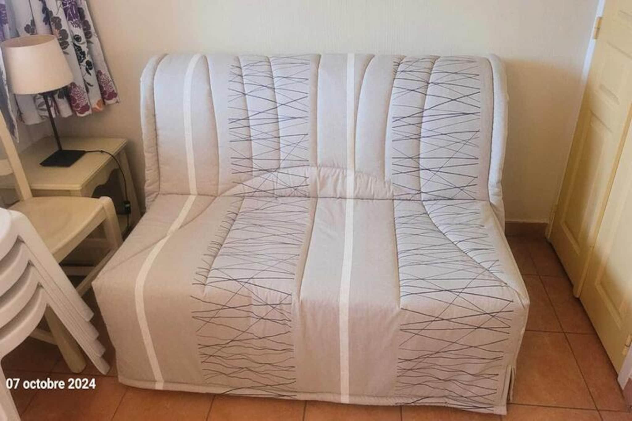 Denne leiligheten i første etasje i Les Issambres - Lauriers er ideell for familier. Det sover komfortabelt opptil fire gjester med en sovesofa i stuen og et hytteområde med to køyesenger. Eiendommen tillater kjæledyr, men avgifter påløper (bekreft direkte med boligen). Plassert i en vakker 20-hektar stor eiendom, tilbyr denne utleien en rolig flukt samtidig som den gir enkel tilgang til regionens attraksjoner. Residensen har et svømmebasseng og plaskebasseng (åpent fra mai til september) og ligger bare 3 km fra stranden. Nærliggende turstier fører gjennom Massif des Maures-fjellene, eller du kan slappe av på sandstranden Plage de la Gaillarde. Leiligheten har en stue med spiseplass, et kjøkken som er åpent mot stuen, et bad med badekar, et separat toalett og en terrasse med utsikt over hagen og sjøen. Wi-Fi, sengetøy, håndklær og sluttrengjøring er tilgjengelig mot et pristillegg. Gratis, utildekket parkering er tilgjengelig på stedet.