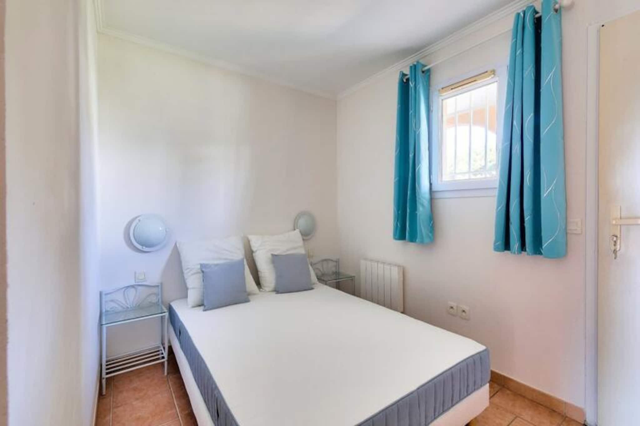 Denne ettromsleiligheten har en ideell beliggenhet i hjertet av Les Issambres, kun 100 meter fra stranden og butikkene. Residensen har et 300 kvm saltvannsbasseng (åpent april-oktober), et lekeområde for barn og Thalgo®-thalassoterapibehandlinger på stedet (ekstra kostnad). Kjæledyr er tillatt, men forhør med boligen for gebyrer. Selve leiligheten ligger i andre etasje og har en sørvendt terrasse med havutsikt. Den har en stue med en sovesofa med plass til to, et kjøkken med spisebord for fire, et soverom med en dobbeltseng, et bad med dusj og en privat parkeringsplass. Valgfrie tjenester inkluderer sengetøy, håndklær og sluttrengjøring. Leiligheten har ikke TV. Et depositum på EURO500 kreves.