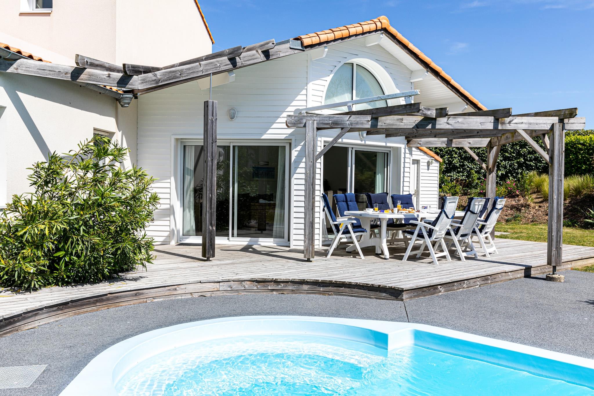 This 8-person Sophora villa with pool offers 110m2 of living space and has one floor. You will find 4 bedrooms for 8 people (the sleeping arrangement varies from villa to villa, it is possible that there is a bunk bed in one of the bedrooms), 1 bathroom with bath and/or shower, toilet, and a shower room with shower and toilet (on the second floor), a large living room with flat screen TV, sitting area with sofas, sitting area with dining table, a fully equipped kitchen with oven, refrigerator, dishwasher, hob, coffee maker, toaster. Each villa is equipped with a washing machine. Outside you can enjoy your private and partially fenced garden, with private pool (open from April 1 to September 30). Pool heating is an option at 22EURO per day from April 1 to June 30 and from August 27 to September 30. During the period from 01/07 to 26/08, the pool heating option is included in the rental price. Some villas are also equipped with a barbecue, so don't hesitate to ask about it when booking. Would you like to bring your pet? This is possible, but not in all villas due to limited availability. Please contact our customer service. In this corner of paradise, surrounded by greenery, you can relax with your family by the private pool, or choose from a wide range of activities - water sports and hiking to discover a lush and pristine nature.