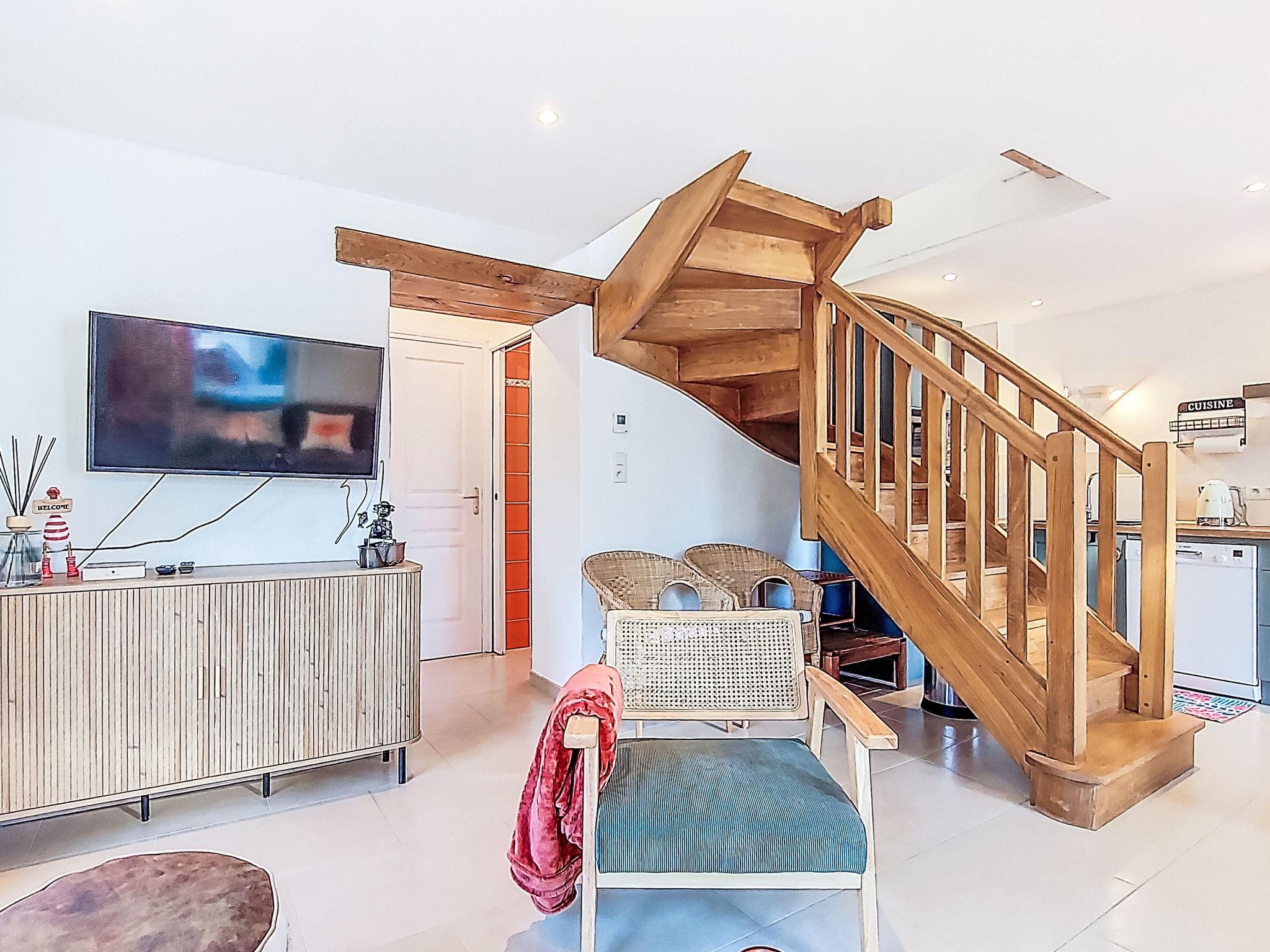 "Ty Côte", 3-room house 65 m2 on 2 levels. Bright, renovated in 2025, beautiful and tasteful furnishings: open living/dining room 25 m2 with TV (flat screen). Exit to the terrace. Large, open kitchen 15 m2 (oven, dishwasher, 3 induction hot plates, kettle, microwave, freezer, electric coffee machine, Capsules for coffee machine (Dolce Gusto) extra). Shower, sep. WC. Upper floor: 2 rooms 10 m2, with sloping ceilings, each room with 2 beds (80 cm, length 200 cm). Shower/WC. Electric heating. Large terrace 25 m2, south facing position. Terrace furniture, barbecue (portable), deck chairs (2). View of the sea. Facilities: washing machine, dryer, hair dryer. Internet (WiFi, free). Please note: non-smoking house. Maximum 1 small pet/ dog allowed. Smoke alarm. Offer by a private individual according to Art. 155, IV of CGI.