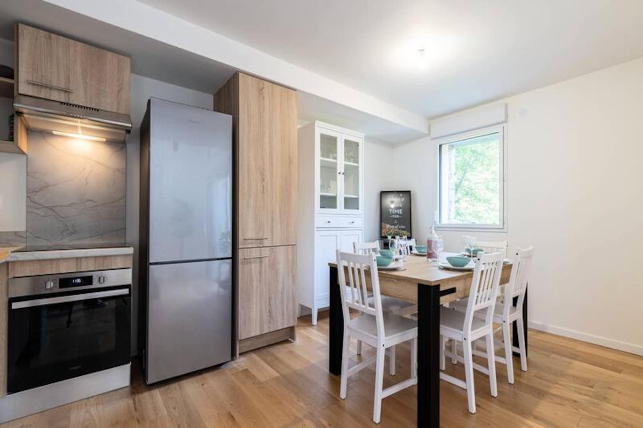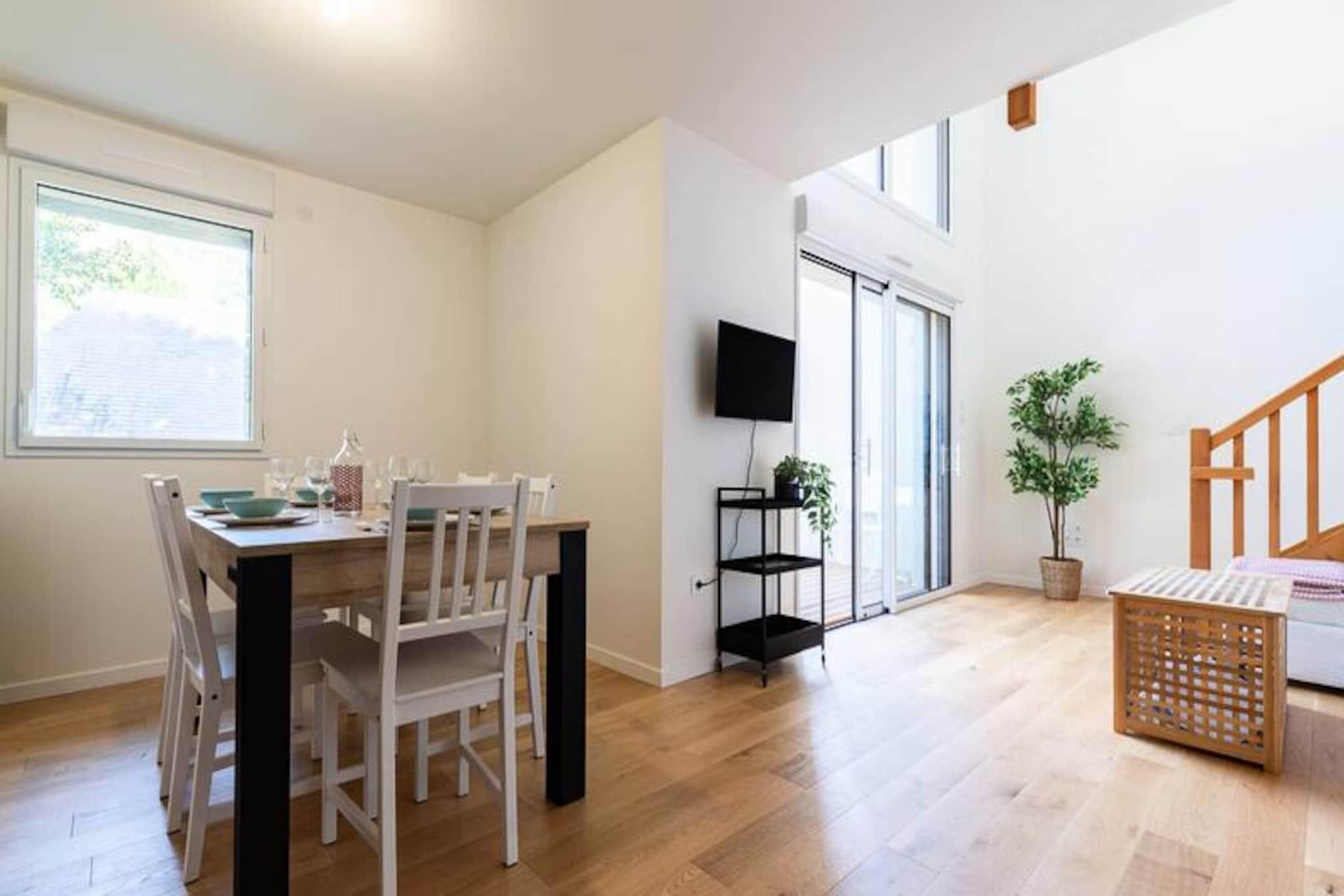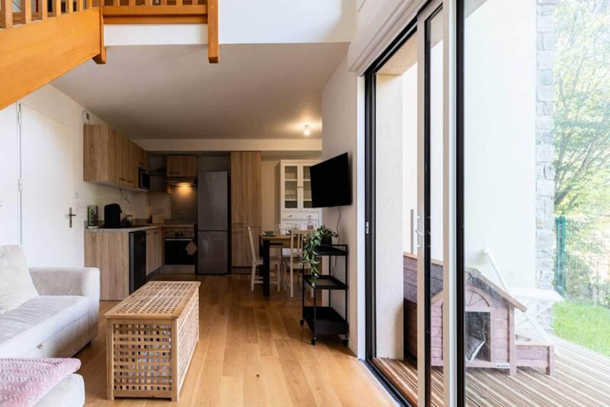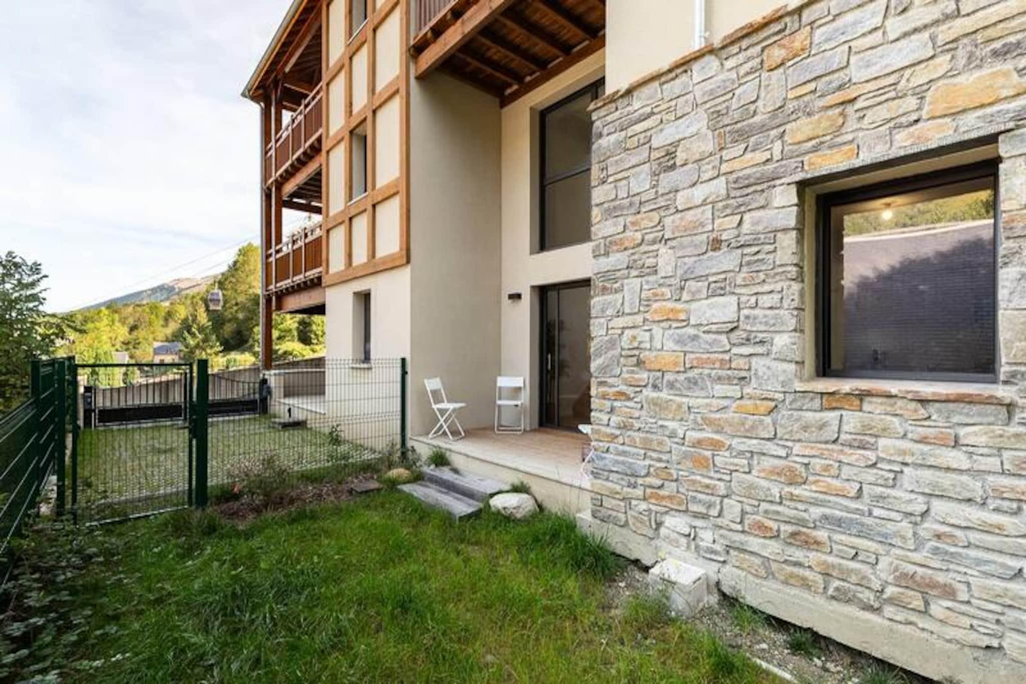 I den pittoreske landsbyen Loudenvielle, der Pyreneene omfavner det rolige vannet i Génossjøen, tilbyr denne sjarmerende dupleksen et perfekt tilfluktssted for opptil åtte gjester. Bare en kort to-minutters spasertur fra SkyVall-taubanen, har du enkel tilgang til skistedet Peyragudes, noe som gjør det til et ideelt utgangspunkt for både vintersportsentusiaster og sommereventyrere. Se for deg morgener fylt med frisk fjelluft og kvelder tilbrakt med å slappe av på den private terrassen eller hagen, omgitt av den rolige skjønnheten i de franske Pyreneene. \n\nDupleksen er designet med komfort og praktisk bruk i tankene, og har to koselige soverom: ett med dobbeltseng og et annet med fire køyesenger, perfekt for familier eller grupper. Det åpne kjøkkenet og stuen skaper et innbydende rom for delte måltider og avslapning, med to ekstra sovesofaer som gir fleksible soveplasser. Moderne fasiliteter som sikker sykkeloppbevaring, et skiskap og privat parkering sikrer et problemfritt opphold, mens tilleggsutstyr som utleie av sengetøy og håndklær øker bekvemmeligheten. \n\nGå ut og oppdag sjarmen til Loudenvielle, med lokale butikker, innbydende spafasiliteter og den glitrende innsjøen bare noen få minutter unna. Enten du utforsker naturskjønne turstier, sykler gjennom fjellpass eller unner deg regionens kulinariske herligheter, tilbyr dette stedet noe for enhver reisende. \n\nVelg Les Granges de Marie for din neste ferie og opplev den perfekte blandingen av eventyr og avslapning i hjertet av Pyreneene.