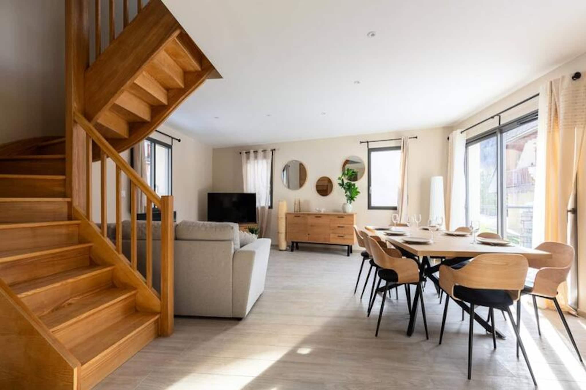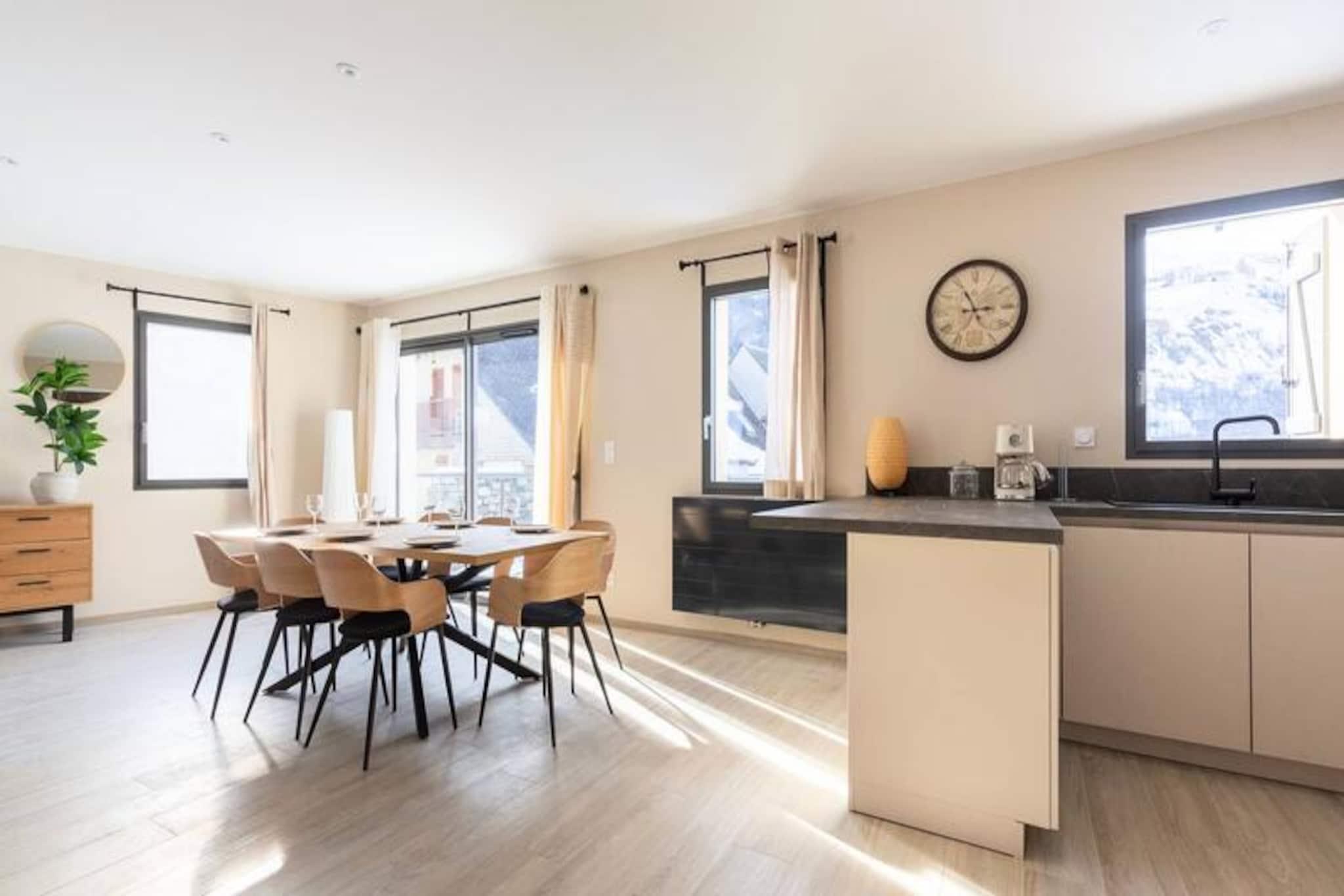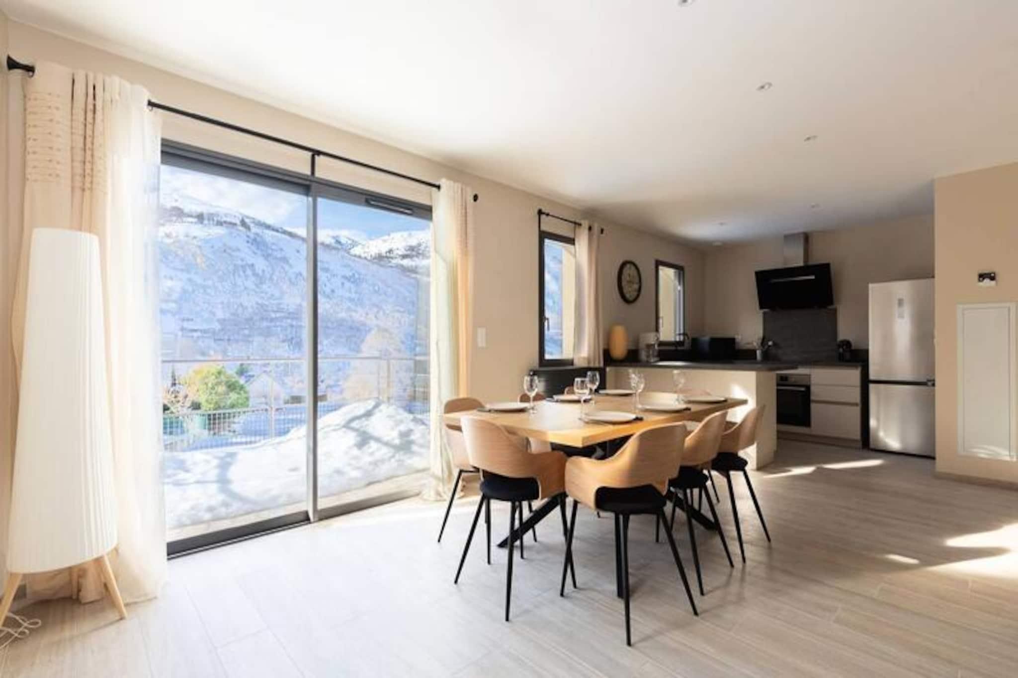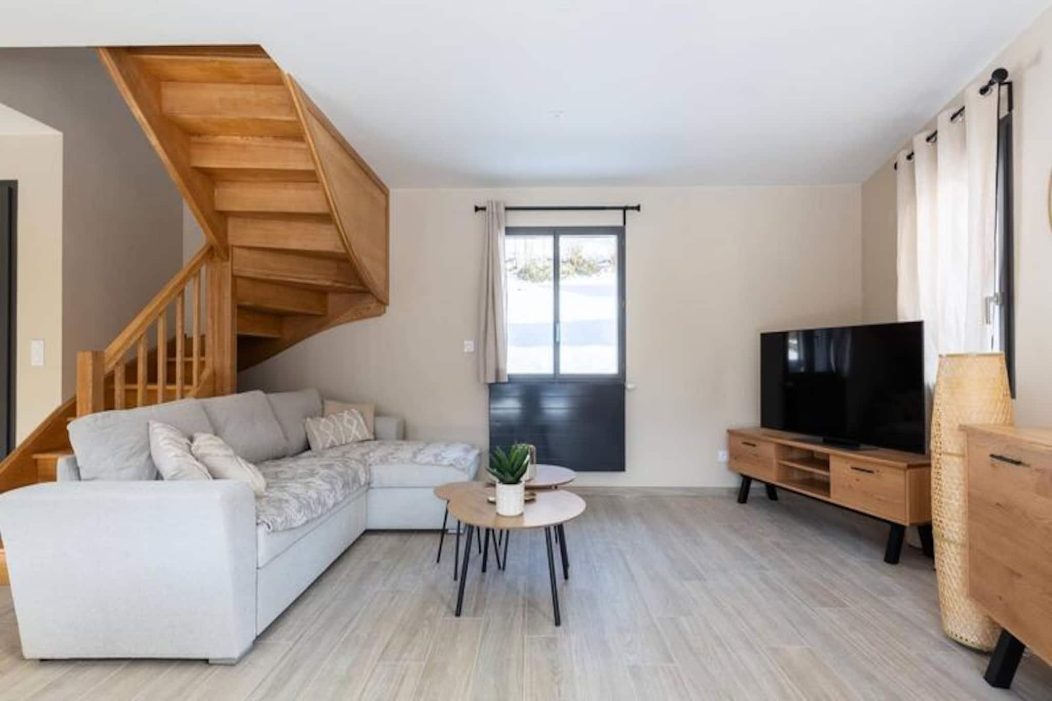 Midt i Pyreneenes fredelige skjønnhet tilbyr dette sjarmerende huset nær sentrum av Loudenvielle en rolig tilflukt for opptil syv gjester. De fredelige omgivelsene innbyr til avslapning, mens den nærliggende skyttelbussen til Skyvall, bare 100 meter unna, sikrer enkel tilgang til bakkene og eventyrene i regionen. Enten du utforsker den pittoreske innsjøen Balnéa, bare fem minutters gange unna, eller unner deg de forfriskende termalbadene, er denne beliggenheten perfekt for å slappe av og gjenopprette kontakten med naturen. Innvendig har huset et moderne og innbydende design, med et fullt utstyrt kjøkken som åpner ut mot en koselig stue og terrasse. To soverom har komfortable senger på 140 cm, mens et tredje tilbyr fleksible soveplasser med uttrekkssenger for tre. Et elegant dusjrom gir ekstra bekvemmelighet, og vaskerommet med vaskemaskin sikrer praktisk plass for lengre opphold. Syklister vil sette pris på den dedikerte sykkelboden under terrassen, mens den private parkeringsplassen gjør besøket ditt enklere. Wi-Fi er inkludert, noe som gjør det enkelt å holde seg tilkoblet under ferien. Loudenvielle er en perle i Pyreneene, og tilbyr en blanding av friluftsliv og avslapning. Fra turstier og sykkelruter til det beroligende vannet i Balnéa, er regionen et paradis for naturelskere. Den nærliggende skyttelbussen gjør det enkelt å komme seg til Skyvall og utforske skibakkene om vinteren eller det frodige landskapet om sommeren. Lokale restauranter og butikker gir en smak av autentisk fransk fjelliv, noe som bidrar til sjarmen til oppholdet ditt. Enten du søker en aktiv ferie eller et fredelig tilfluktssted, kombinerer dette huset komfort, bekvemmelighet og en førsteklasses beliggenhet for å skape uforglemmelige minner i hjertet av Pyreneene.