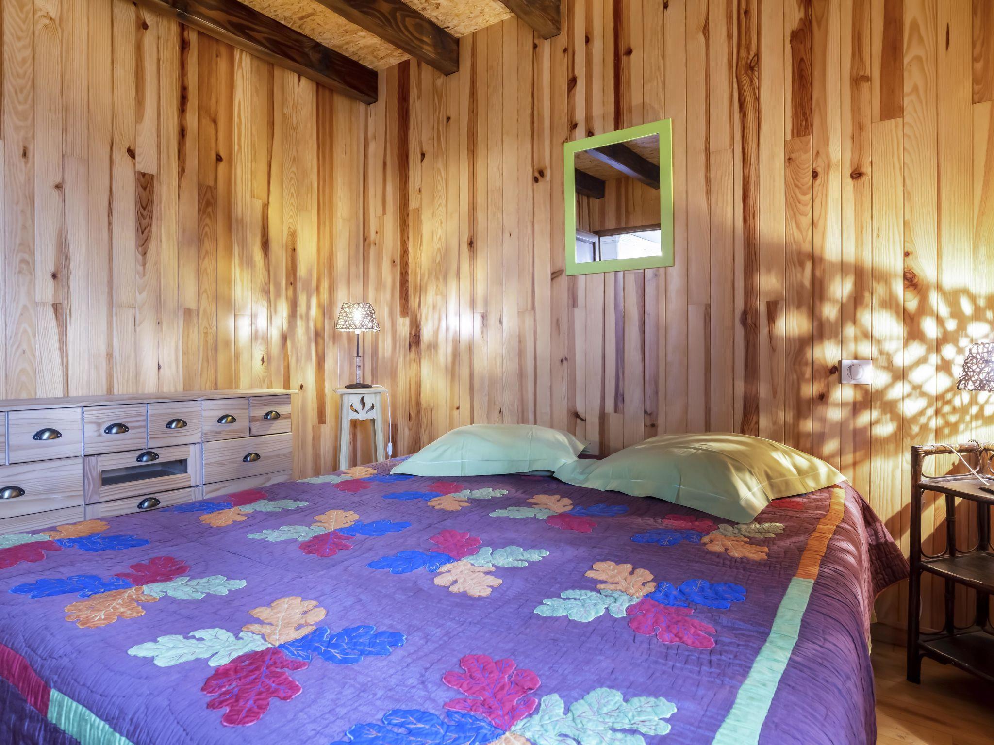 "L'Aubépine", 3-room chalet 57 m2. Bright, practical furnishings: living/dining room with dining table and TV (flat screen), wood-burning stove. Exit to the terrace. 1 room with 1 bed (90 cm, length 190 cm), 1 french bed (140 cm, length 190 cm). 1 room with 1 french bed (160 cm, length 200 cm). Open kitchen (1 hot plate, oven, dishwasher, 3 gas rings, toaster, kettle, microwave, freezer, electric coffee machine, Capsules for coffee machine (Senséo) extra). Shower, sep. WC. Electric heating, air-conditioning. Large terrace 20 m2, roofed. Terrace furniture, barbecue (portable), deck chairs. Beautiful view of the countryside and the forest. Facilities: washing machine, iron, children's high chair, baby cot (extra), logs (free). Internet (WiFi, free). Please note: non-smoking house. Maximum 2 pets/ dogs allowed. Smoke alarm.