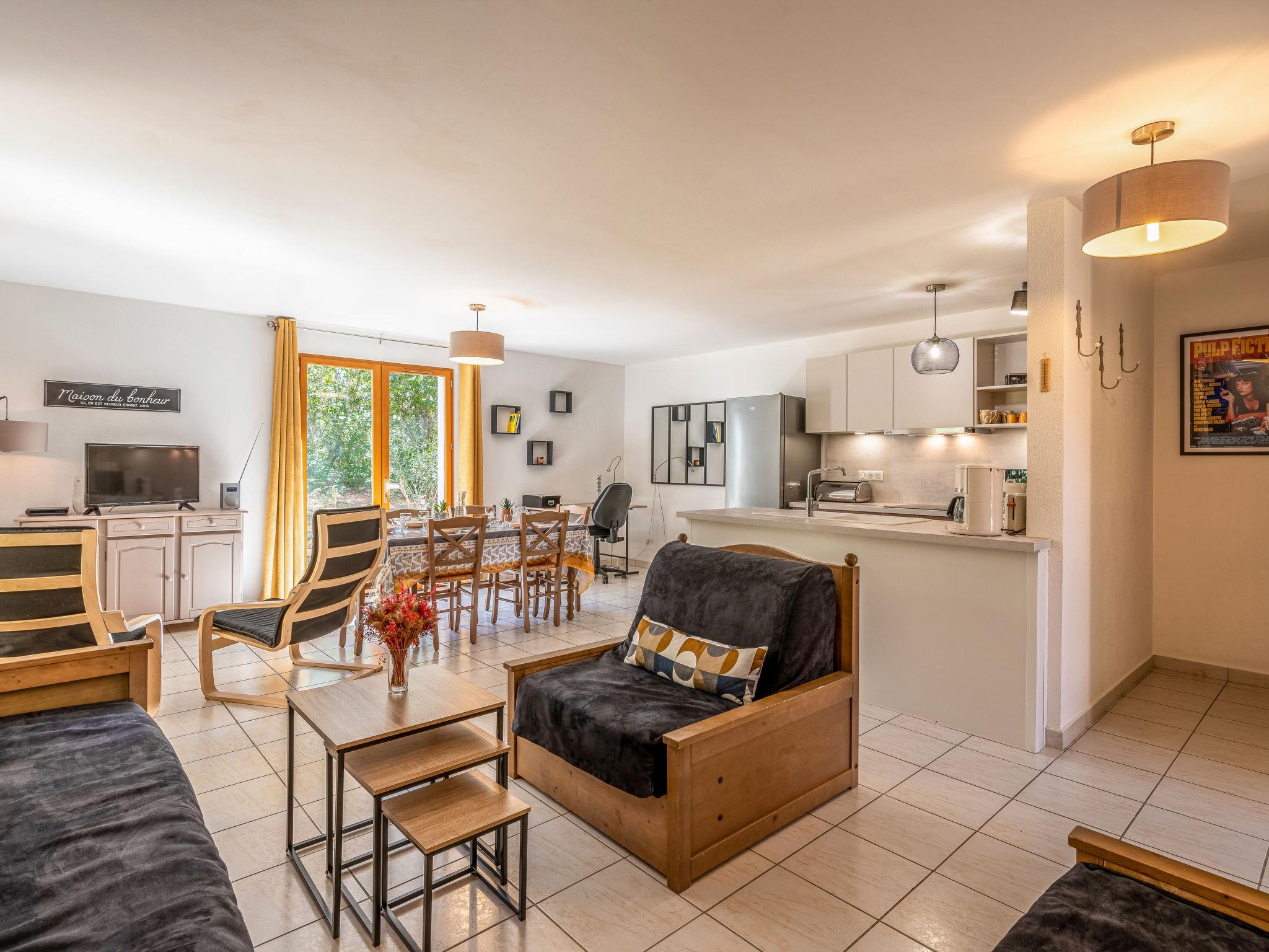 "Chez Béatrice et Pascal", 3-room terraced house 69 m2, on the ground floor. Comfortable and modern furnishings: living/dining room with 1 double sofabed (2 x 80 cm, length 190 cm), dining table and TV (flat screen). Exit to the garden, to the terrace. 1 room with 1 double bed (140 cm, length 190 cm), TV (flat screen). 1 room with 2 beds (90 cm, length 190 cm). Open kitchen (oven, dishwasher, 4 induction hot plates, toaster, kettle, microwave, electric coffee machine, Capsules for coffee machine (Nespresso) extra). Shower, sep. WC. Heating, air-conditioning. Terrace 11 m2. Terrace furniture, barbecue, deck chairs (4). Facilities: washing machine, dryer, hair dryer. Internet (WiFi). Parking at the house. Please note: smoke alarm. Offer by a private individual according to Art. 155, IV of CGI.