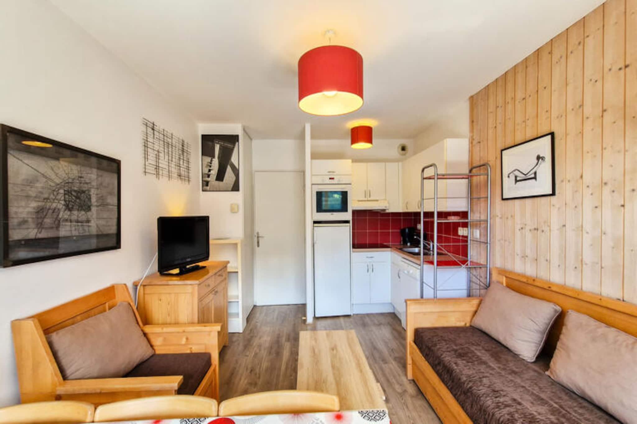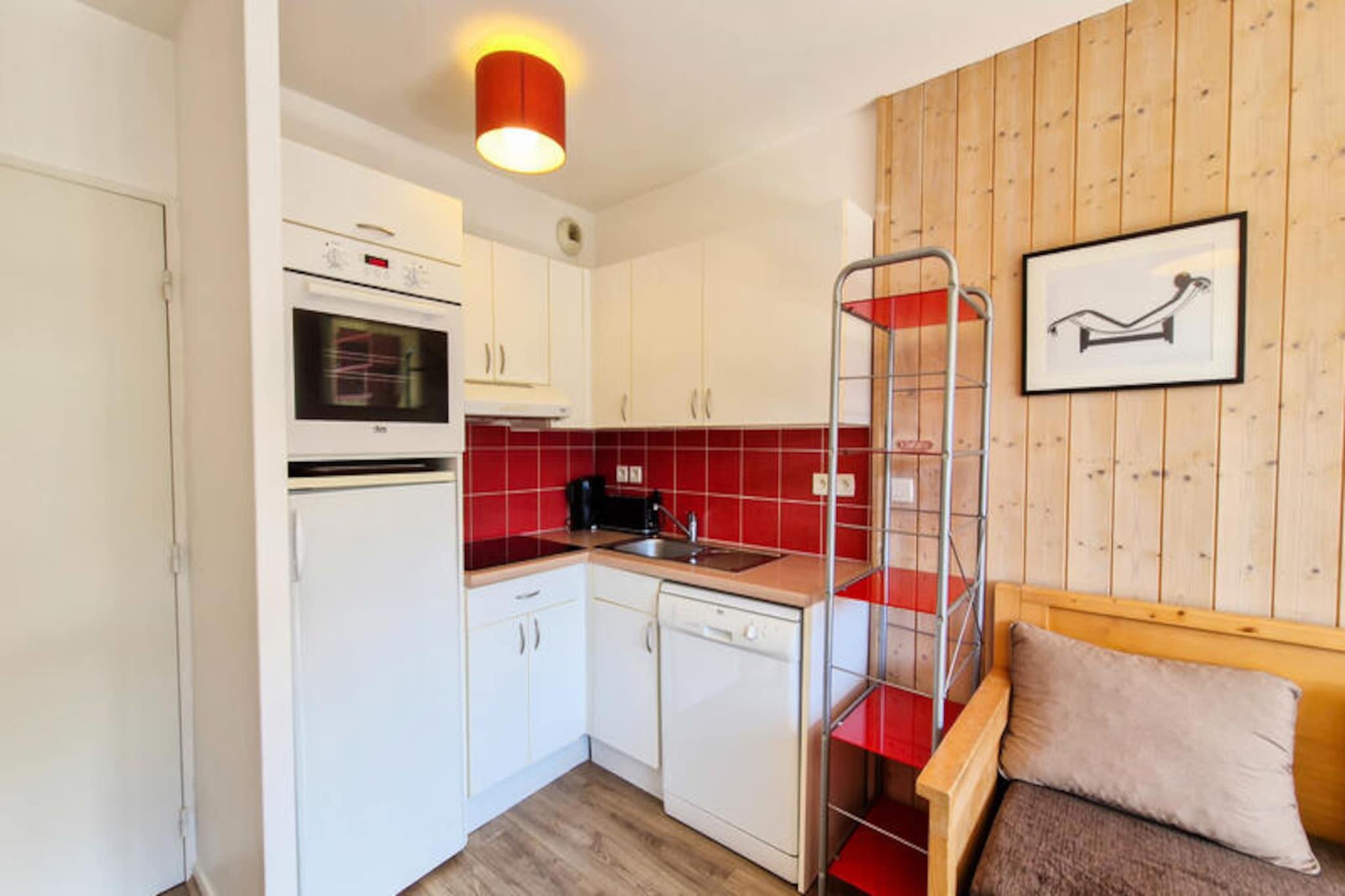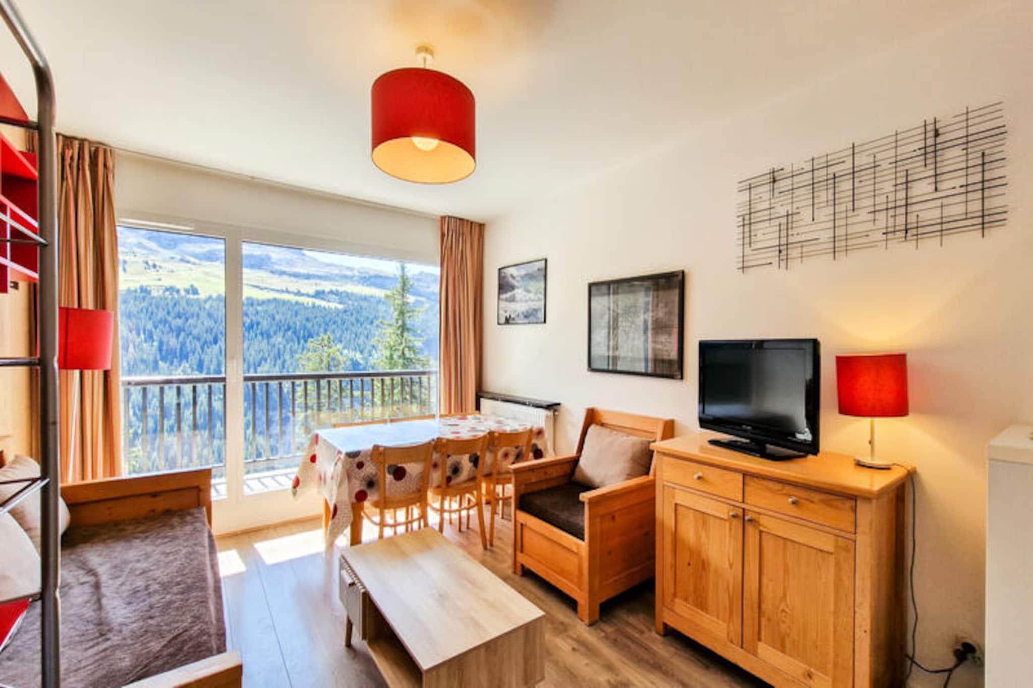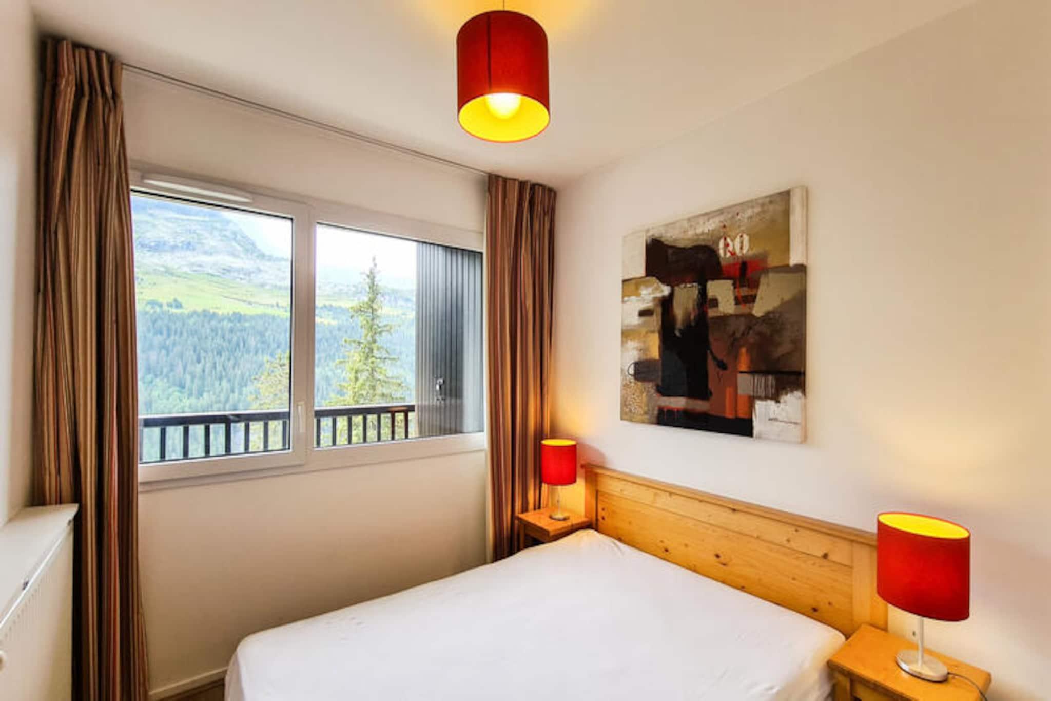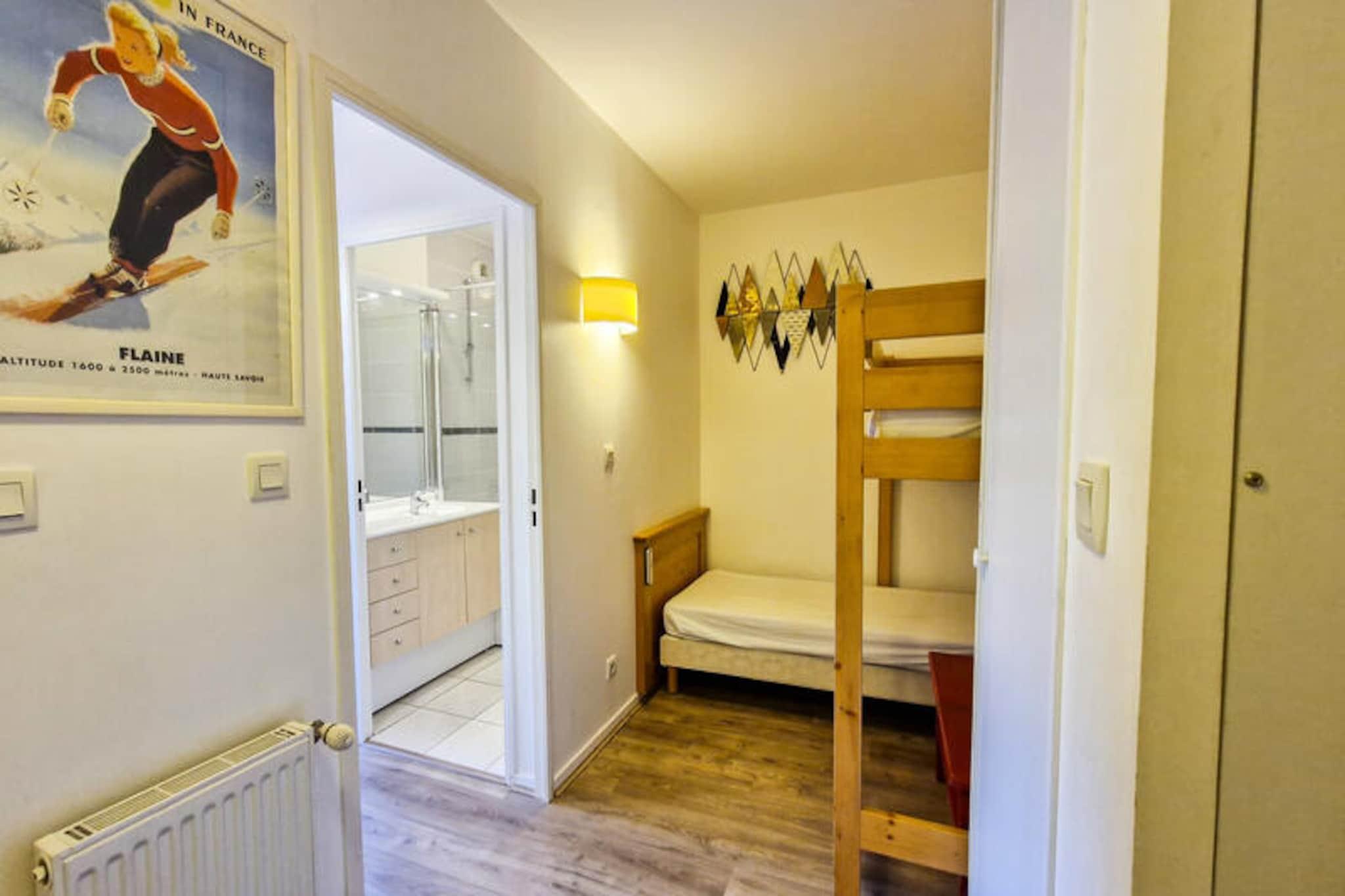 I den rolige alpelandsbyen Flaine Forêt tilbyr denne sjarmerende residensen en perfekt blanding av komfort og bekvemmelighet for din fjellferie. Bare 500 meter fra bakkene og skiheisene, og bare 150 meter fra kjøpesenteret, har den en ideell beliggenhet for både eventyr og avslapning. En gratis skibuss stopper rett utenfor, noe som gjør det enkelt å utforske området. Enten du er her for vintersport eller sommeraktiviteter, er denne leiligheten din inngangsport til det fantastiske landskapet i de franske Alpene. Denne koselige 2-roms leiligheten, designet for å innkvartere opptil seks gjester, har en sørvendt hytte og en balkong i første etasje som inviterer deg til å nyte solskinnet og fjellutsikten. Stuen har en sovesofa for enkeltpersoner med en uttrekksseng, mens soverommet har en komfortabel dobbeltseng. Hytta, utstyrt med køyesenger, er perfekt for eldre barn eller venner. Det åpne kjøkkenet er fullt utstyrt med moderne hvitevarer, inkludert induksjonstopp, kjøleskap, multifunksjonsovn og oppvaskmaskin, noe som gjør matlaging til en lek. Ytterligere fasiliteter inkluderer flatskjerm-TV med kabelkanaler, bad med badekar, separat dusjrom og skiskap for din bekvemmelighet. Utover leiligheten tilbyr Flaine Forêt et vell av aktiviteter for å berike oppholdet ditt. Om vinteren er bakkene bare en kort spasertur eller busstur unna, mens sommeren gir den ekstra bonusen Flaine Summer Pass, som gir tilgang til en rekke utendørseventyr. Det nærliggende kjøpesenteret sikrer at du har alt du trenger, fra dagligvarer til spisesteder. For de som reiser med bil, er overbygde parkeringsplasser tilgjengelige ved reservasjon. Enten du søker spennende skidager, rolige fotturer eller bare et koselig tilfluktssted i fjellet, er denne residensen den perfekte basen for uforglemmelige minner i hjertet av de franske Alpene.