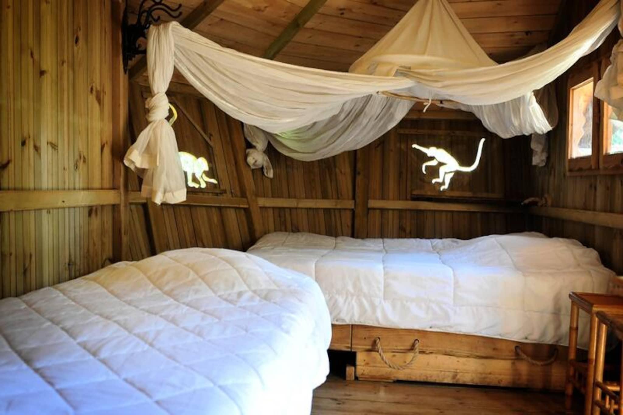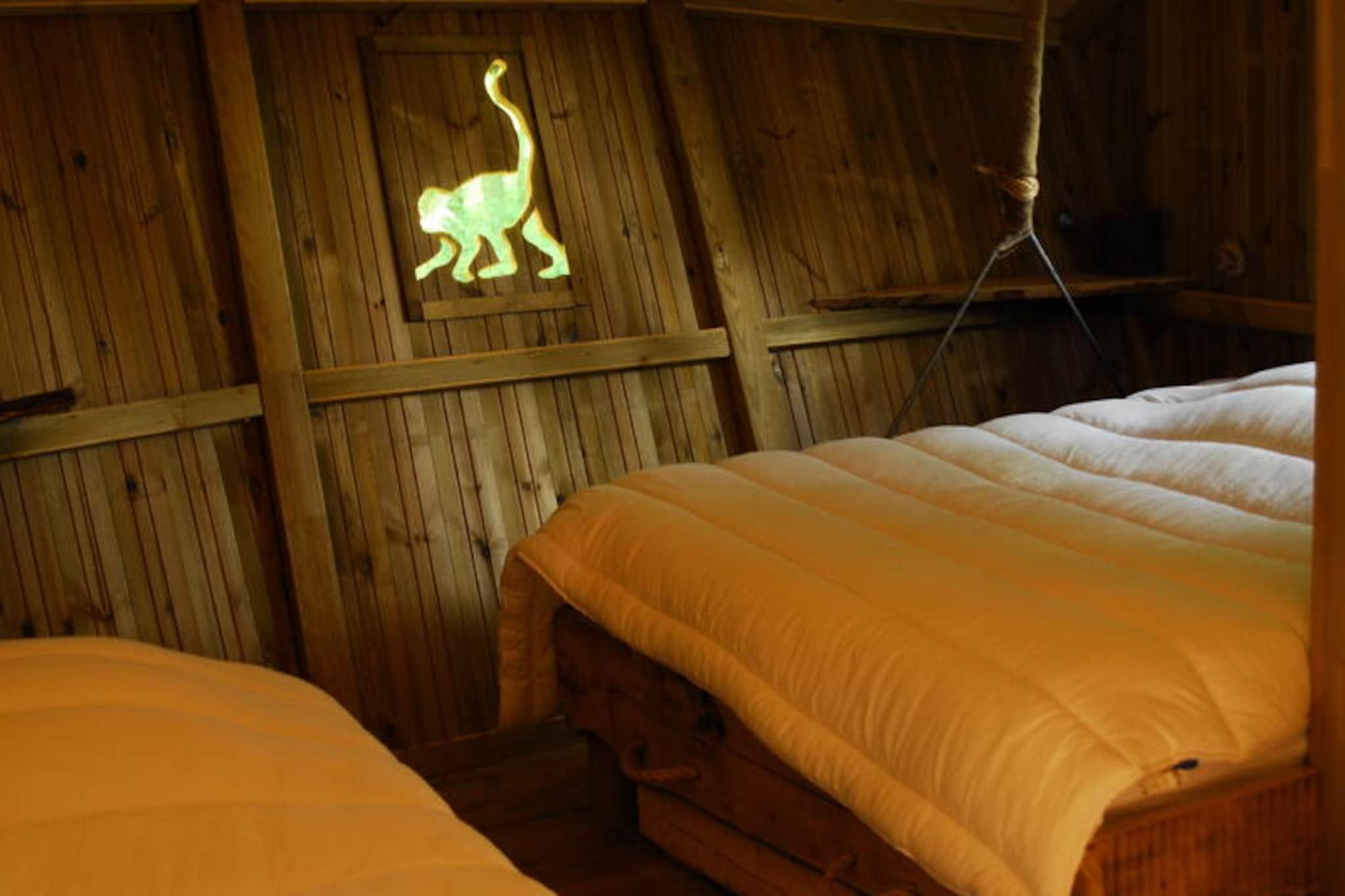 Parc de la Belle ligger i en 12 hektar stor hage, og samler uvanlig overnatting for å lade batteriene i Vienne. Med familie, venner eller en romantisk ferie er Parc de la Belle det ideelle stedet å koble av og ta en pause omgitt av natur. På stedet gleder minigården med geiter og sauer barn og er en av de morsomme aktivitetene som parken tilbyr. Hvis du foretrekker eventyr, vil du like puslespillet som tar deg med på et mystisk oppdrag gjennom flere universer. Barna kan også tilbringe tid på lekeplassen: sklier, akrobatikkkurs osv. Enten du velger å sove i trærne eller i en komfortabel hytte, vil ditt opphold på Parc de la Belle gi deg en opplevelse av ro i hjertet av naturen! Vennligst merk: hyttene har felles bad. De har verken vann eller strøm. Administrasjonsgebyr på EURO25 betales på stedet. Ouistitis familiehytter 6 personer, 2 uavhengige hytter forbundet med felles terrasse: Begge hyttene har samme antall senger: 1 dobbeltseng + 1 enkeltseng Tørre toaletter Terrasse Vennligst merk: hytta har ikke bad. Babysett - seng + barnestol: tilgjengelig for utlån ved bestilling Sengetøy - inkludert Sluttrengjøring - ekstra - se pris på stedet Frokost - bestilles før oppholdet: EURO11,90/voksen og EURO7,90/barn Turistskatt (ekstra kostnad) - betales på stedet, i henhold til gjeldende pris