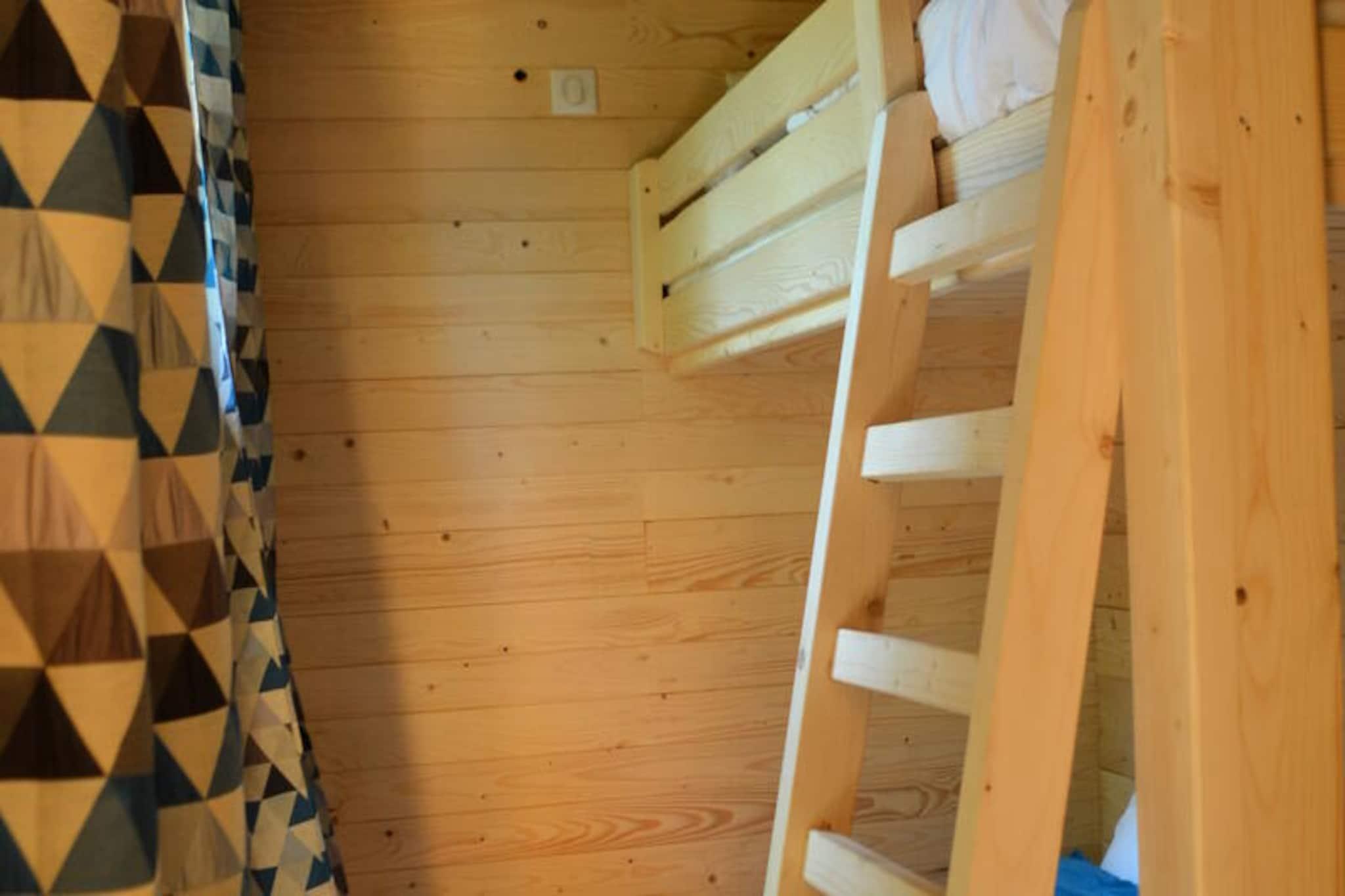 Parc de la Belle ligger i en 12 hektar stor hage, og samler uvanlig overnatting for å lade batteriene i Vienne. Med familie, venner eller en romantisk ferie er Parc de la Belle det ideelle stedet å koble av og ta en pause omgitt av natur. På stedet gleder minigården med geiter og sauer barn og er en av de morsomme aktivitetene som parken tilbyr. Hvis du foretrekker eventyr, vil du like puslespillet som tar deg med på et mystisk oppdrag gjennom flere universer. Barna kan også tilbringe tid på lekeplassen: sklier, akrobatikkkurs osv. Enten du velger å sove i trærne eller i en komfortabel hytte, vil ditt opphold på Parc de la Belle gi deg en opplevelse av ro i hjertet av naturen! Vennligst merk: hyttene har felles bad. De har verken vann eller strøm. Administrasjonsgebyr på EURO25 betales på stedet. Stue med dobbel sovesofa Kjøkkenkrok Soverom med dobbeltseng Soverom med 2 enkeltsenger (1 høy) Dusjrom, WC Terrasse Babysett - seng + barnestol: tilgjengelig for utlån ved bestilling Sengetøy - inkludert Sluttrengjøring - ekstra - se pris på stedet Frokost - bestilles før oppholdet: EURO11,90/voksen og EURO7,90/barn Turistskatt (ekstra kostnad) - betales på stedet, i henhold til gjeldende pris
