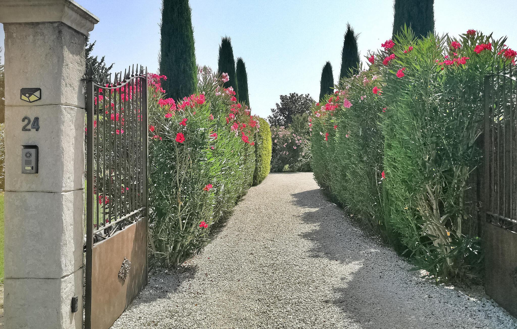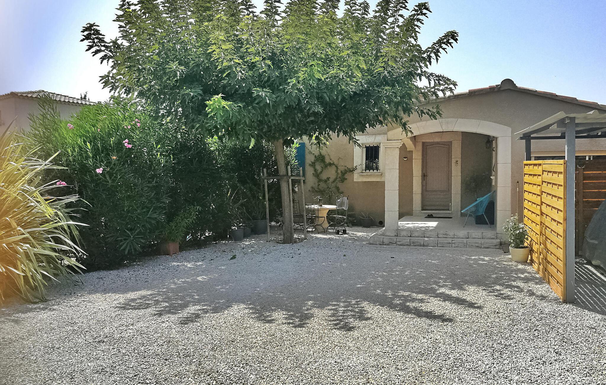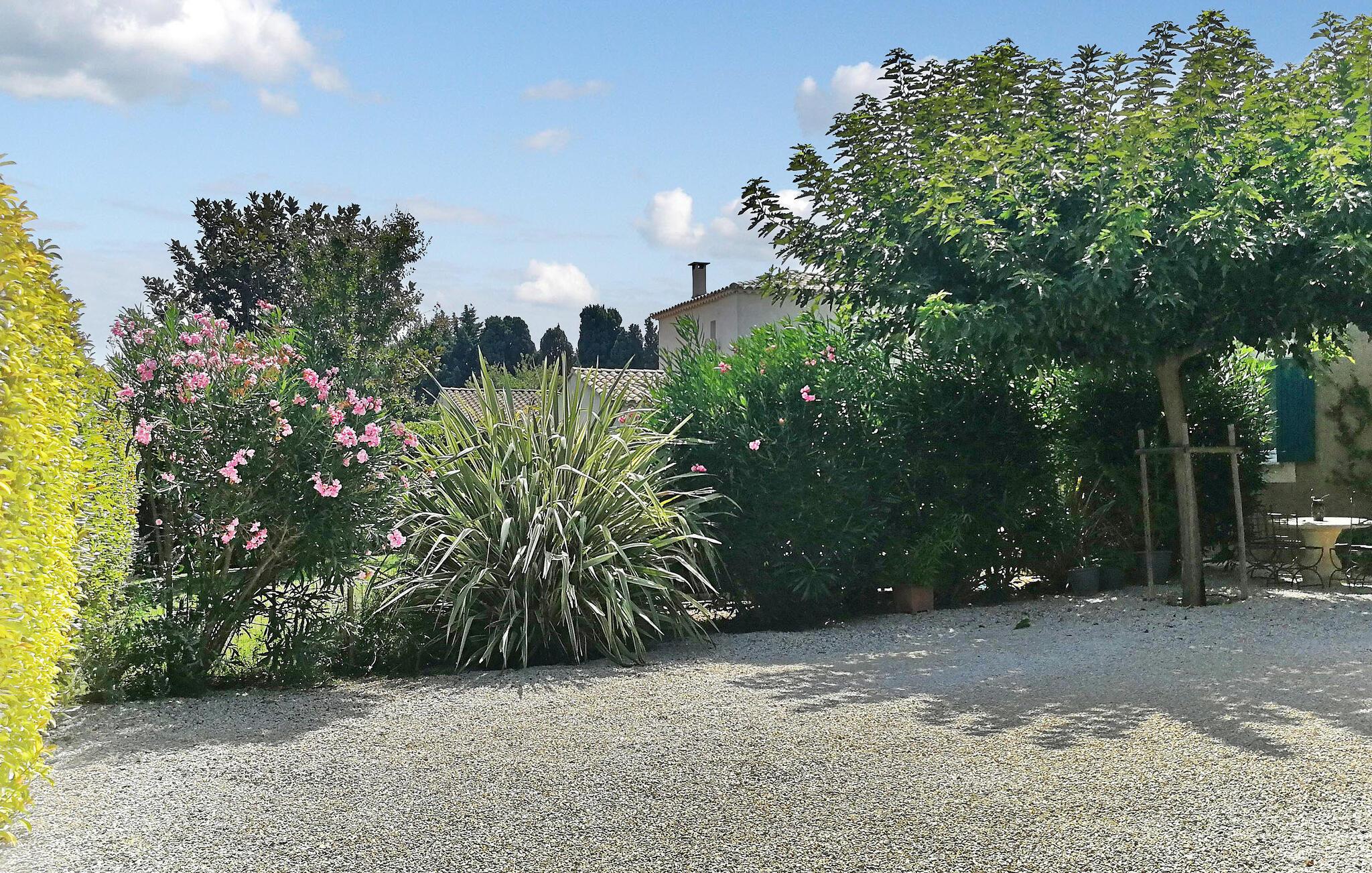 Flykt til denne herlige ferievillaen i hjertet av den pittoreske landsbyen Maillane i Provence. Dette sjarmerende tilfluktsstedet tilbyr en herlig opplevelse bare noen minutter fra sentrum av landsbyen. Den vakre, moderne eiendommen tilbyr komfortabel innkvartering på ett plan. Den klimatiserte stuen har en sømløs forbindelse til en vakker, skyggefull terrasse med vinranker og er det perfekte stedet for utendørshygge. Hovedsuiten er et luksuriøst fristed med sittegruppe, eget dusjrom og klimaanlegg. Ytterligere to soverom er koselige og deler et romslig familiebad. Gå ut i det private bassenget på 8 x 4 meter, som du kommer til via en undervannstrapp. Bassenget er 1,40 m dypt og innbyr til en forfriskende dukkert, omgitt av seks innbydende solsenger. Bak villaen finner du en innhegning med to søte høner som lover deg ferske egg til frokosten! Hund er velkommen med tillatelse på forhånd. Villaen ligger i et boligområde i utkanten av en søvnig landsby, omgitt av natur. Til fots er det i underkant av 1 km til sentrum av landsbyen, hvor du finner flere kafeer, restauranter og et postkontor på torget. Landsbyen Maillane var hjemmet til den berømte provençalske poeten Frédéric Mistral. Du kan besøke huset hans, som har blitt restaurert og omgjort til et museum dedikert til ham. Fordyp deg i roen på dette idylliske feriestedet, der stuen og foreldresuiten er nøye klimatisert for å sikre deg komfort til alle årstider.
