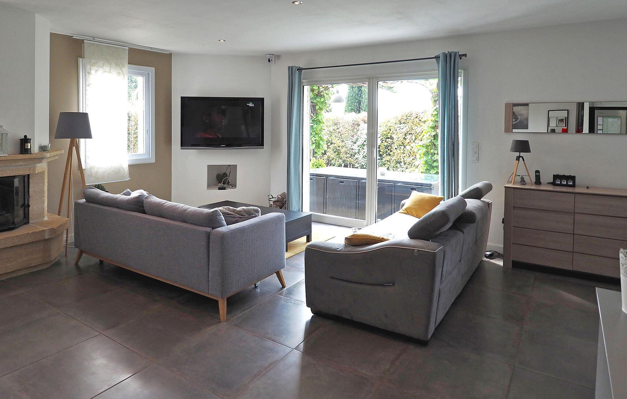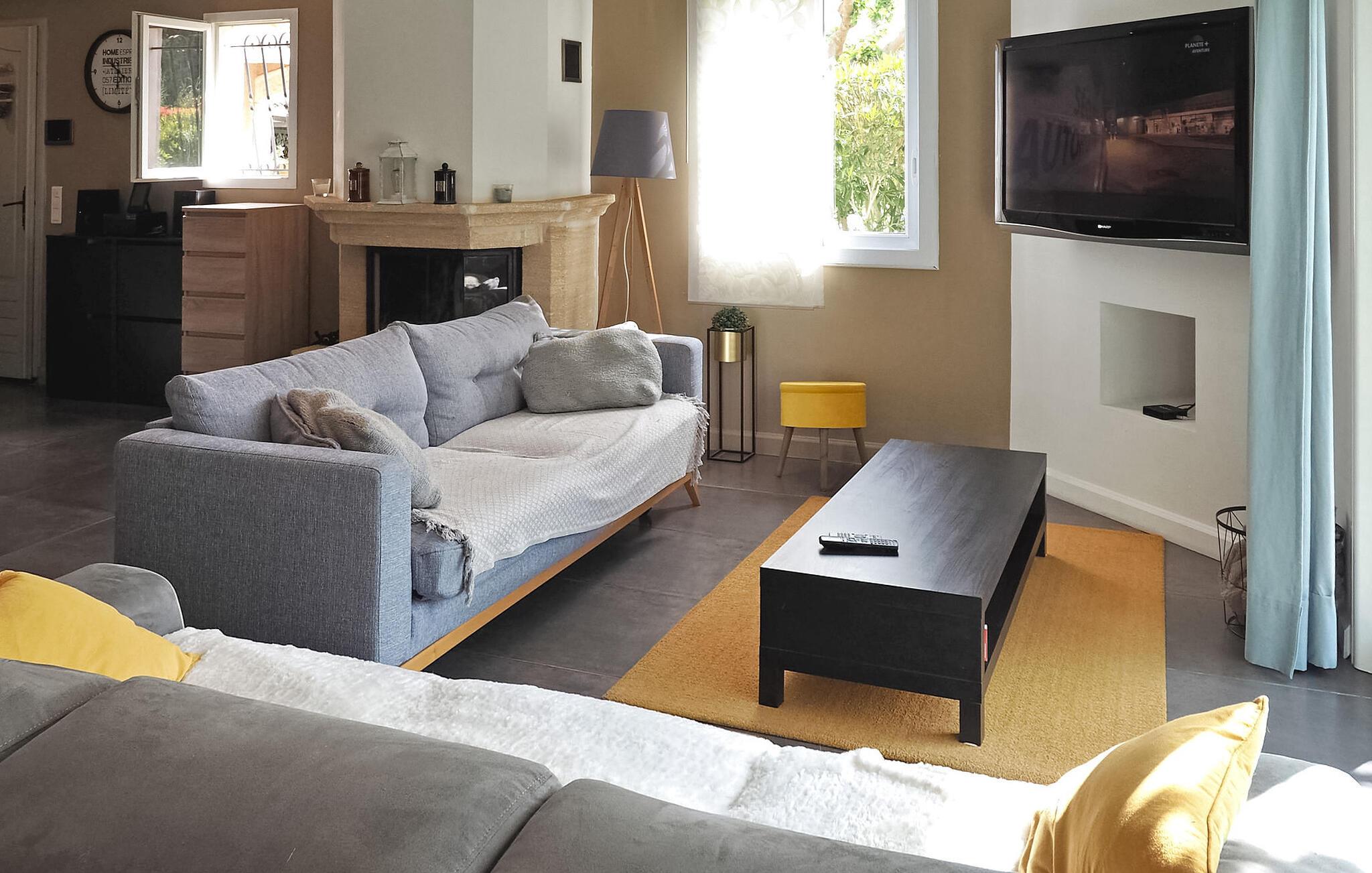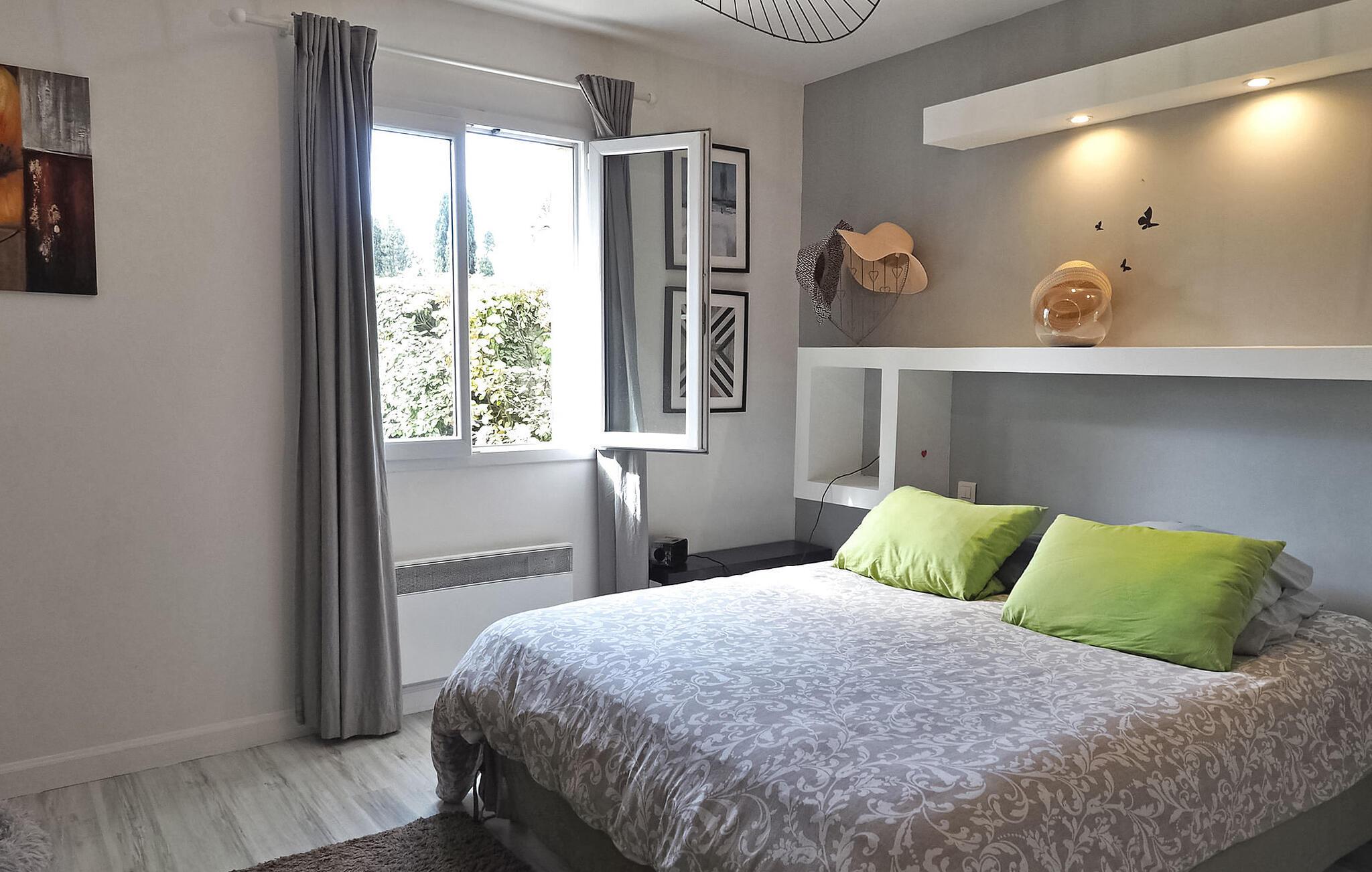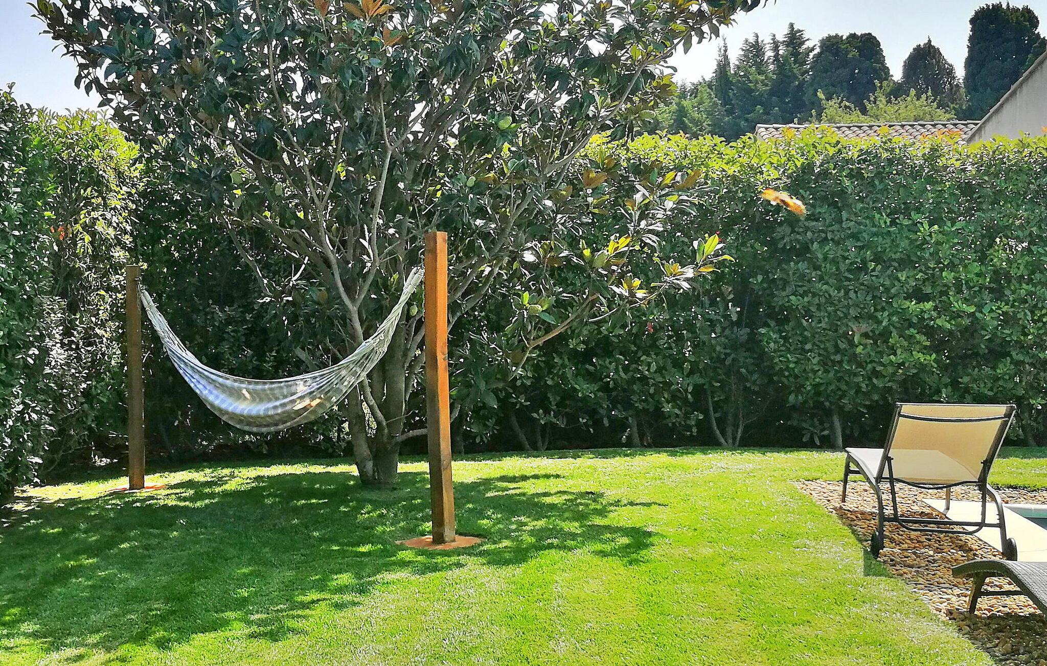 Flykt til denne herlige ferievillaen i hjertet av den pittoreske landsbyen Maillane i Provence. Dette sjarmerende tilfluktsstedet tilbyr en herlig opplevelse bare noen minutter fra sentrum av landsbyen. Den vakre, moderne eiendommen tilbyr komfortabel innkvartering på ett plan. Den klimatiserte stuen har en sømløs forbindelse til en vakker, skyggefull terrasse med vinranker og er det perfekte stedet for utendørshygge. Hovedsuiten er et luksuriøst fristed med sittegruppe, eget dusjrom og klimaanlegg. Ytterligere to soverom er koselige og deler et romslig familiebad. Gå ut i det private bassenget på 8 x 4 meter, som du kommer til via en undervannstrapp. Bassenget er 1,40 m dypt og innbyr til en forfriskende dukkert, omgitt av seks innbydende solsenger. Bak villaen finner du en innhegning med to søte høner som lover deg ferske egg til frokosten! Hund er velkommen med tillatelse på forhånd. Villaen ligger i et boligområde i utkanten av en søvnig landsby, omgitt av natur. Til fots er det i underkant av 1 km til sentrum av landsbyen, hvor du finner flere kafeer, restauranter og et postkontor på torget. Landsbyen Maillane var hjemmet til den berømte provençalske poeten Frédéric Mistral. Du kan besøke huset hans, som har blitt restaurert og omgjort til et museum dedikert til ham. Fordyp deg i roen på dette idylliske feriestedet, der stuen og foreldresuiten er nøye klimatisert for å sikre deg komfort til alle årstider.