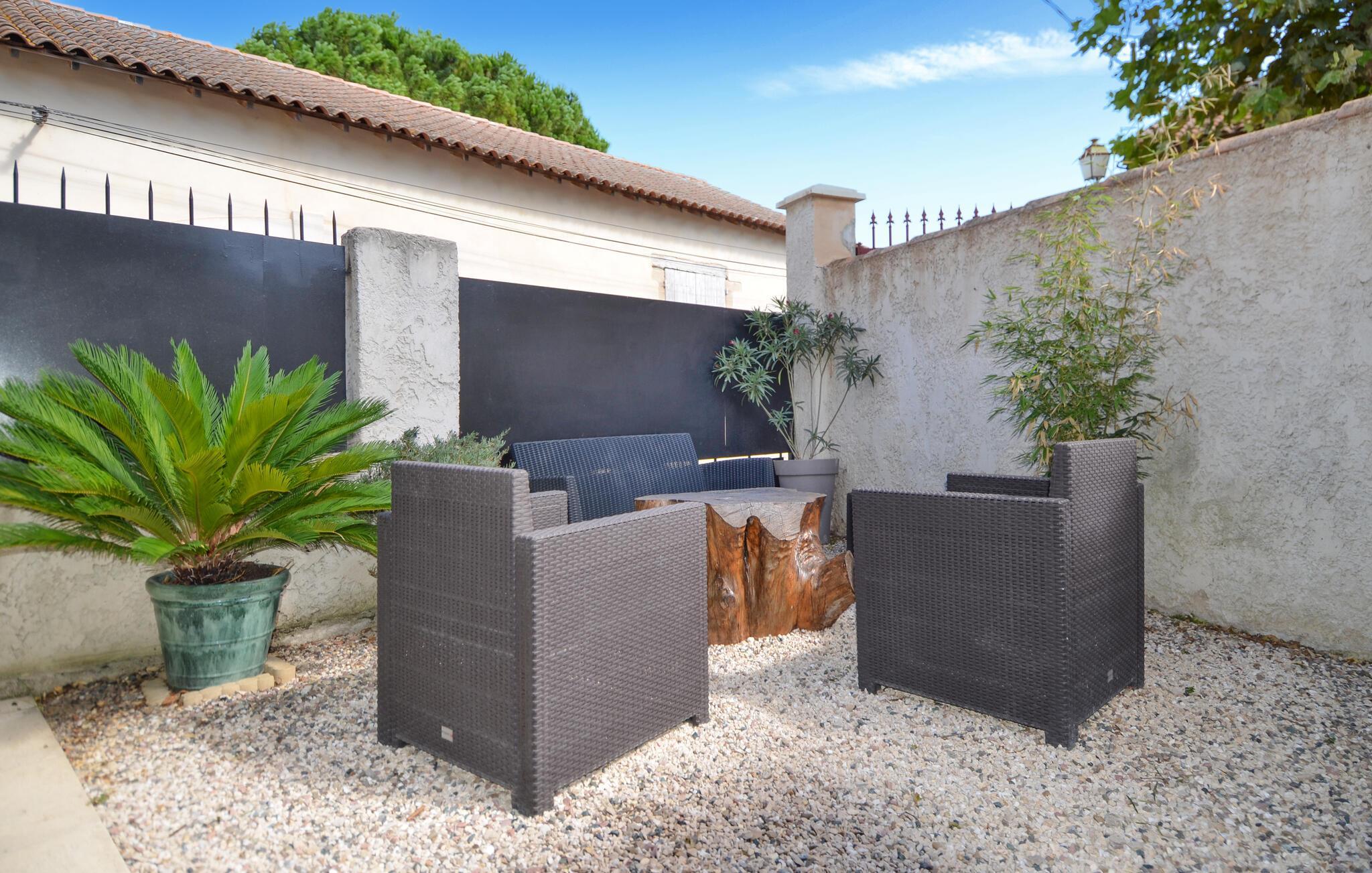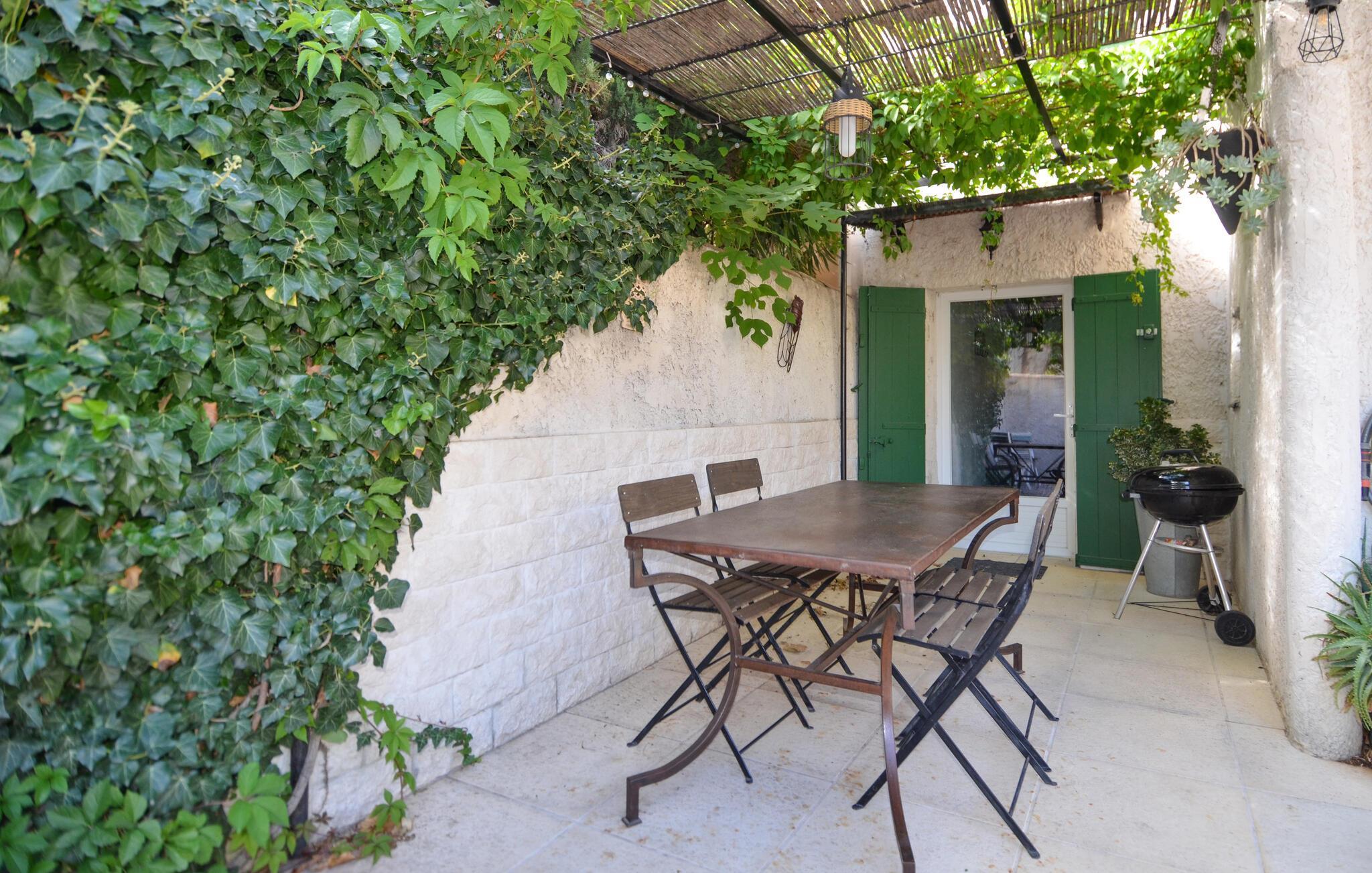 Se frem til din neste ferie i dette sjarmerende feriehuset i Maillane, som er ideelt for par eller familier. Nyt den romslige terrassen med koselig pergola og stilfulle hagemøbler, som inviterer deg til å slappe av og nyte måltider sammen utendørs. Bruk grillen til en avslappet grillfest med middelhavsstil, omgitt av den rolige atmosfæren i denne pittoreske provençalske landsbyen.