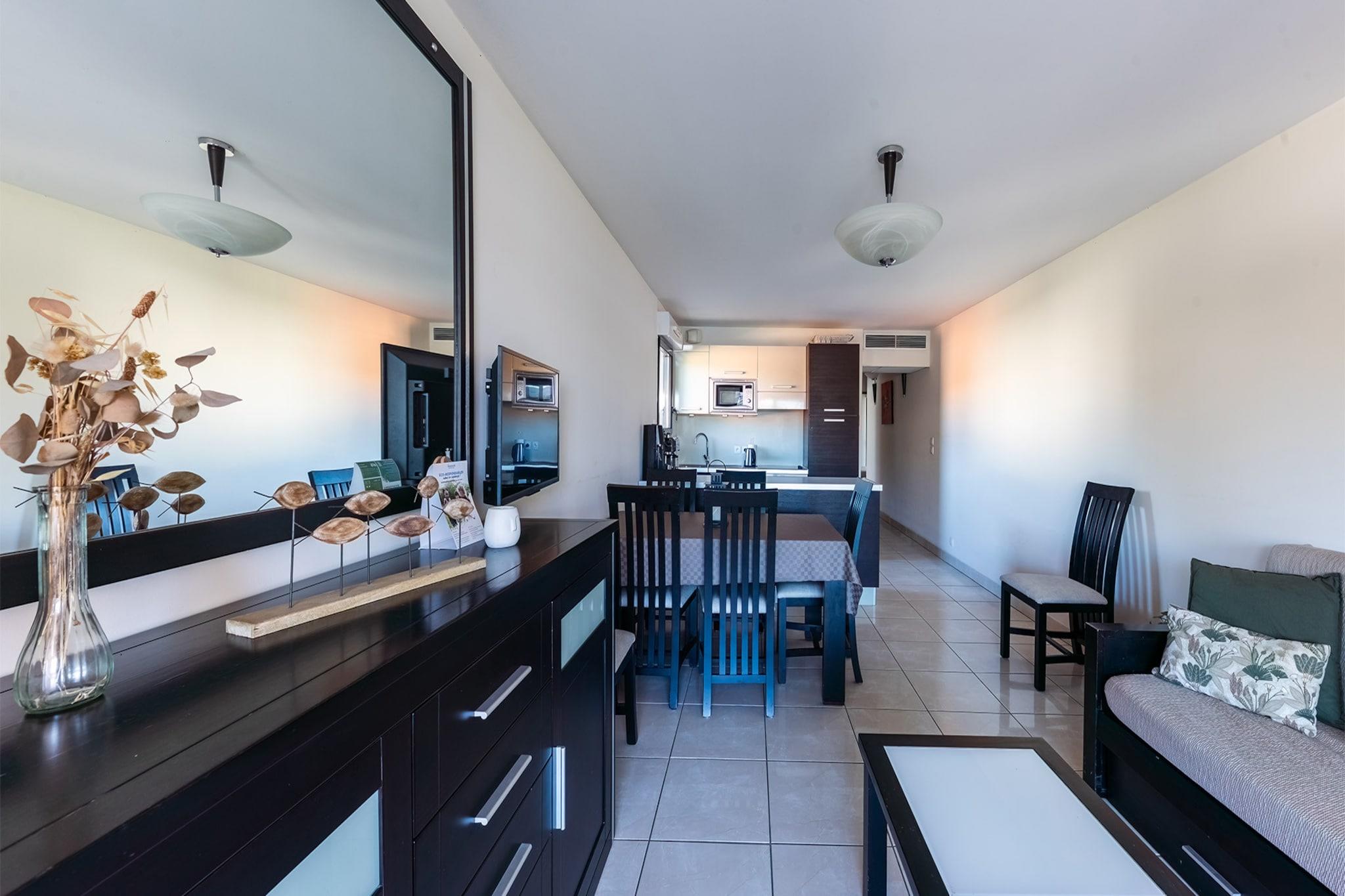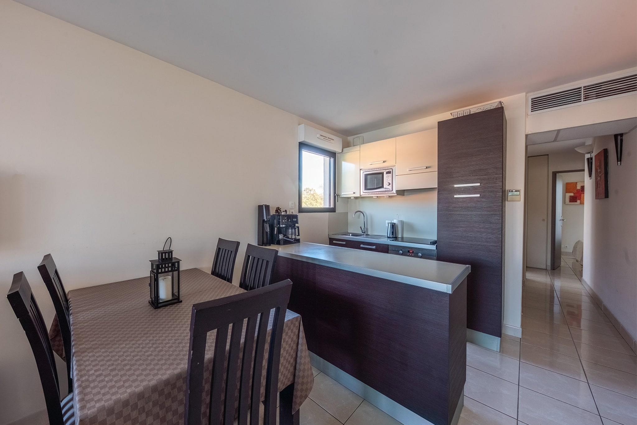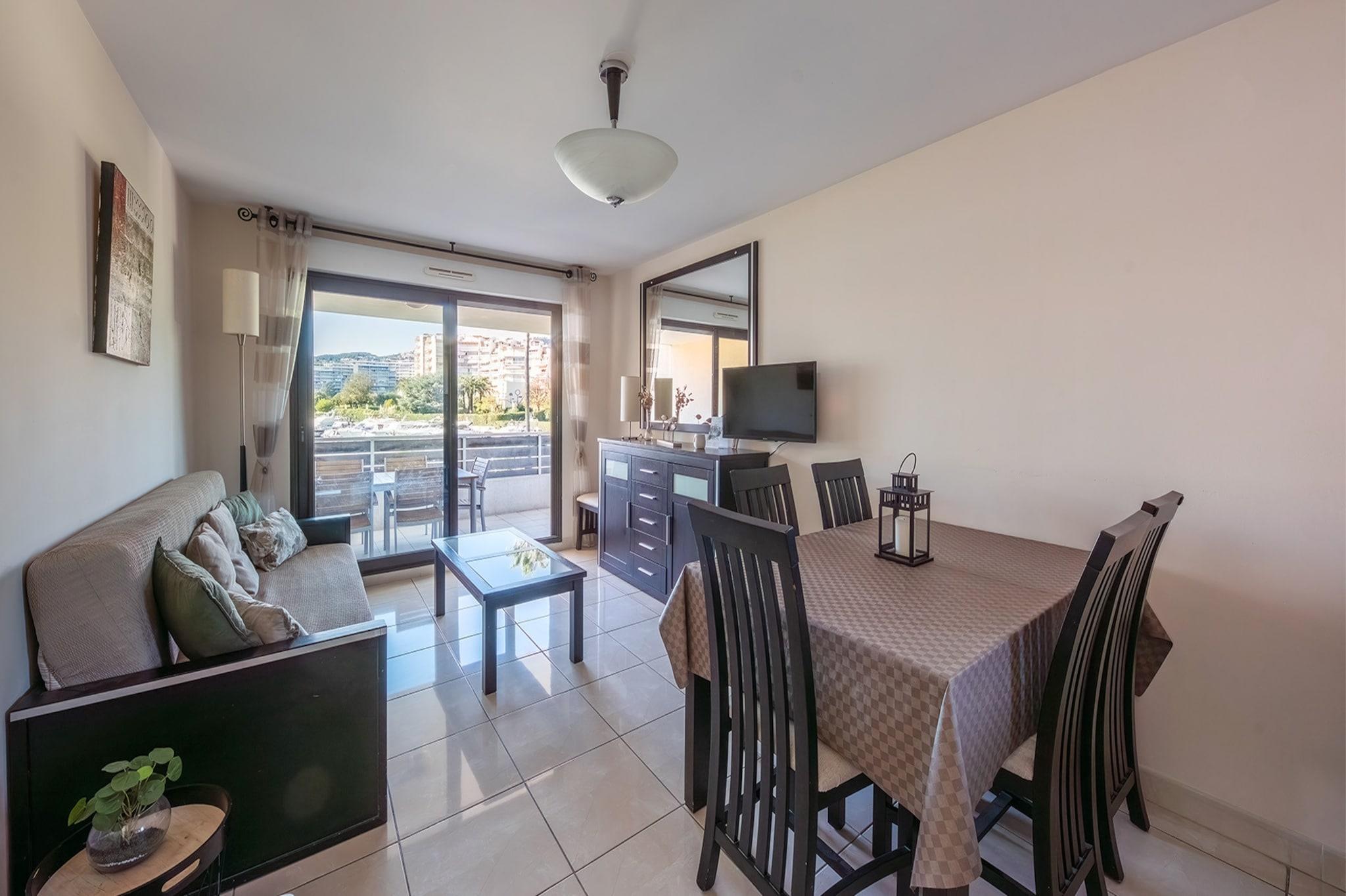 Denne smakfullt møblerte leiligheten på 53 kvadratmeter fanger essensen av Côte d'Azur, og tilbyr et lyst og sofistikert rom for opptil seks gjester. Planløsningen er perfekt balansert for familier eller venner, med et hovedsoverom med en myk dobbeltseng, et andre soverom med to enkeltsenger og en komfortabel dobbel sovesofa i stuen. Med full aircondition og elegante, moderne utførelser er det et kjølig og rolig fristed å vende tilbake til etter en dag under middelhavssolen. Hjertet i hjemmet er det åpne kjøkkenet og spisestuen, som flyter sømløst ut mot naturen. Fullt utstyrt med stekeovn, oppvaskmaskin og til og med en kaffemaskin for de rolige franske morgenene, har den alt du trenger for å føle deg som en lokal. Gå ut på balkongen for å puste inn saltluften og se på båtene i marinaen – det er det ideelle stedet for en kveldsaperitiff. Praktiske detaljer som høyhastighets Wi-Fi, heis og dedikert utendørs parkering i bygningen gjør oppholdet ditt like uanstrengt som det er vakkert. Beliggenhet er alt i Mandelieu. Du er bare en kort 300 meter spasertur fra den populære restauranten «Le Lagon» og mindre enn en kilometer fra den myke sanden på stranden. For de som elsker en blanding av avslapning og aktivitet, kan du tilbringe morgenene ved det felles oppvarmede bassenget og ettermiddagene med å utforske de nærliggende butikkene og supermarkedene. Denne leiligheten ligger i et familievennlig område rett ved havet, og tilbyr en førsteplass til glamouren og roen på den franske rivieraen.