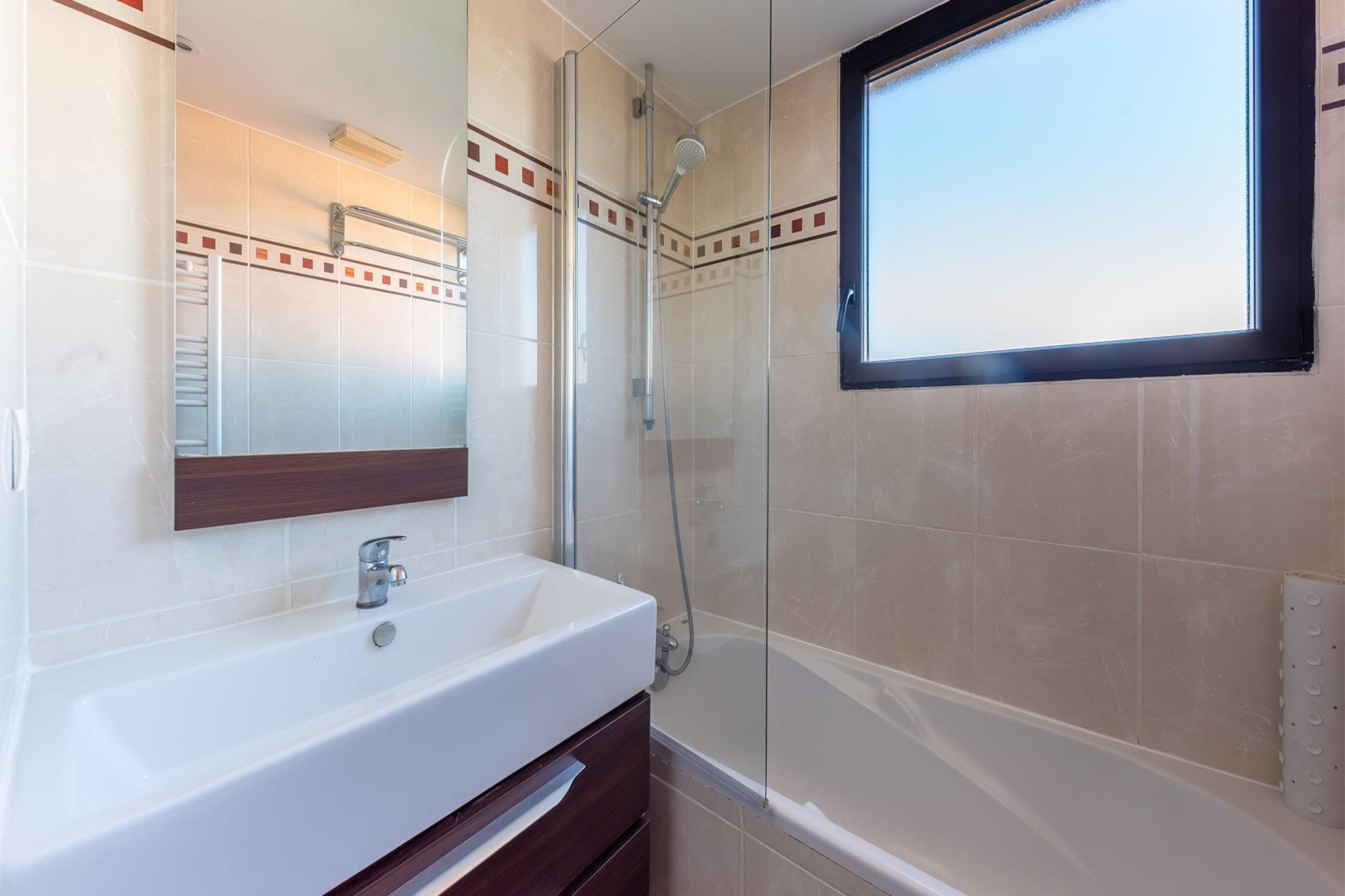 , åpent kjøkken(vannkoker, brødrister, kaffetrakter, stekovn, mikrobølgeovn, oppvaskmaskin, kjøleskap, ), Stue/spisestue(dobbel sovesofa, TV, spisebord), soveværelse(dobbeltseng), soveværelse(enkeltseng, enkeltseng), bad(badekar, håndvask, toalett), balkon, parkering, svømmebasseng(deles med andre gjester)